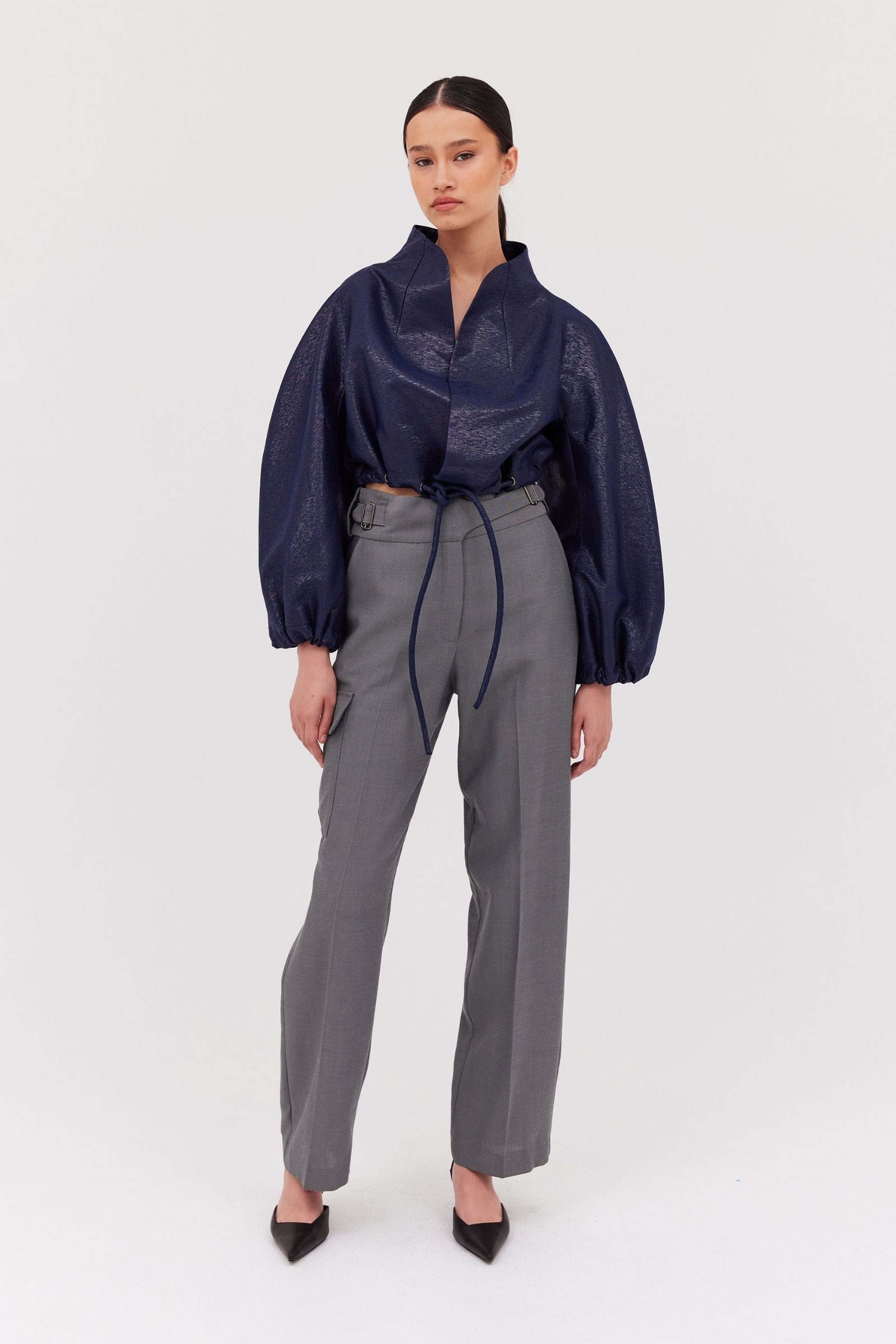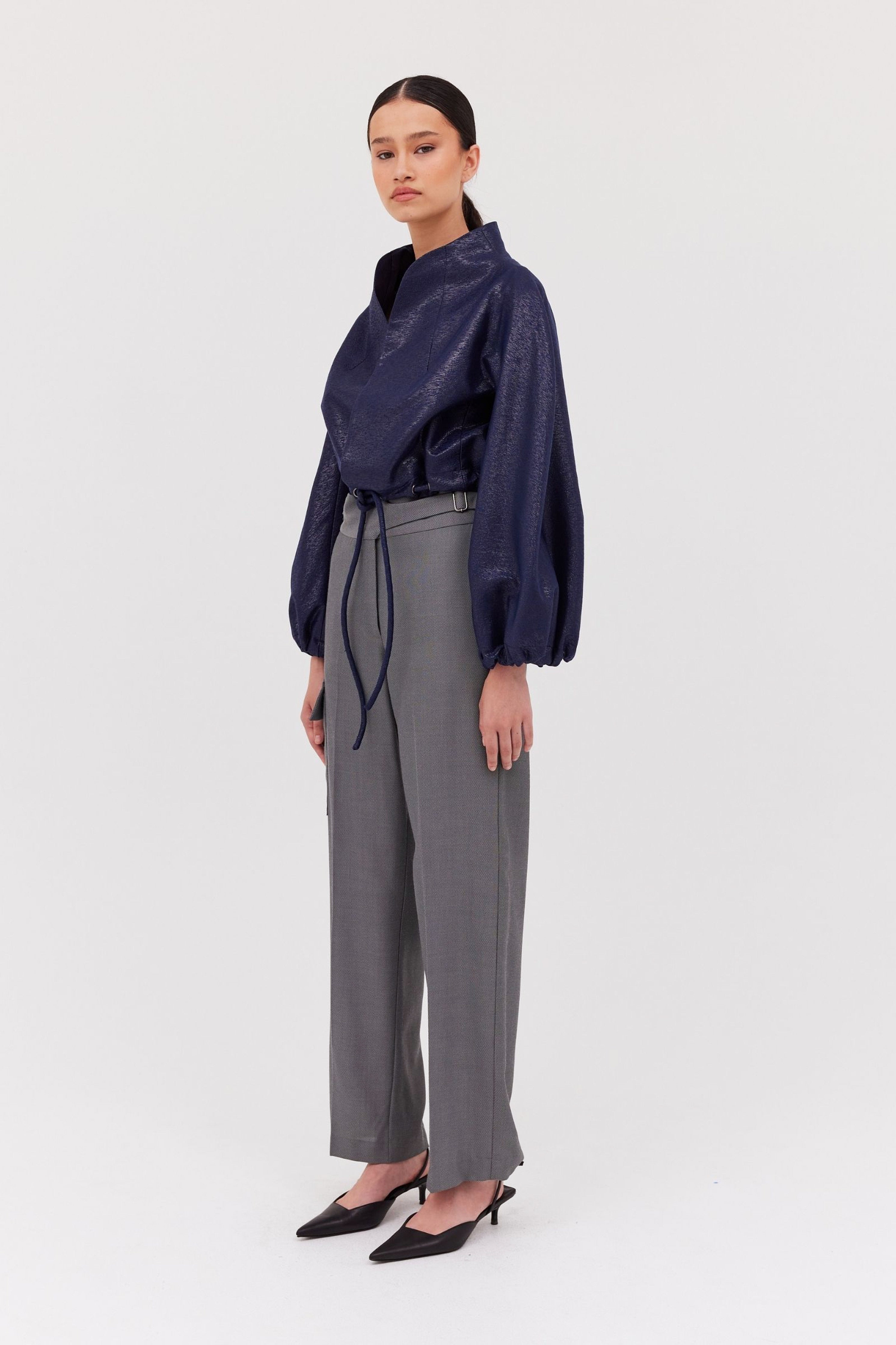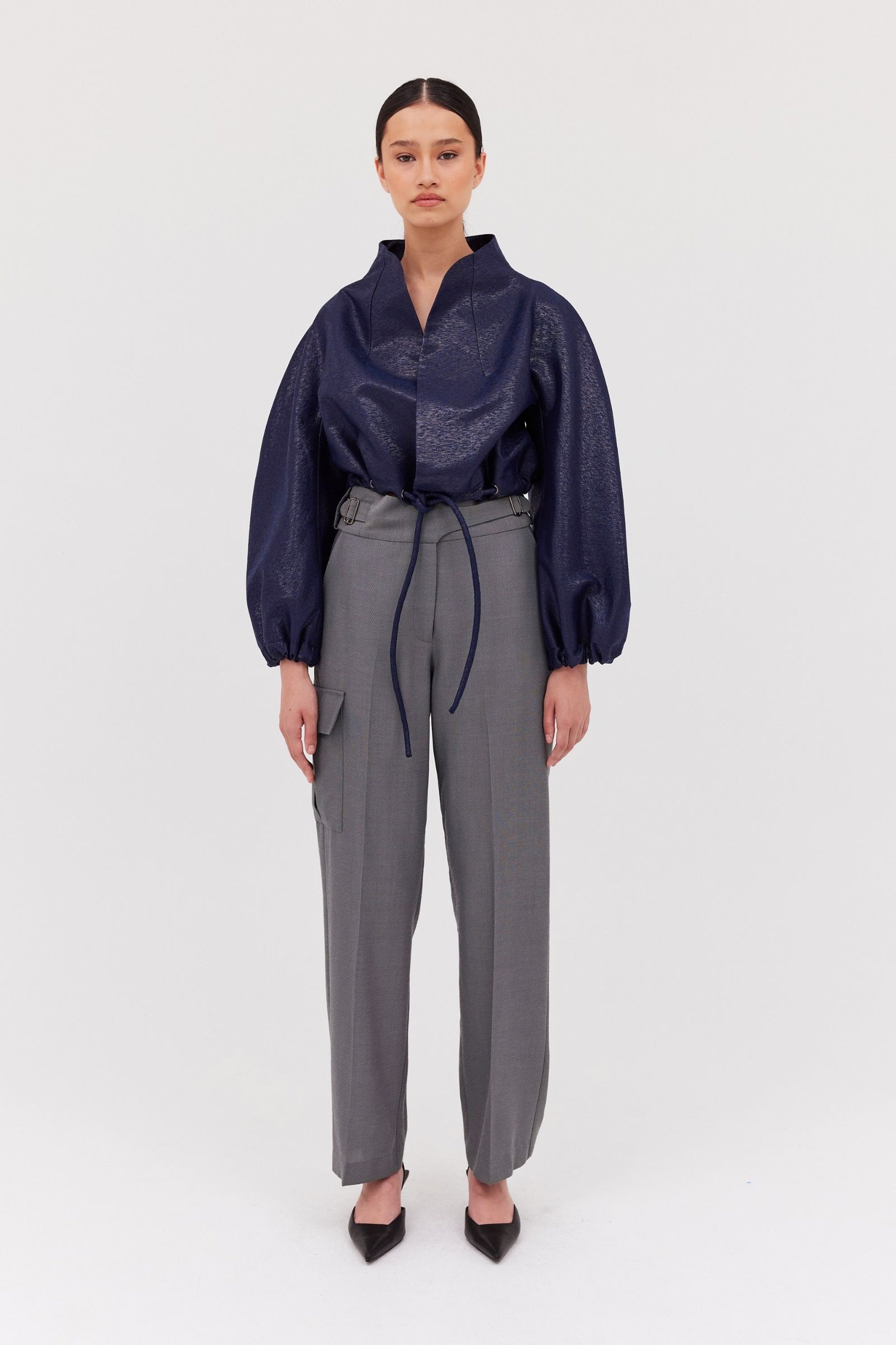 Style with the Cornflower Cotton Bystander Top for a chic workwear look, or pair with the matching Slate Drill Shifting Coat as the weather cools.