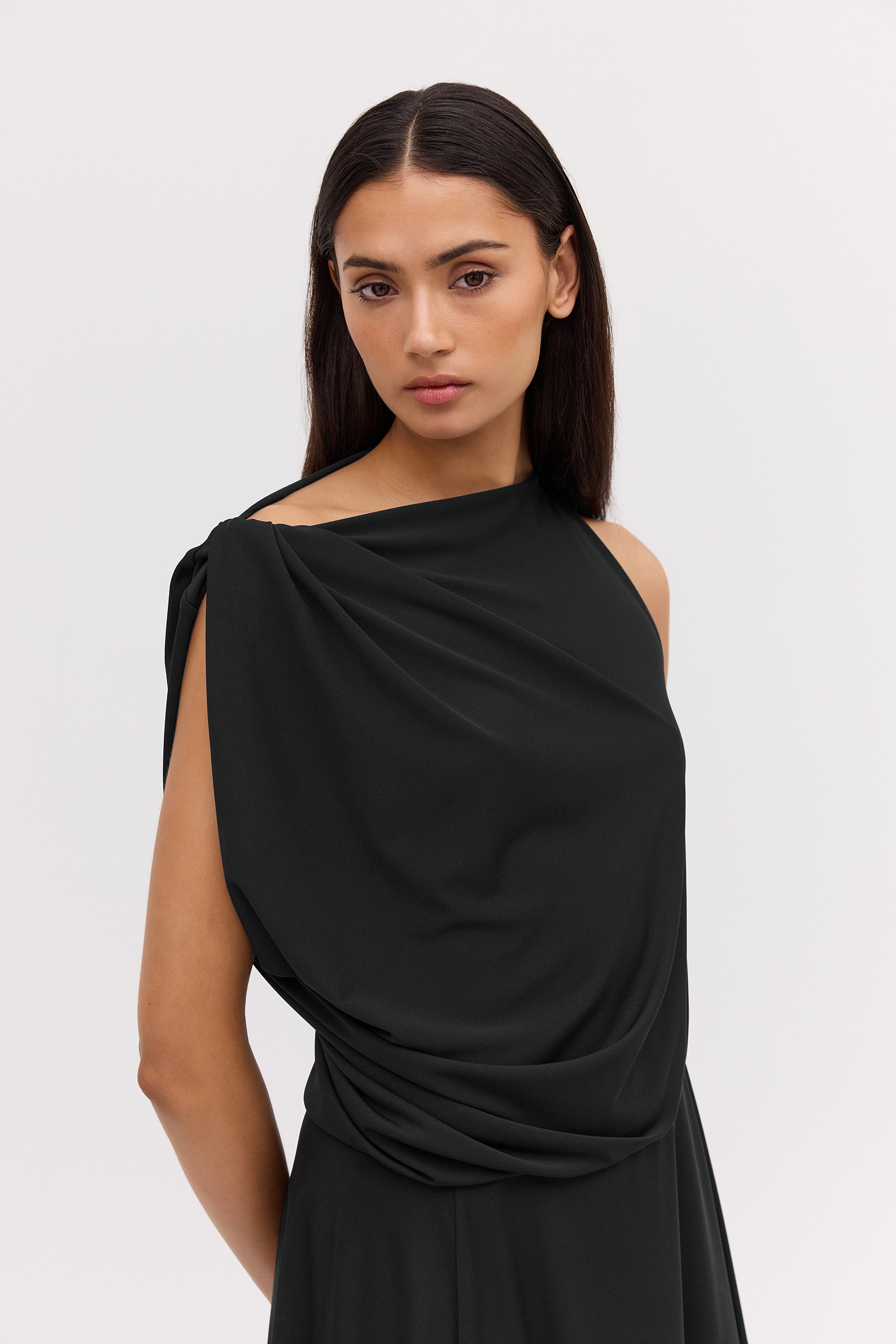 - Asymmetrical neckline