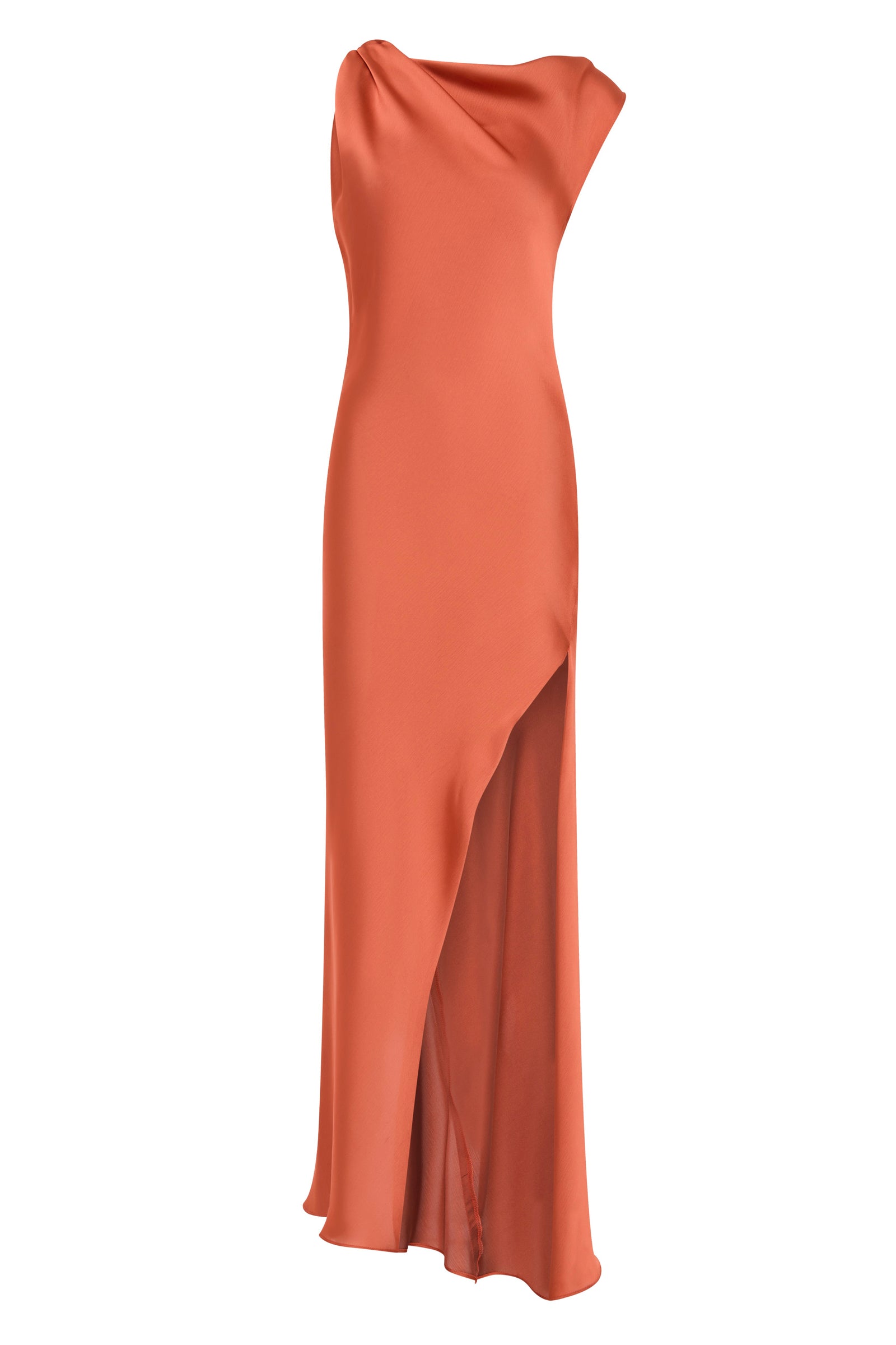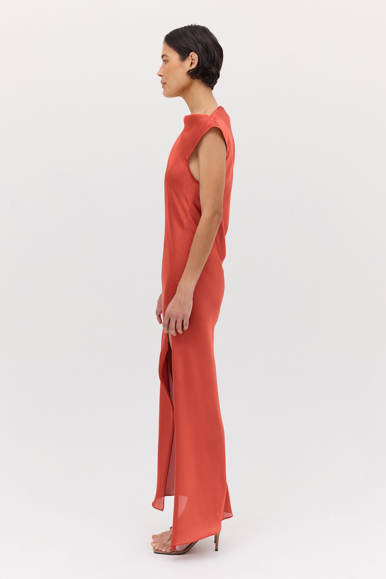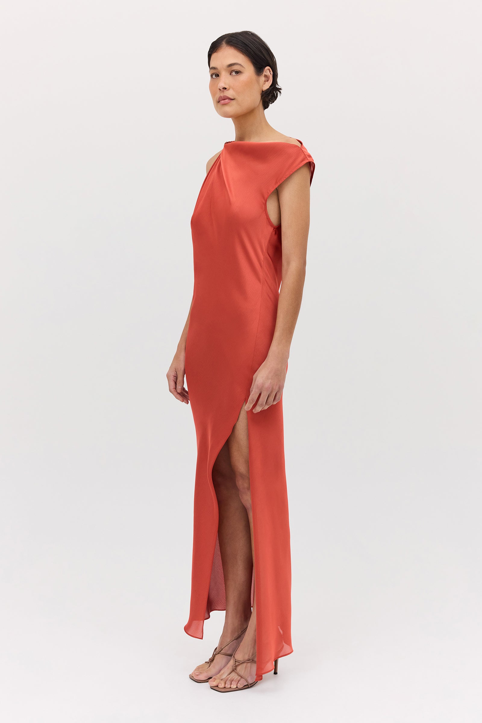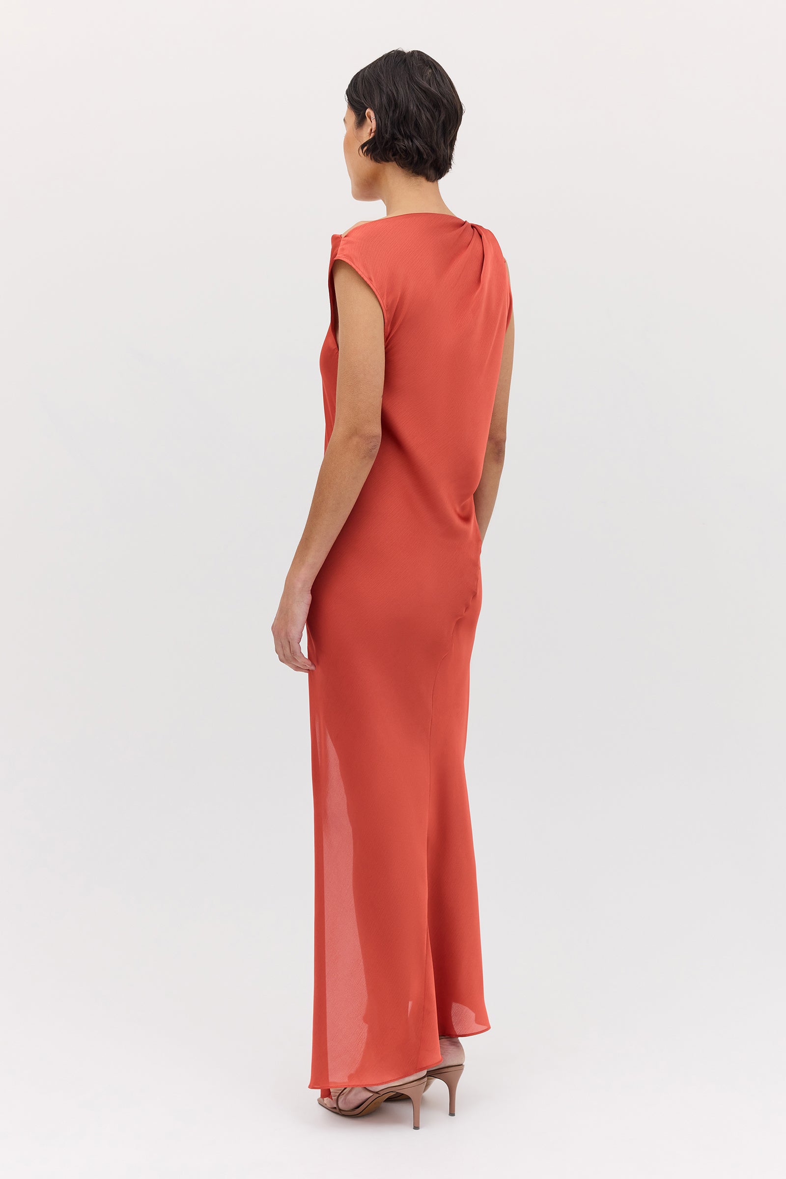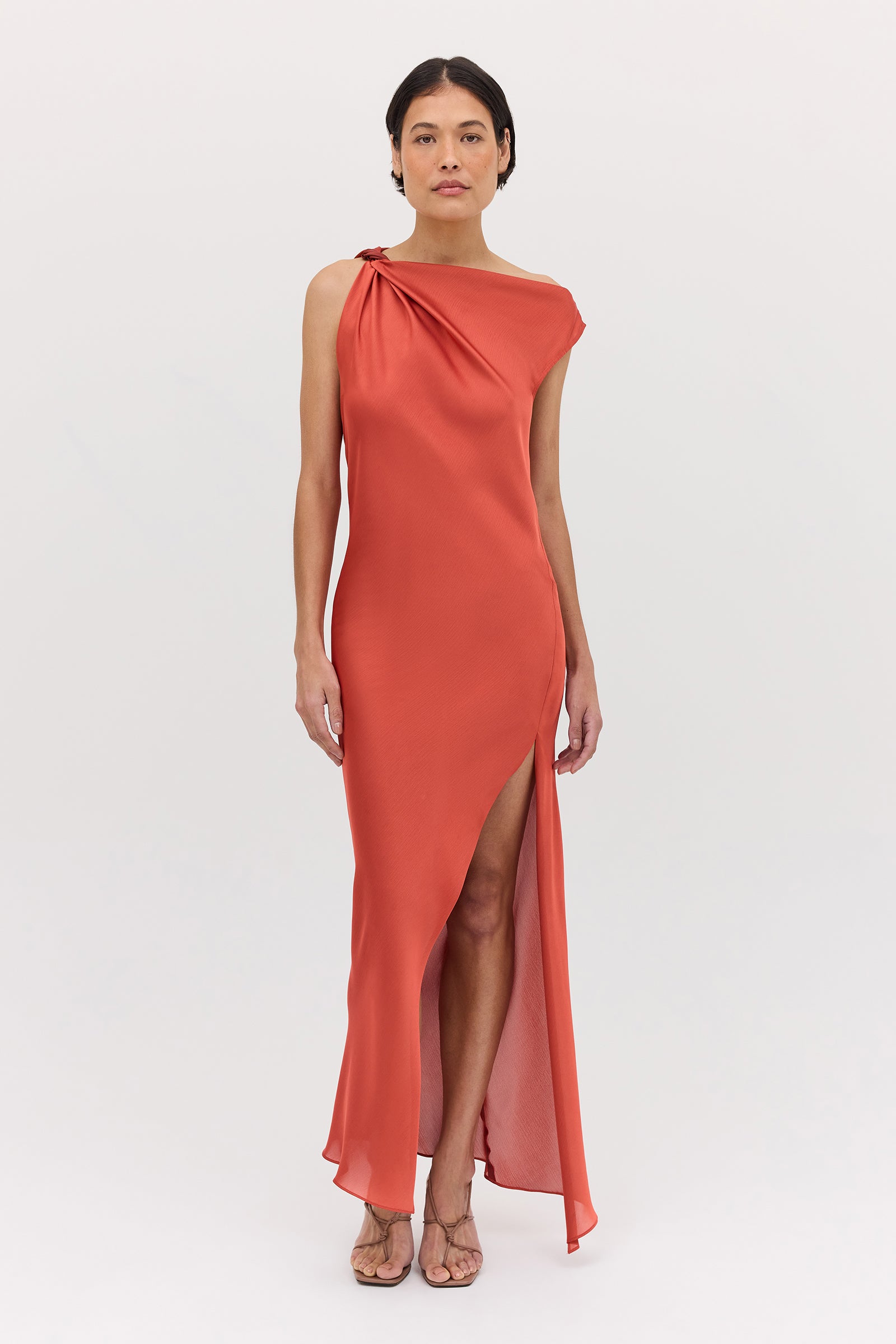 Introducing the Form Dress, inspired by our highly-coveted Yang Top. The Form Dress features a fluidly draped column silhouette, balanced by the structural yet delicate asymmetrical twist detailing at the shoulder. Cut to mid-thigh to allow ease of movement and a sense of air. Cut from a lightweight, vibrant Coral Chiffon that evokes the feeling of wearing a slip. The fabric has a soft-hand, silken feel and is machine washable for easy care.