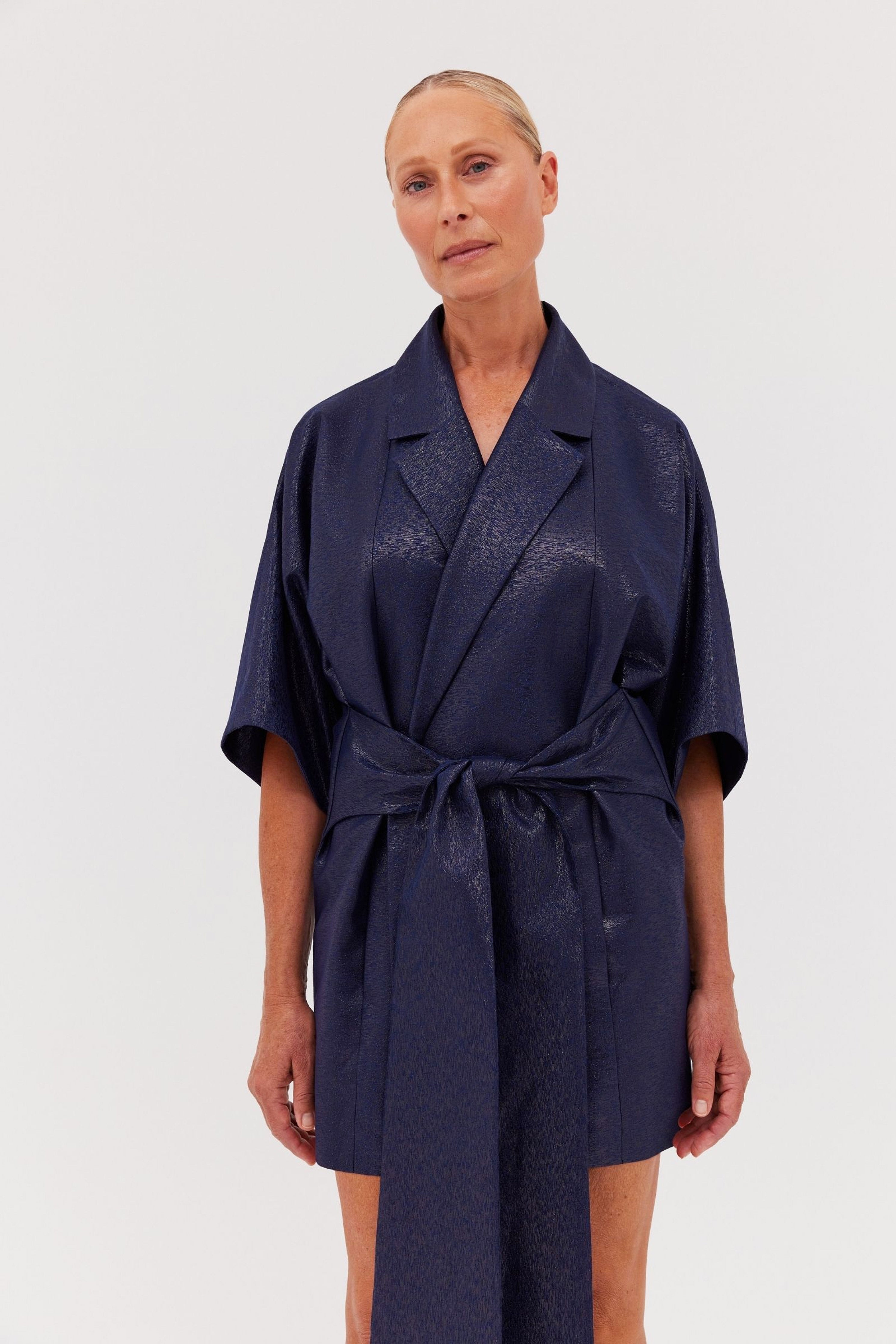 This style can be worn alone as a mini dress or as an oversized jacket worn over the Pivot Pant.