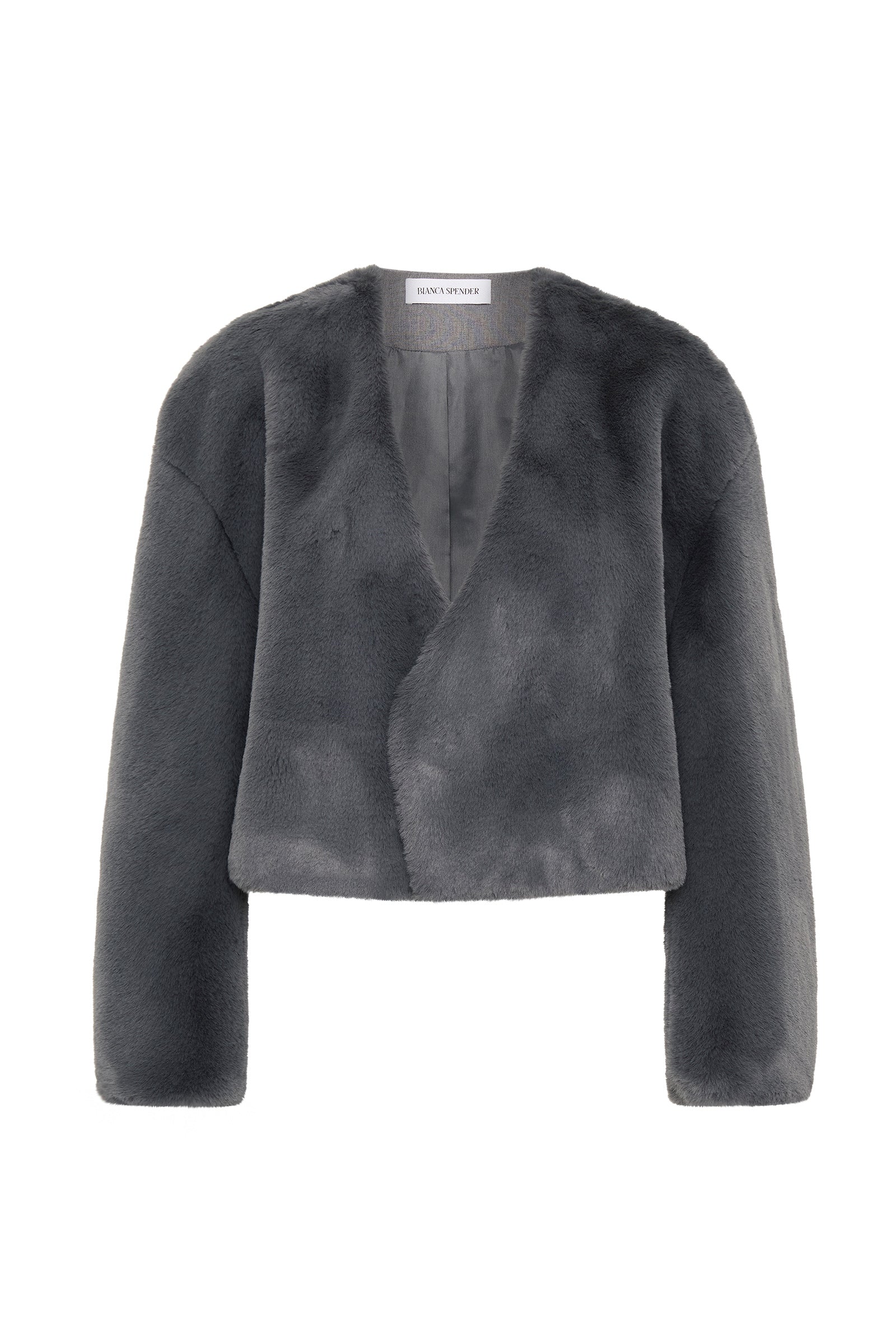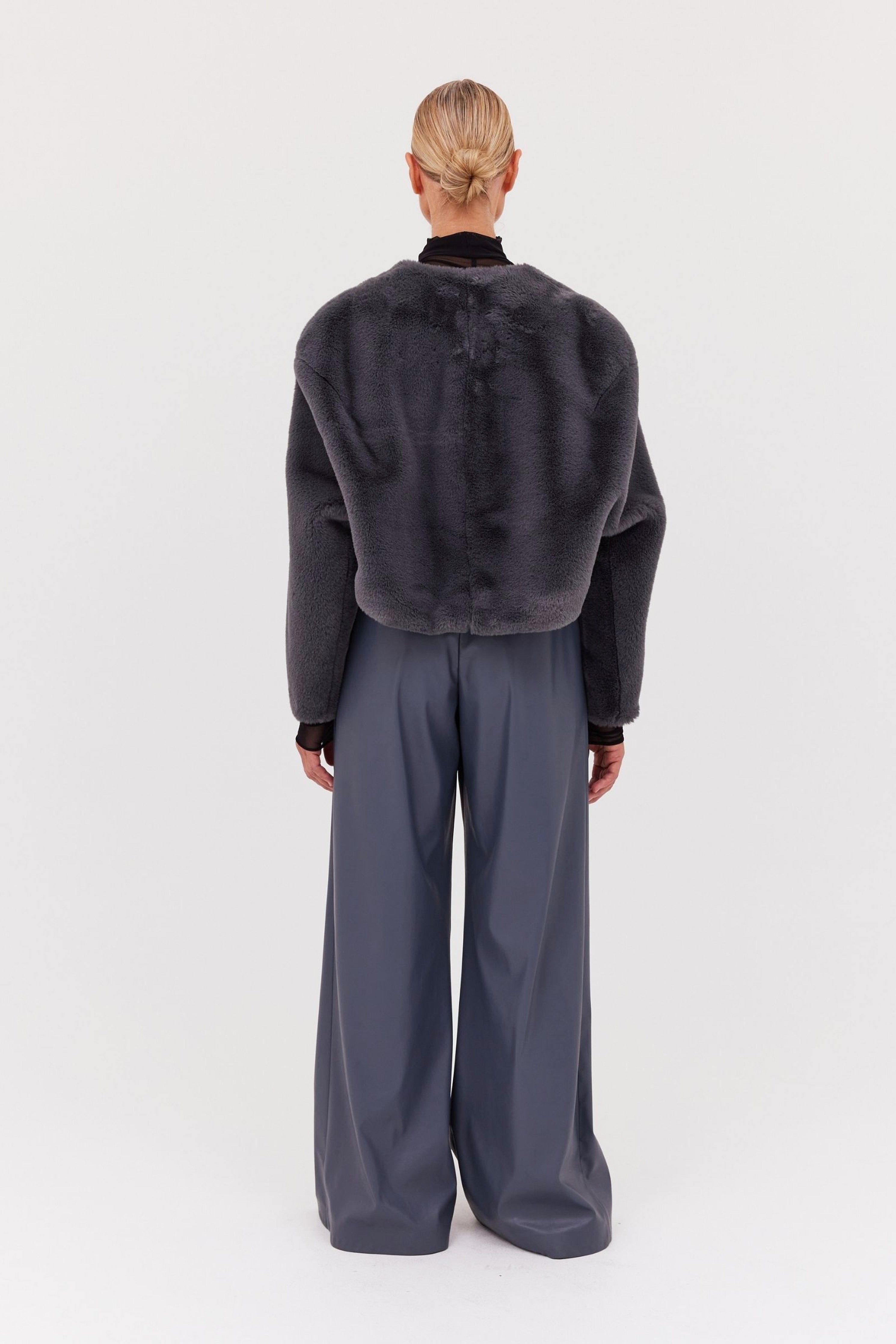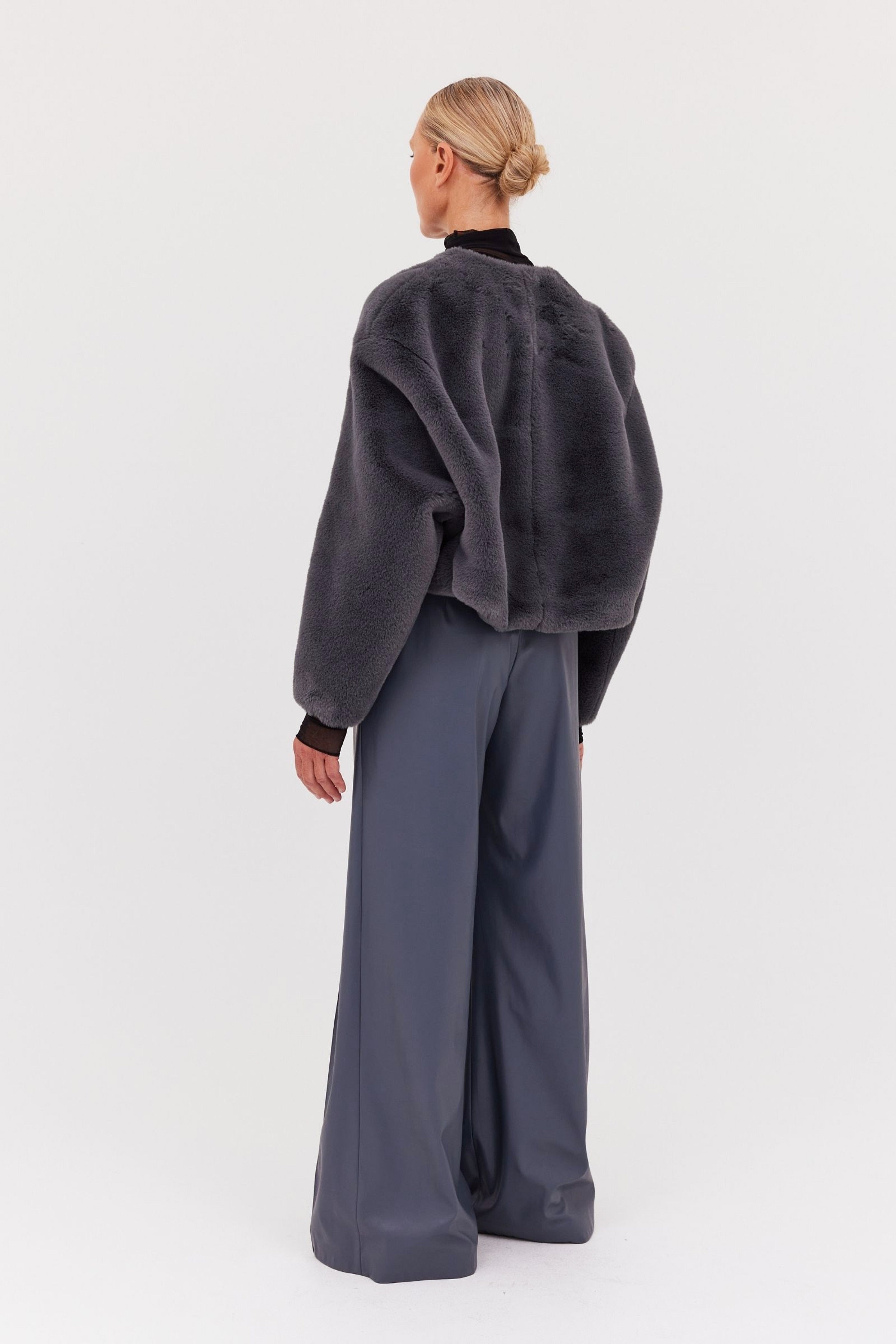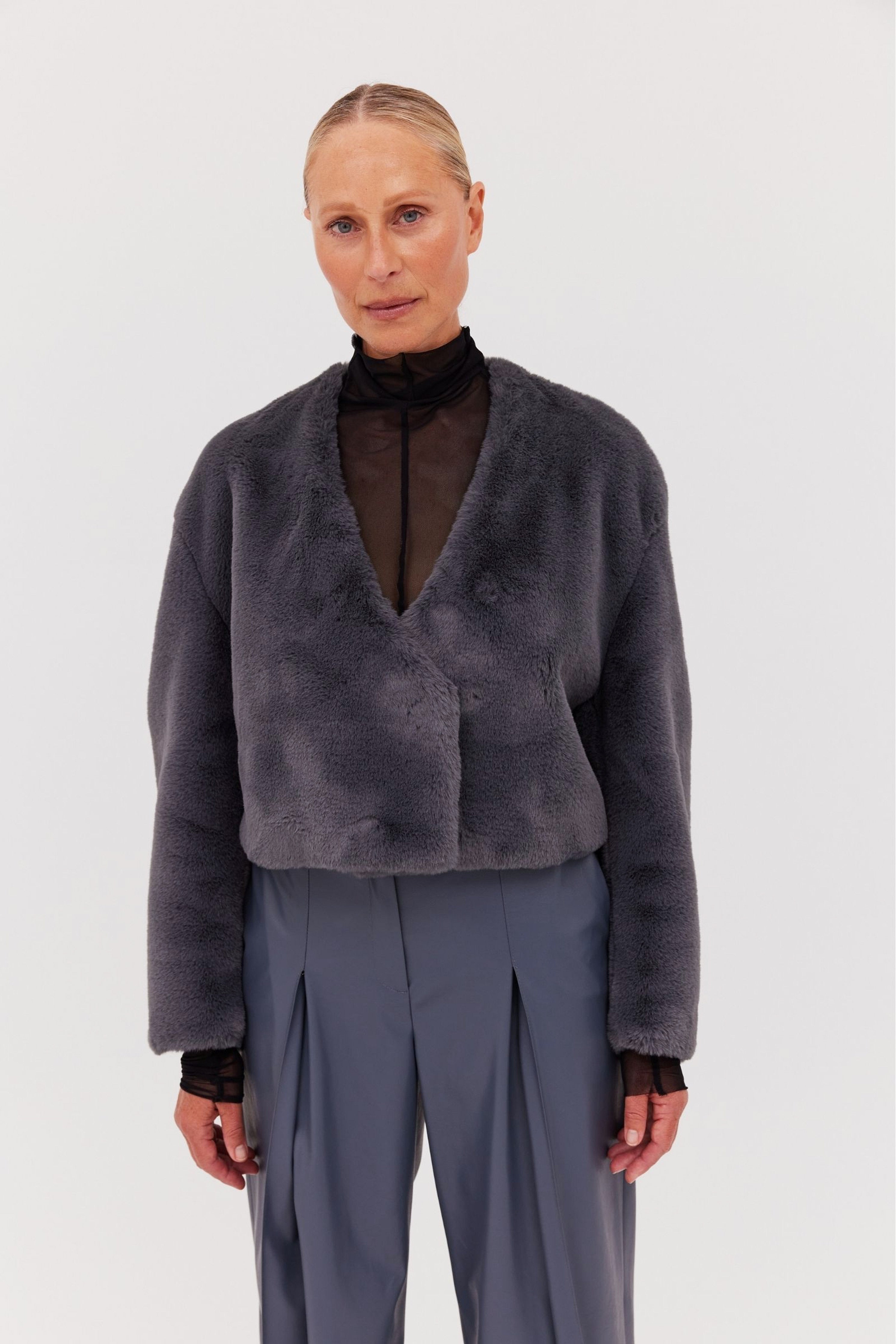 CHARCOAL FAUX FUR ENFOLD JACKET