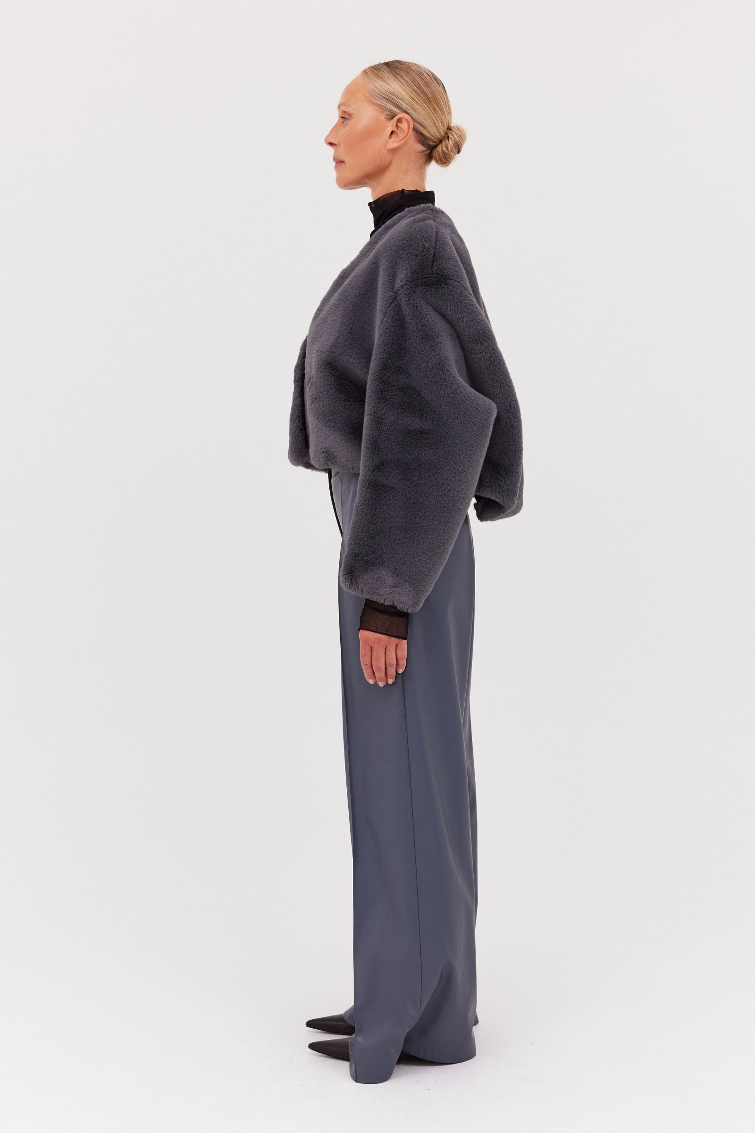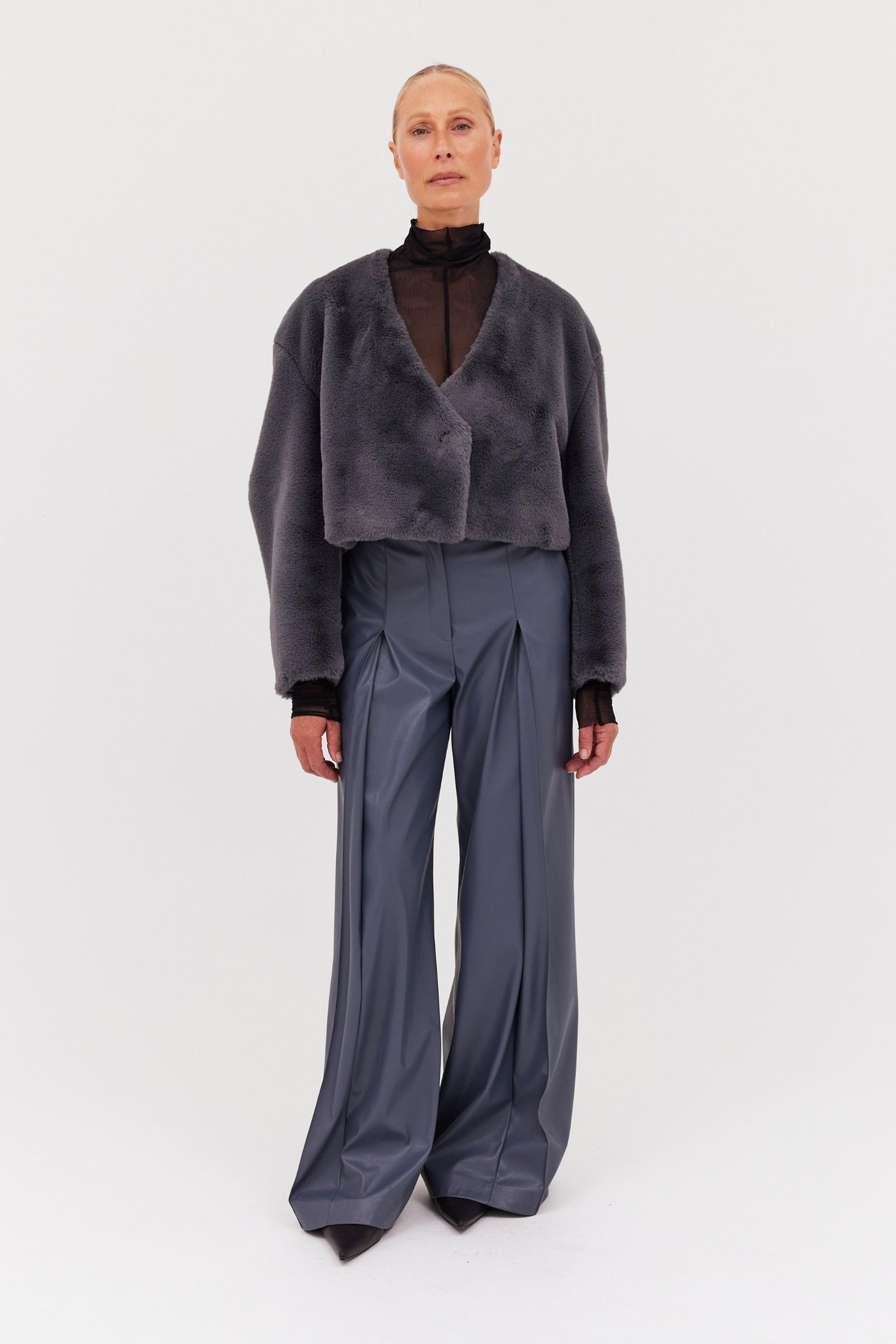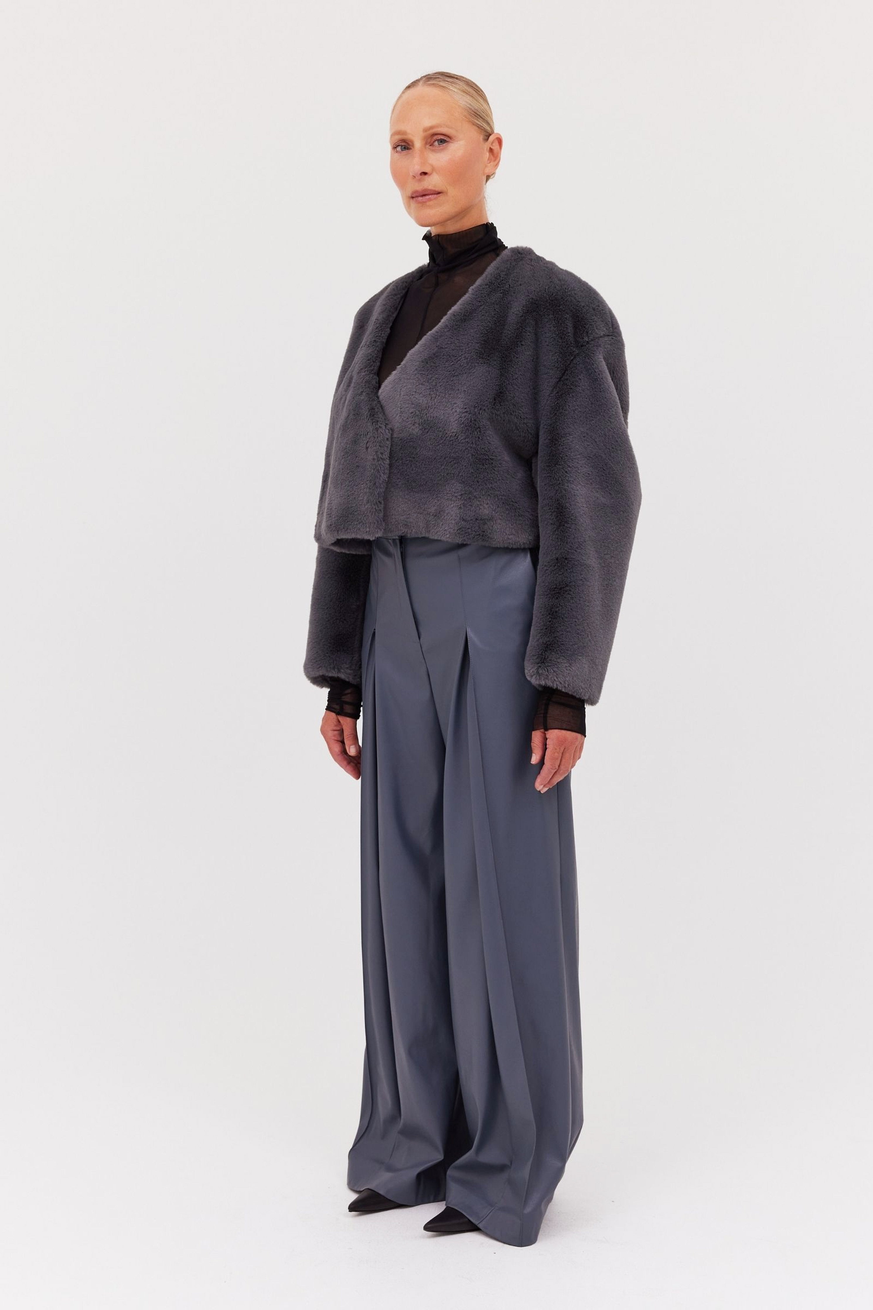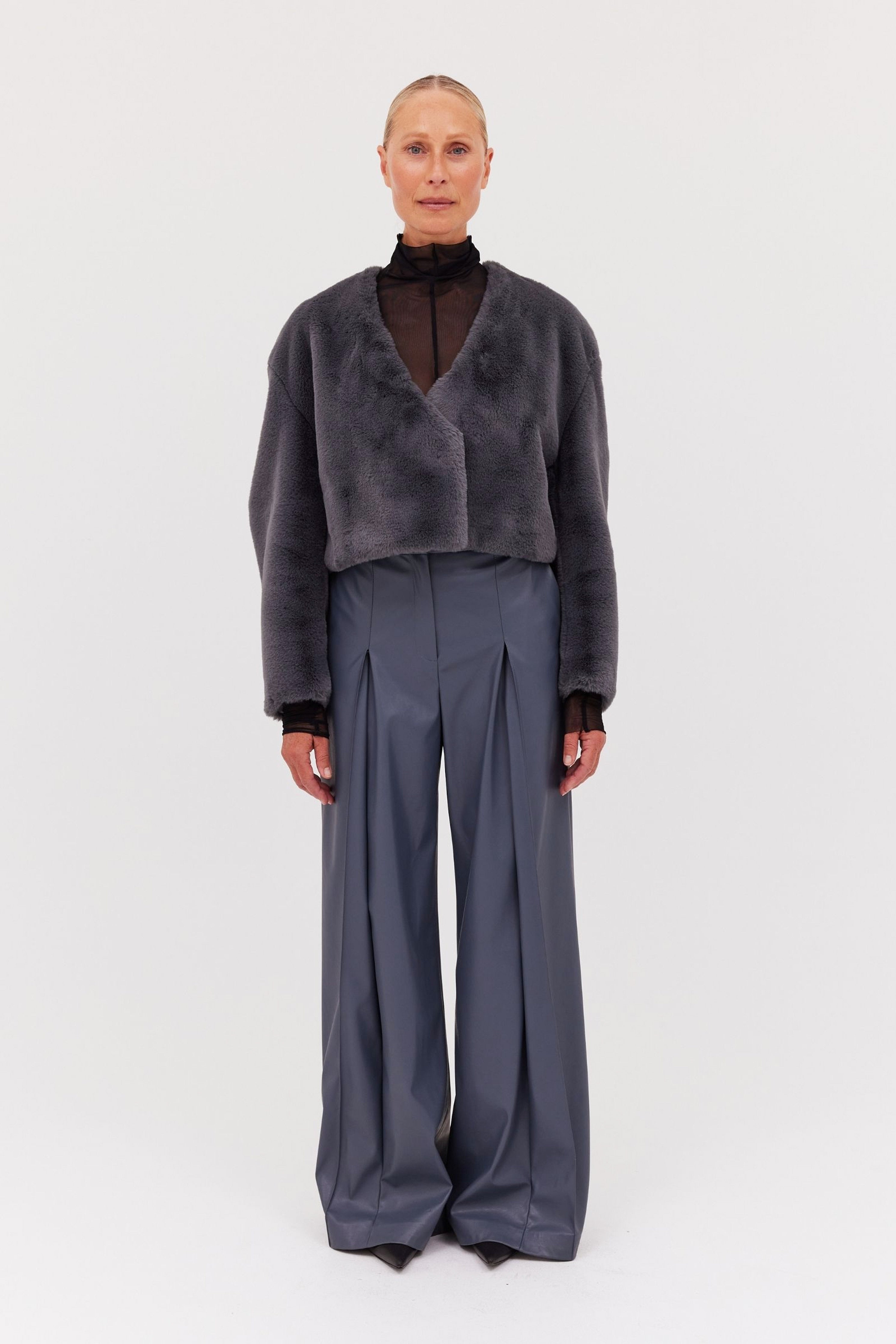 CHARCOAL FAUX FUR ENFOLD JACKET