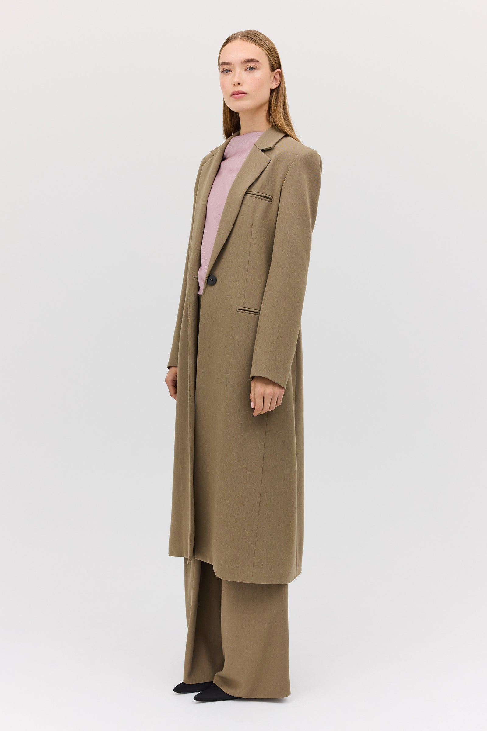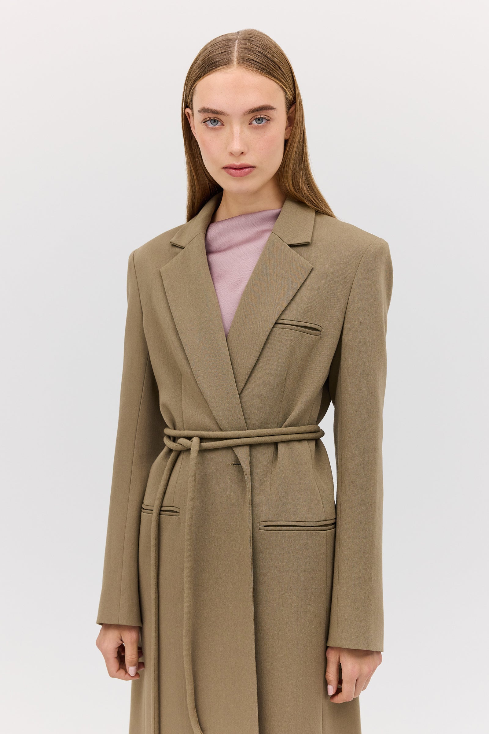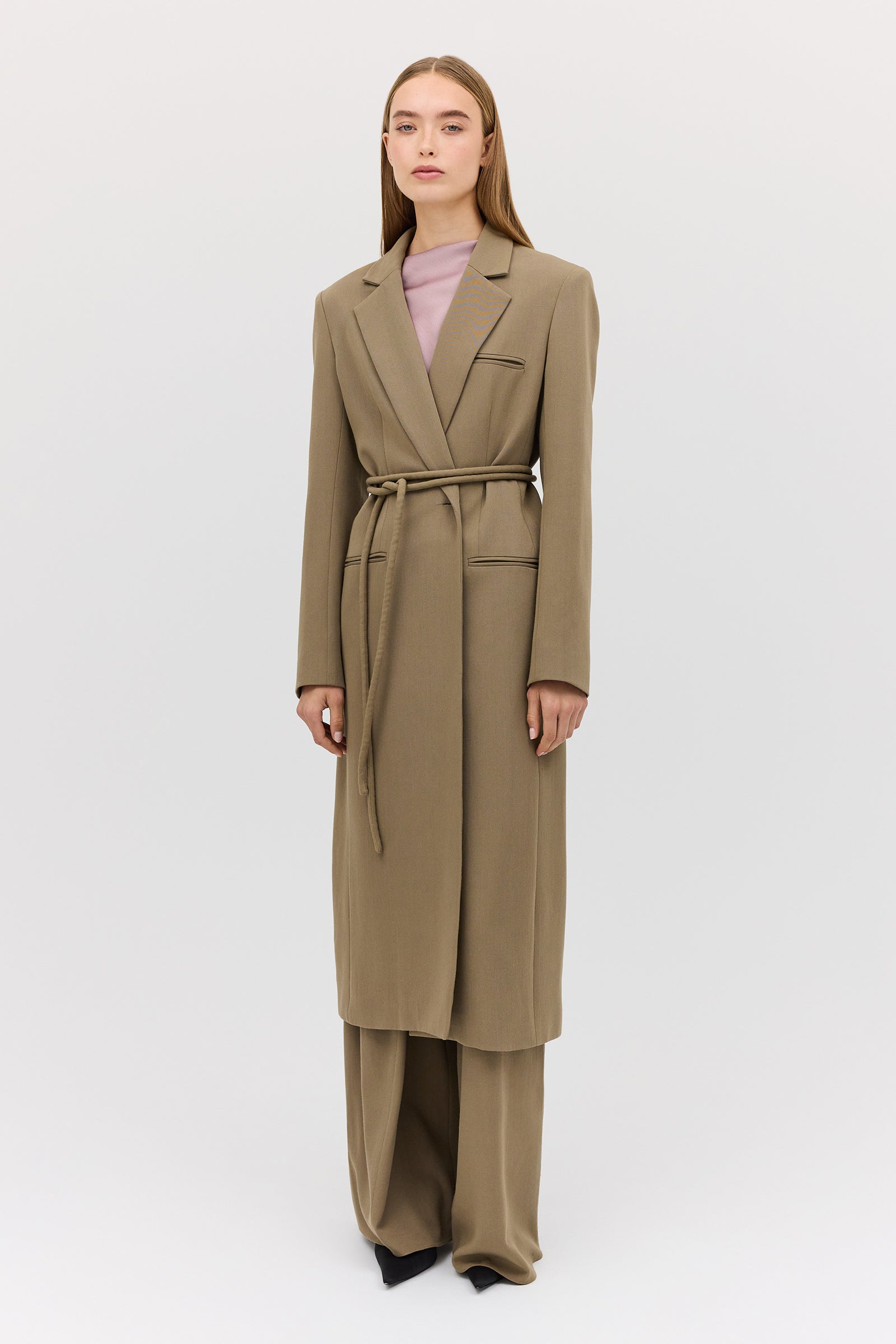 A fresh take on a bestselling style. The Shifting Coat has been reimagined for the Autumn 25 collection, an evolution of our most-loved Shifting Jacket. Unrestricted tailoring for modern dressing, The Shifting Coat is constructed from Clay Wool Suiting and designed with a detachable wrap waist belt that plays on utility styling. Wear loose or buttoned for a relaxed fit, or cinched at the waist for a fitted look.