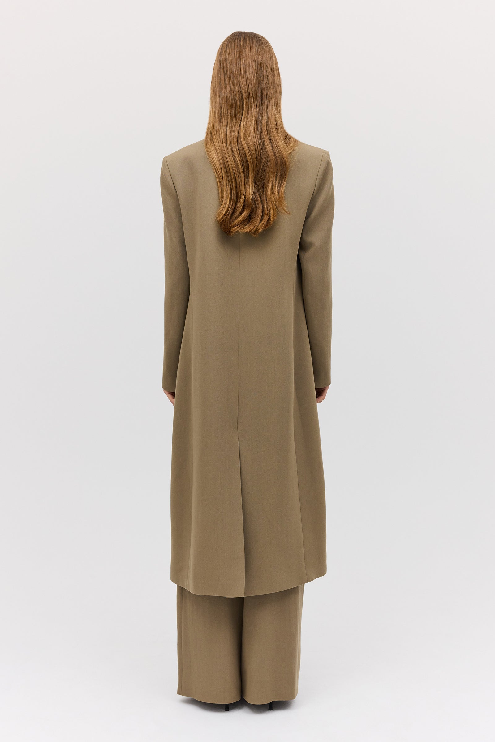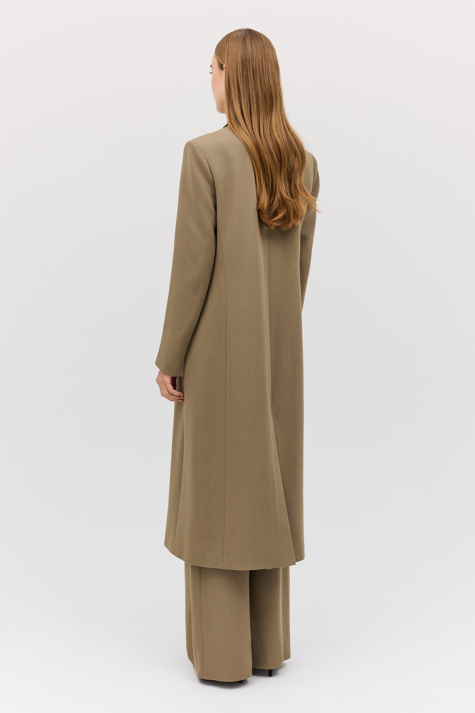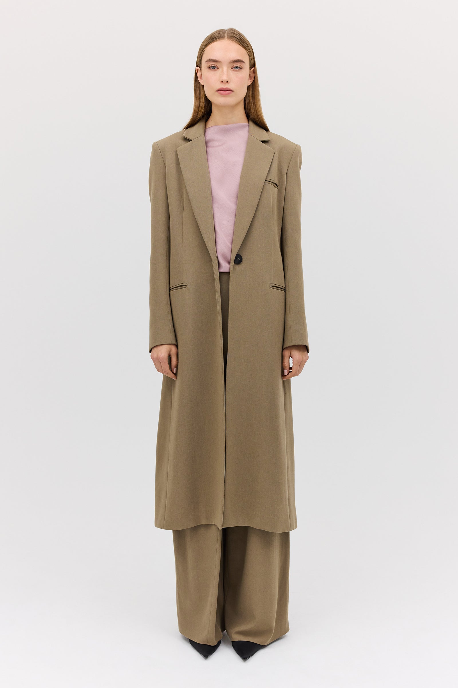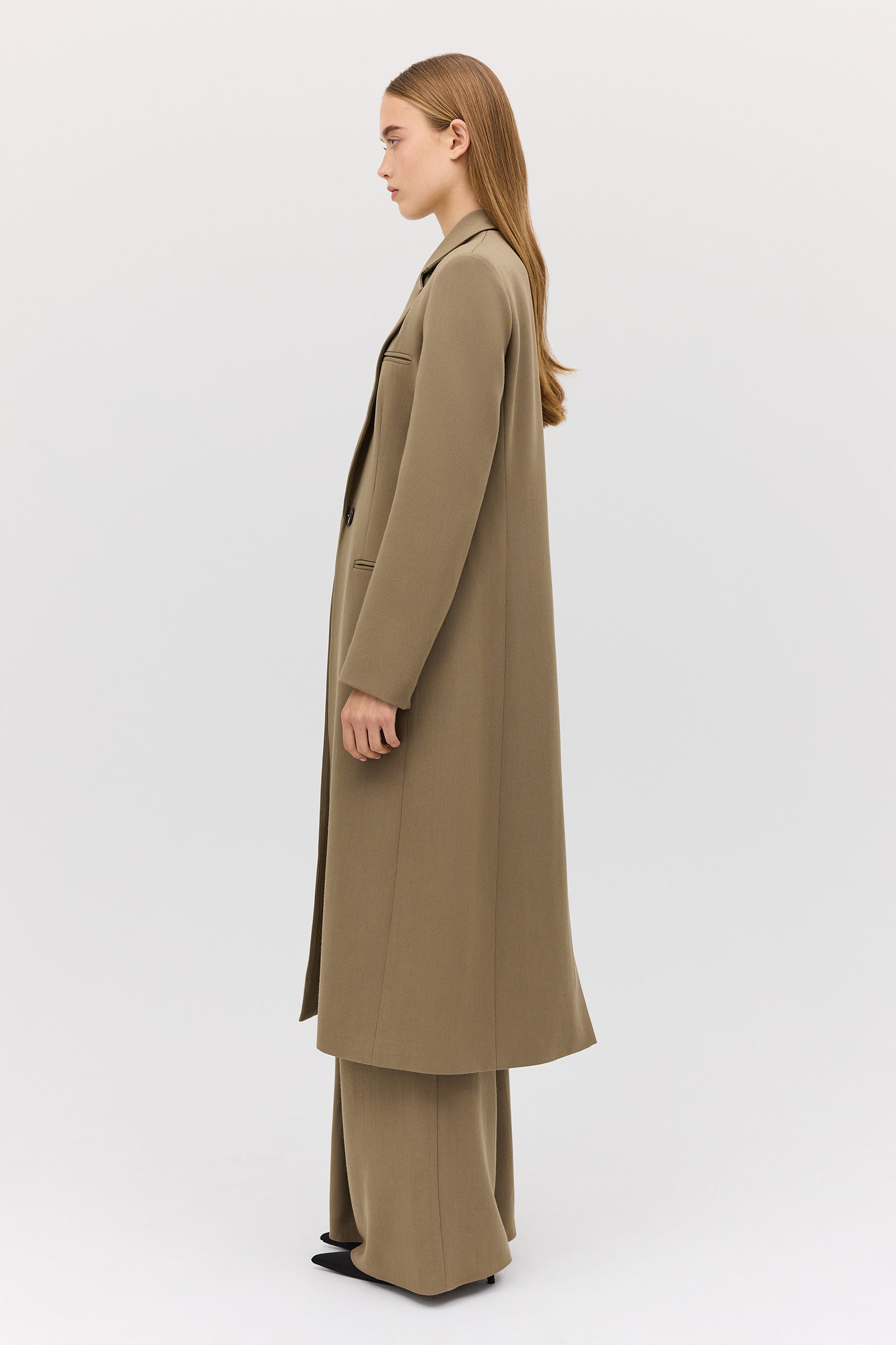 A fresh take on a bestselling style. The Shifting Coat has been reimagined for the Autumn 25 collection, an evolution of our most-loved Shifting Jacket. Unrestricted tailoring for modern dressing, The Shifting Coat is constructed from Clay Wool Suiting and designed with a detachable wrap waist belt that plays on utility styling. Wear loose or buttoned for a relaxed fit, or cinched at the waist for a fitted look.
