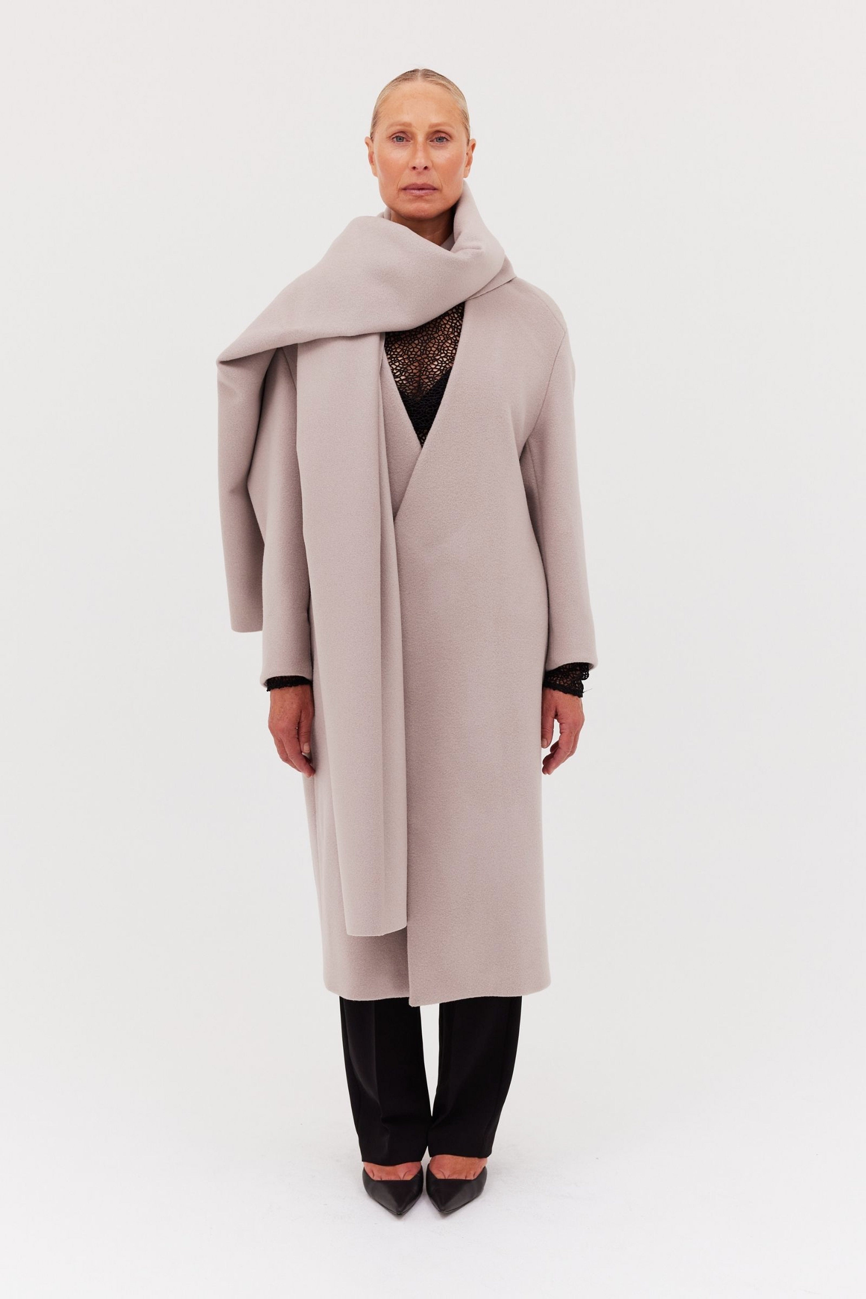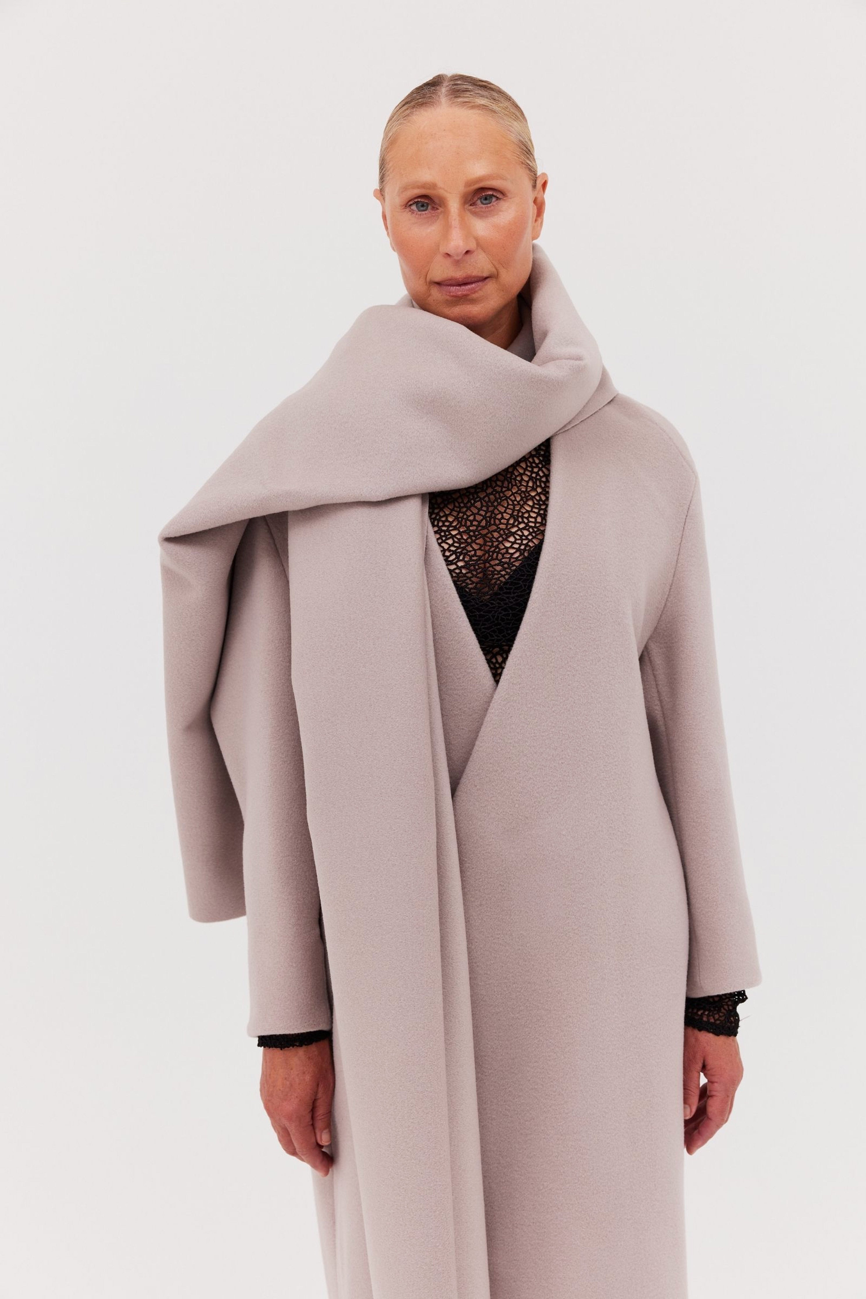 Fashioned from plush wool coating fur, the Enfold Scarf exudes opulence. Whether elegantly draped over your shoulders or snugly wrapped around your neck, this soft Wool-blend scarf promises luxurious warmth and style.