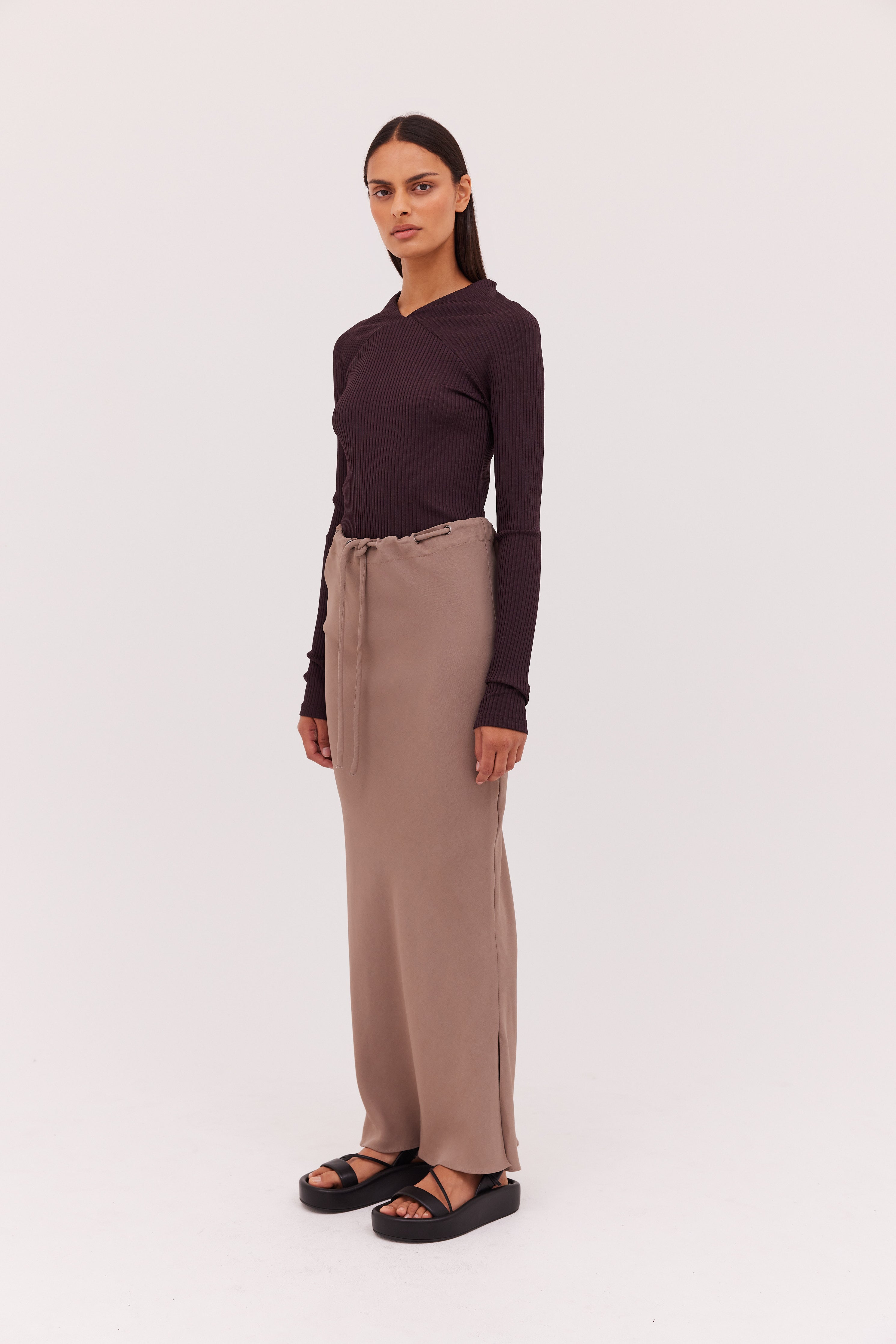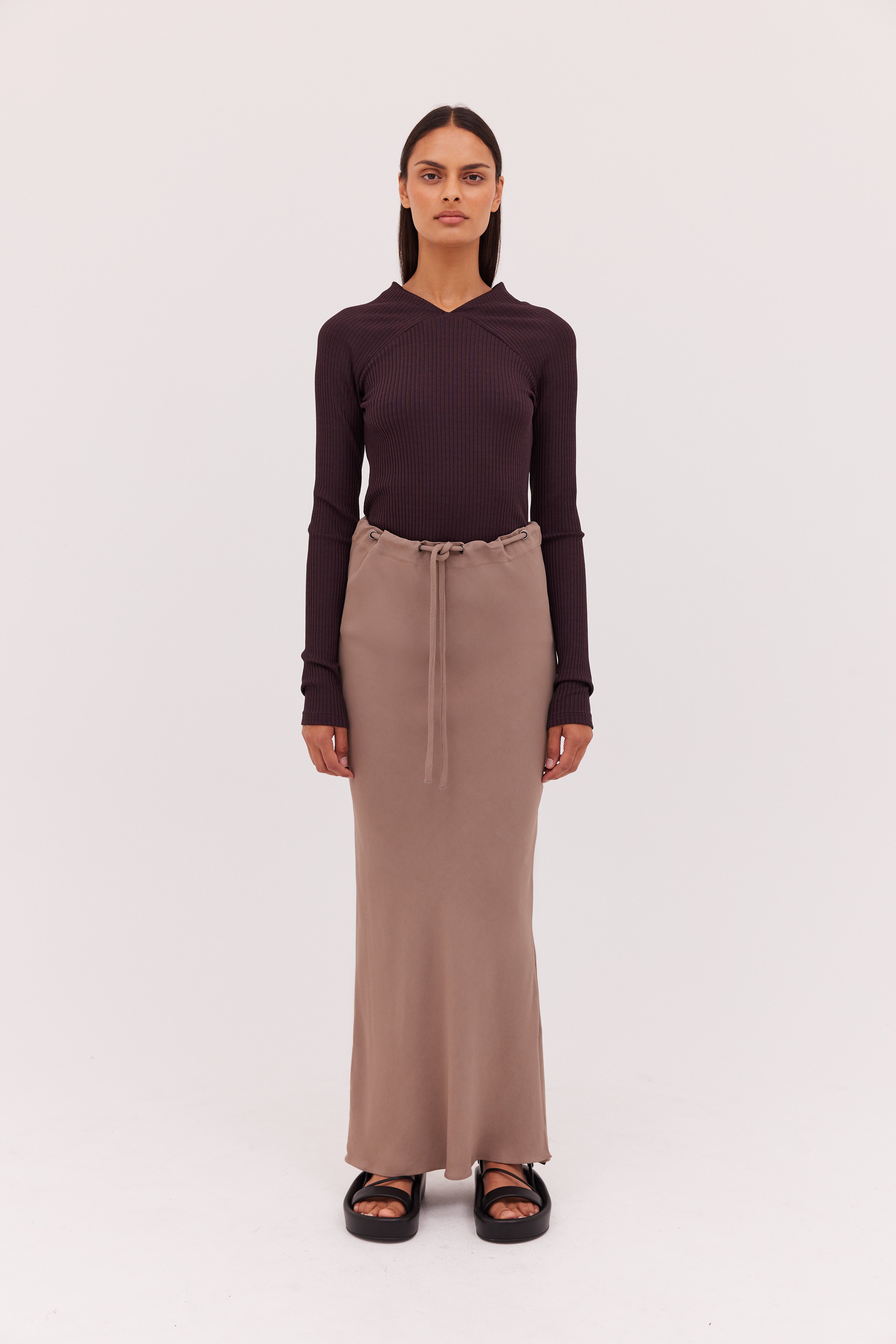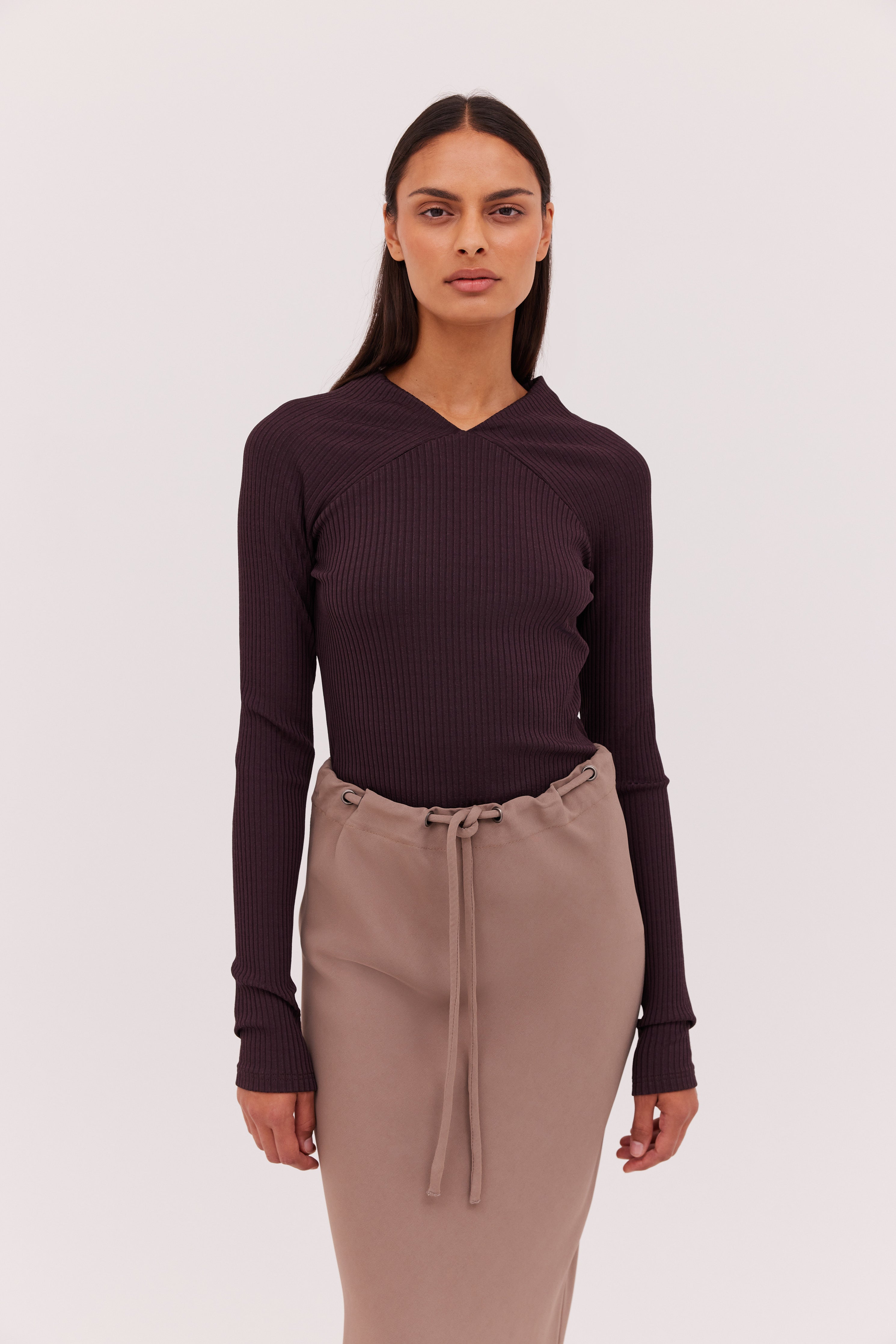 The Chocolate Rib Vault Top is a versatile, easy-to-wear piece, that will take you from day-to-night with ease. Featuring a soft rib knit fabric, with gentle stretch that gently envelops, and a v-neckline with contrast panels.