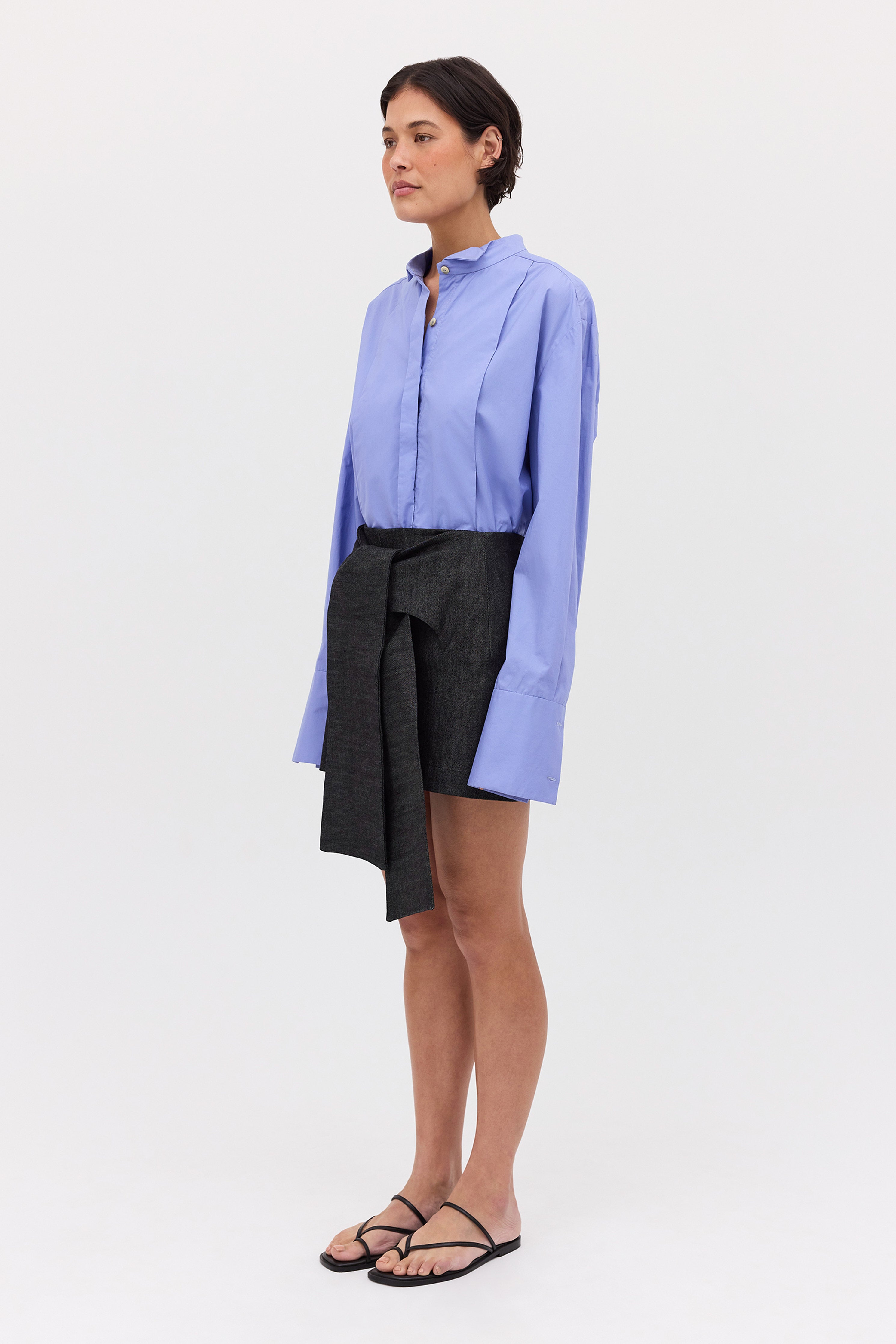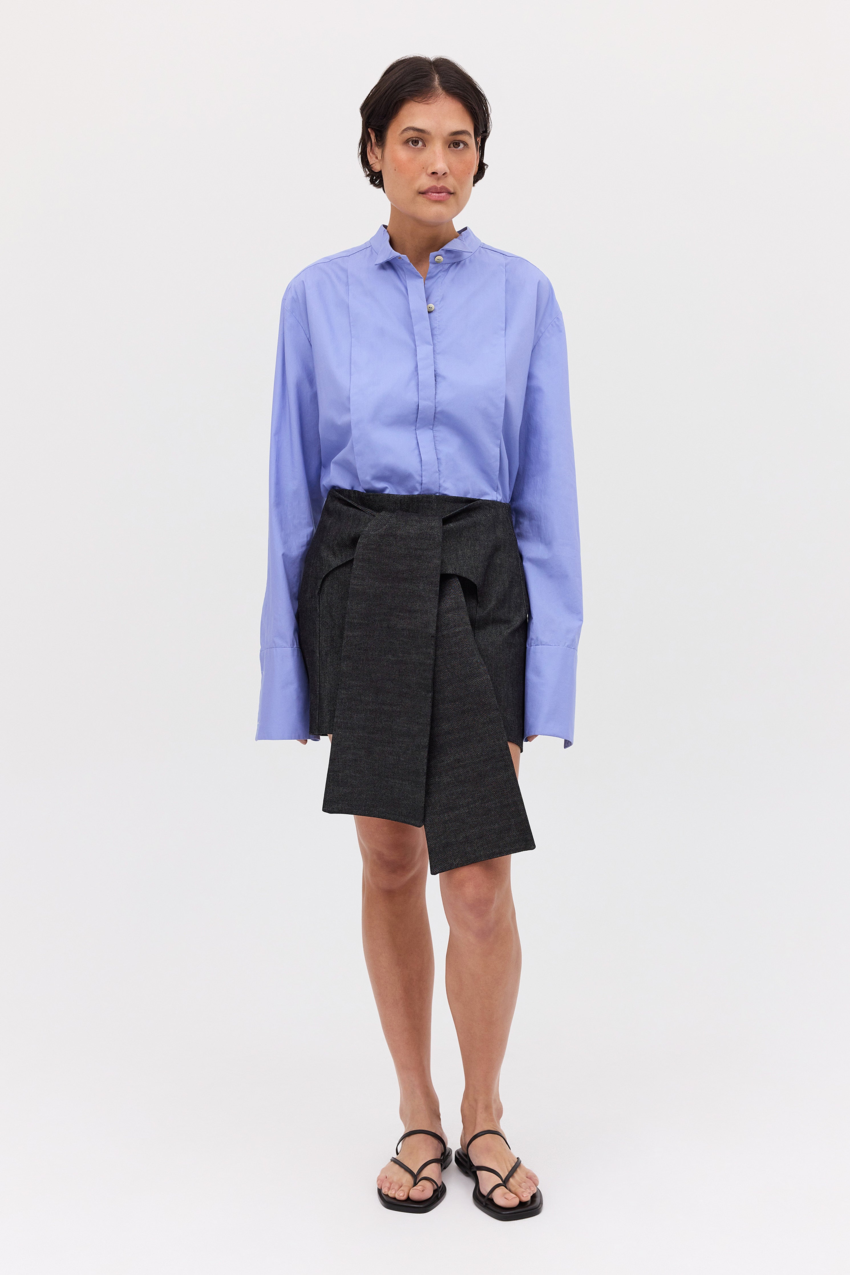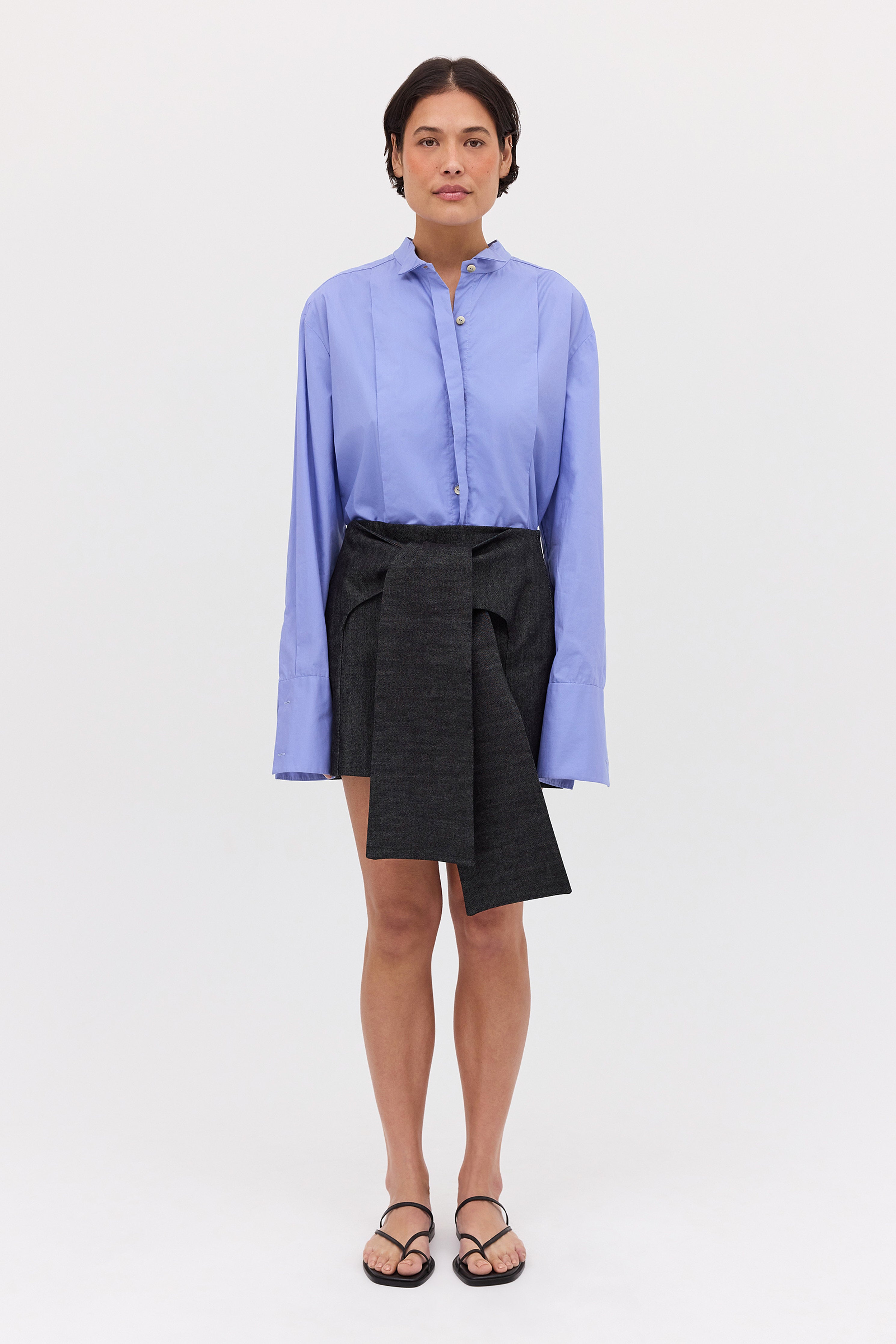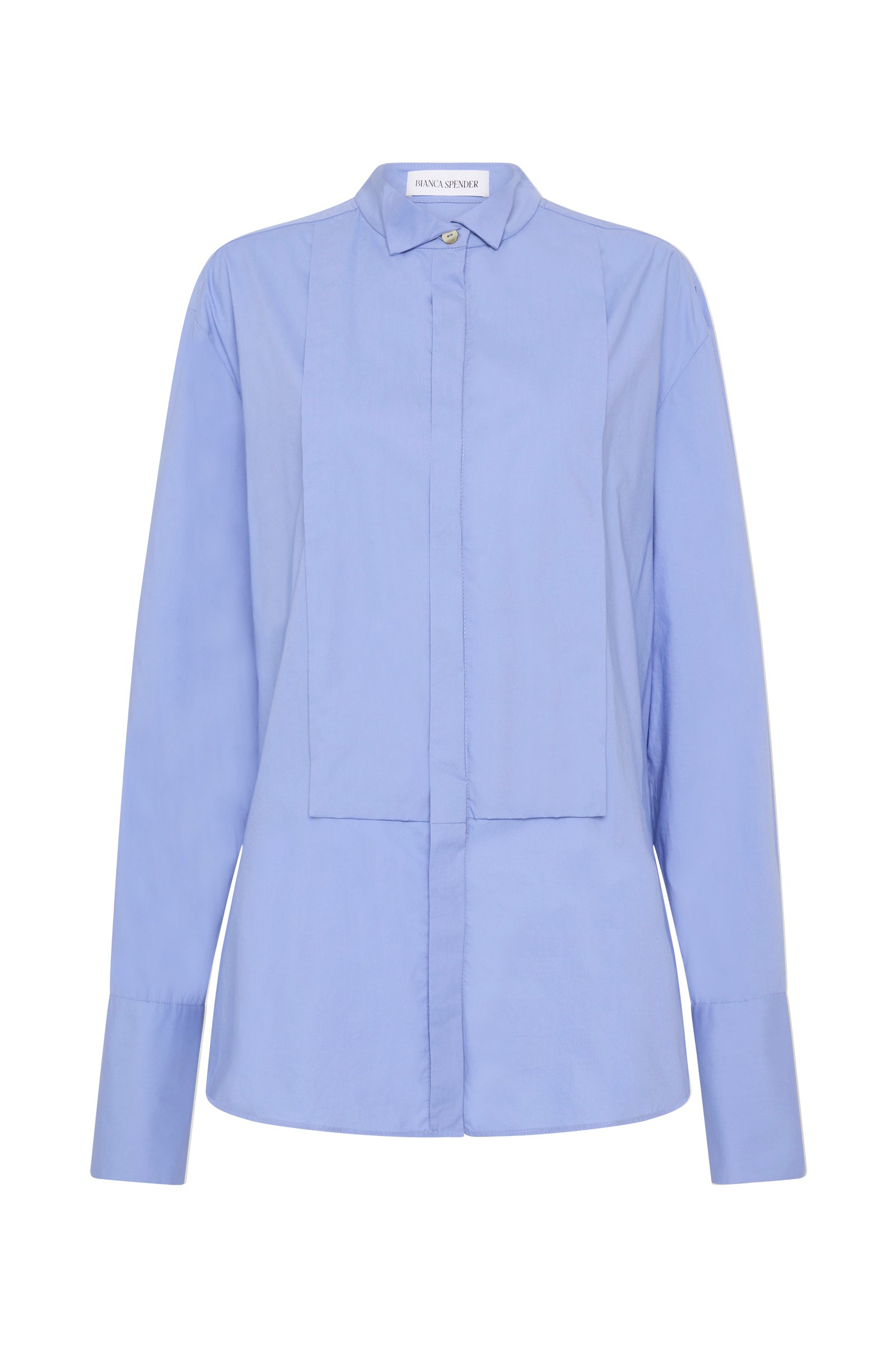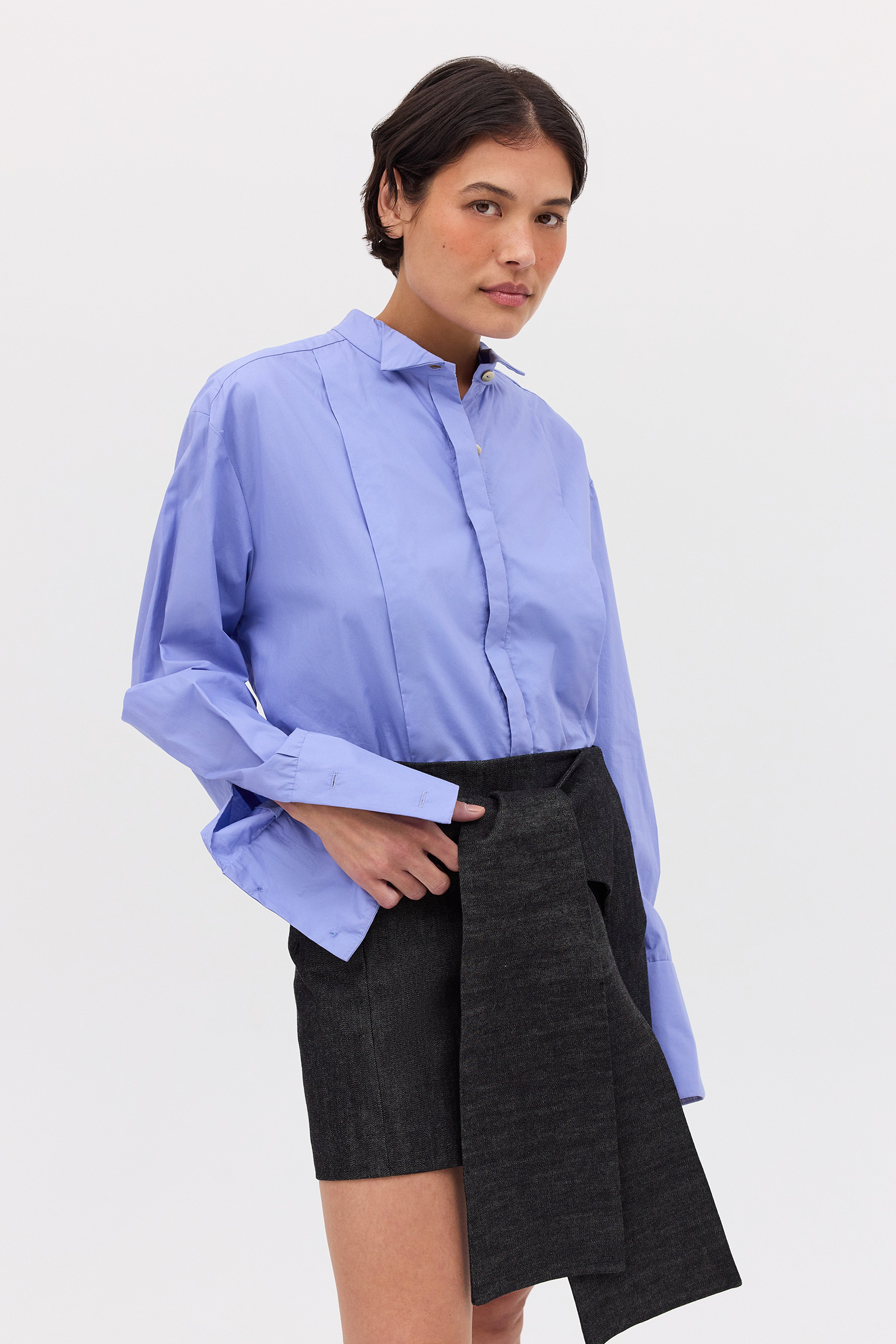 A modern take on classic shirting, The Cornflower Cotton Tuxedo Shirt is set to become the base of your foundational wardrobe. A chic, versatile staple that will be carried over season after season. The Tuxedo Shirt is anything but basic featuring all the fine design details Bianca Spender is known and loved for. Crafted from mid-weight starched cotton, featuring a crisp collared neckline and voluminous sleeves with pintuck bib detailing at front.