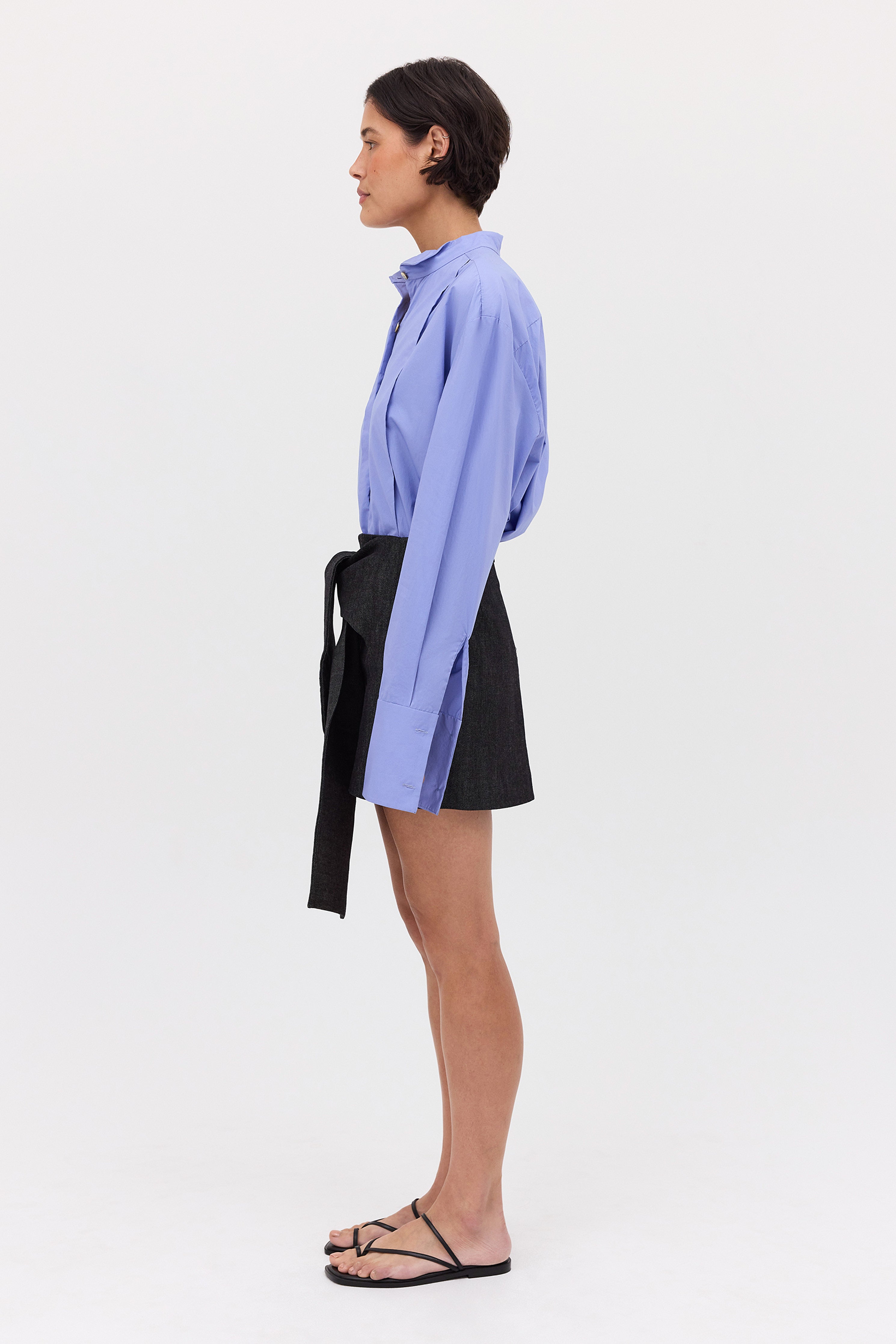 The Cornflower Cotton Tuxedo Shirt Cotton is designed with longevity and versatility in mind, and can be styled back with your everyday core pieces. For an elevated workwear look we recommend styling with the Fluent Pant.