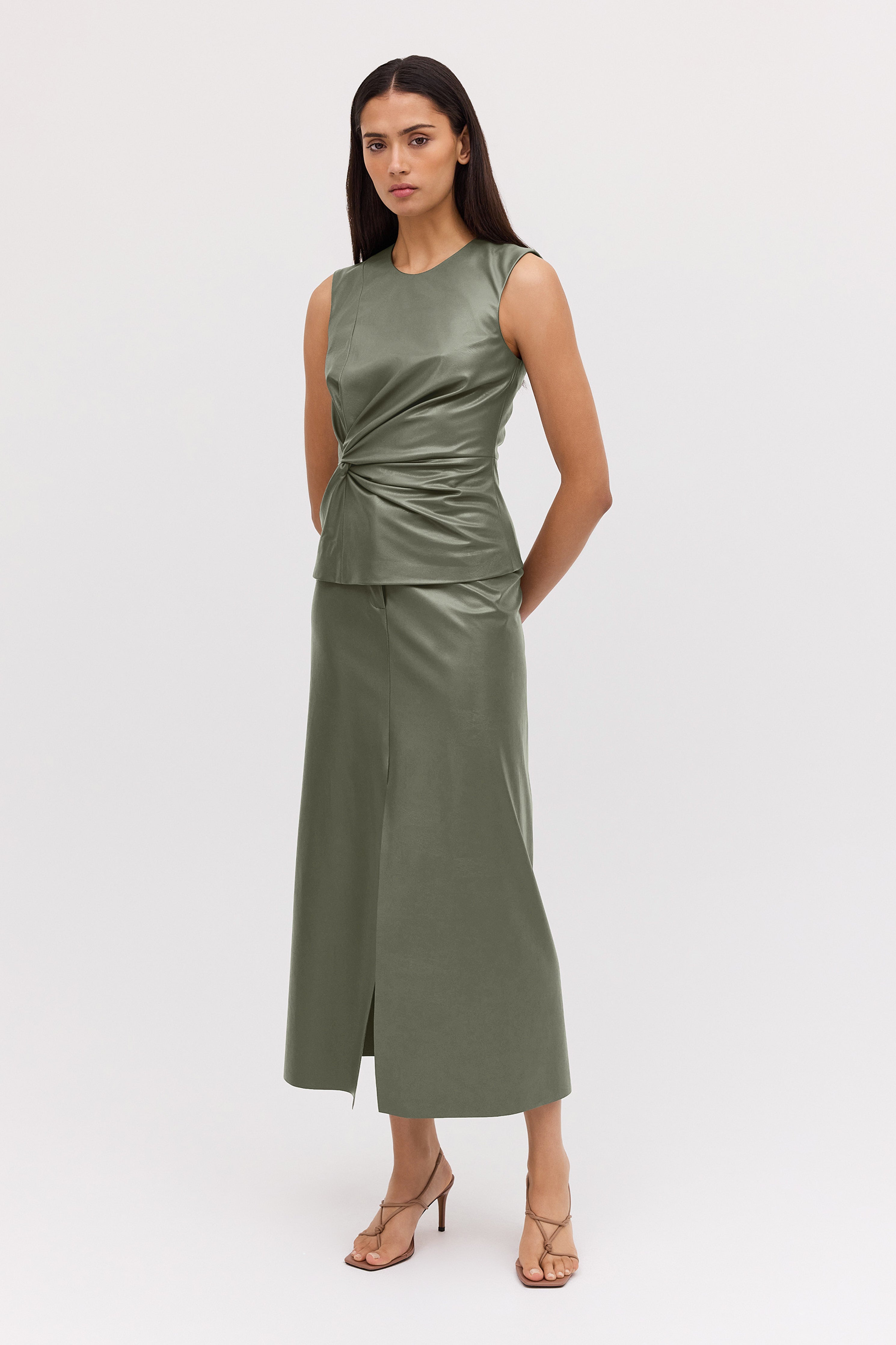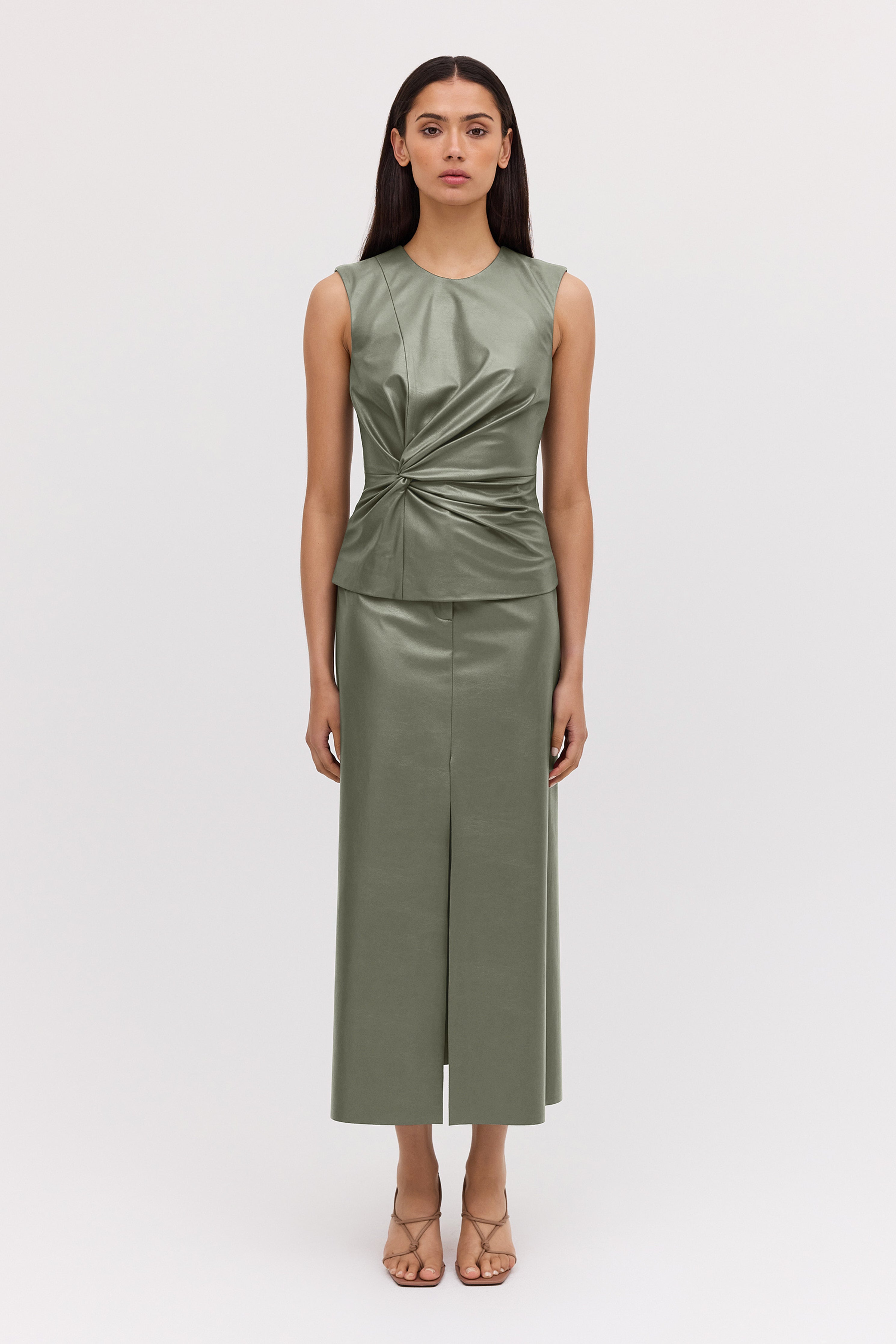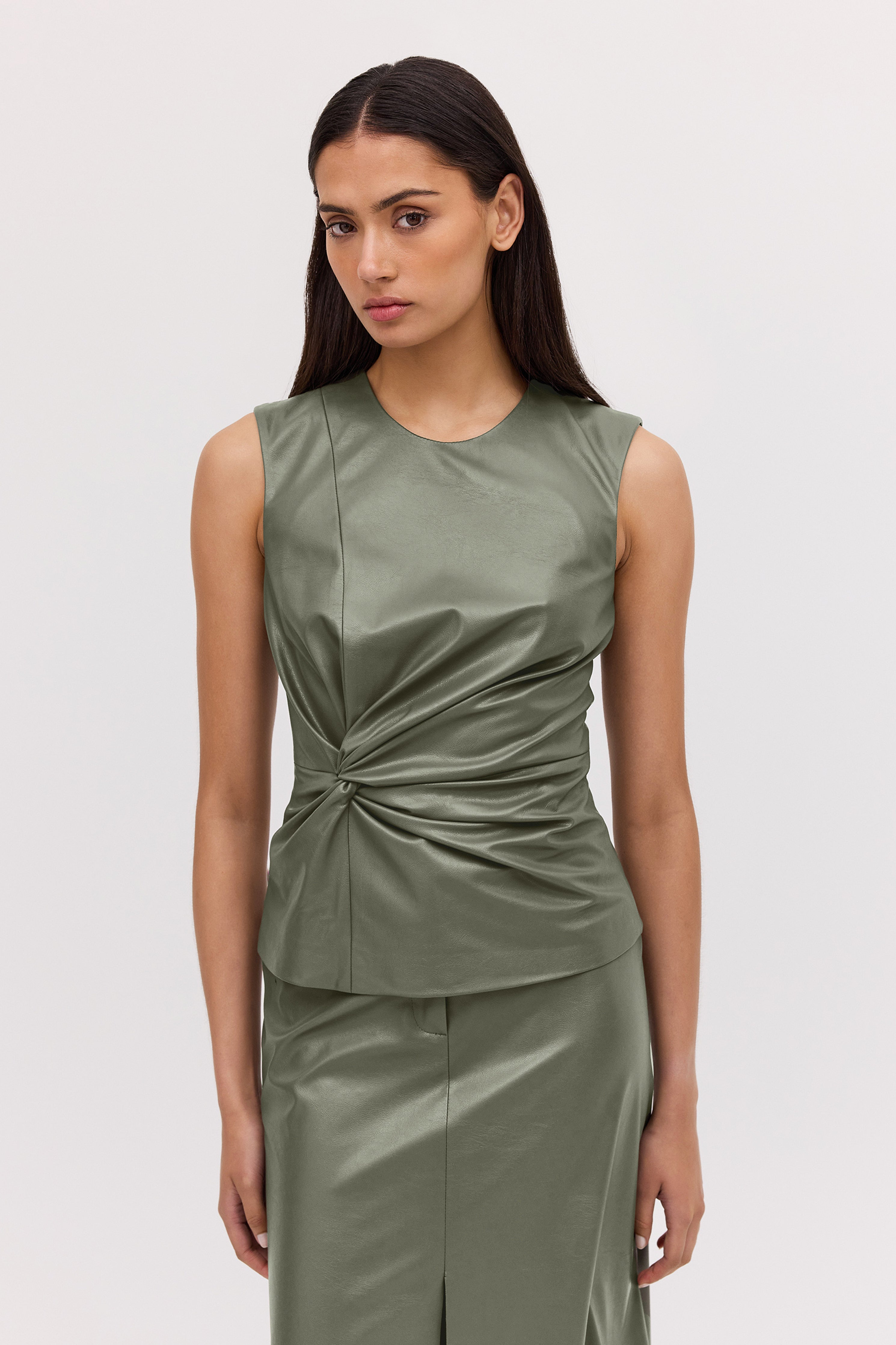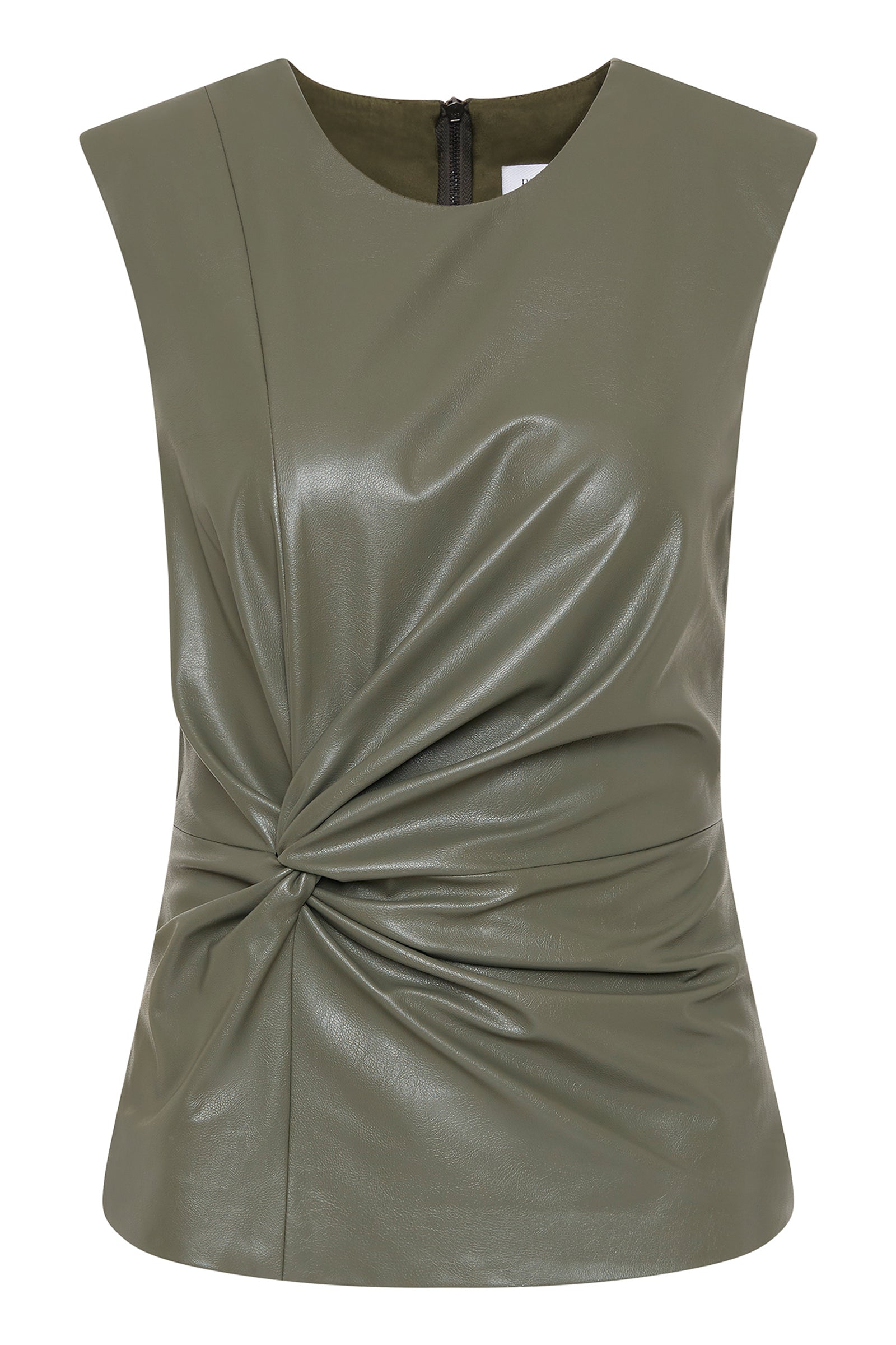 Introducing our Illusion Top. Featuring twist detailing, signature to Bianca Spender and constructed from cruelty-free, vegan leatherette. The intricate design follows the form of the body for a flattering, figure-defining fit.