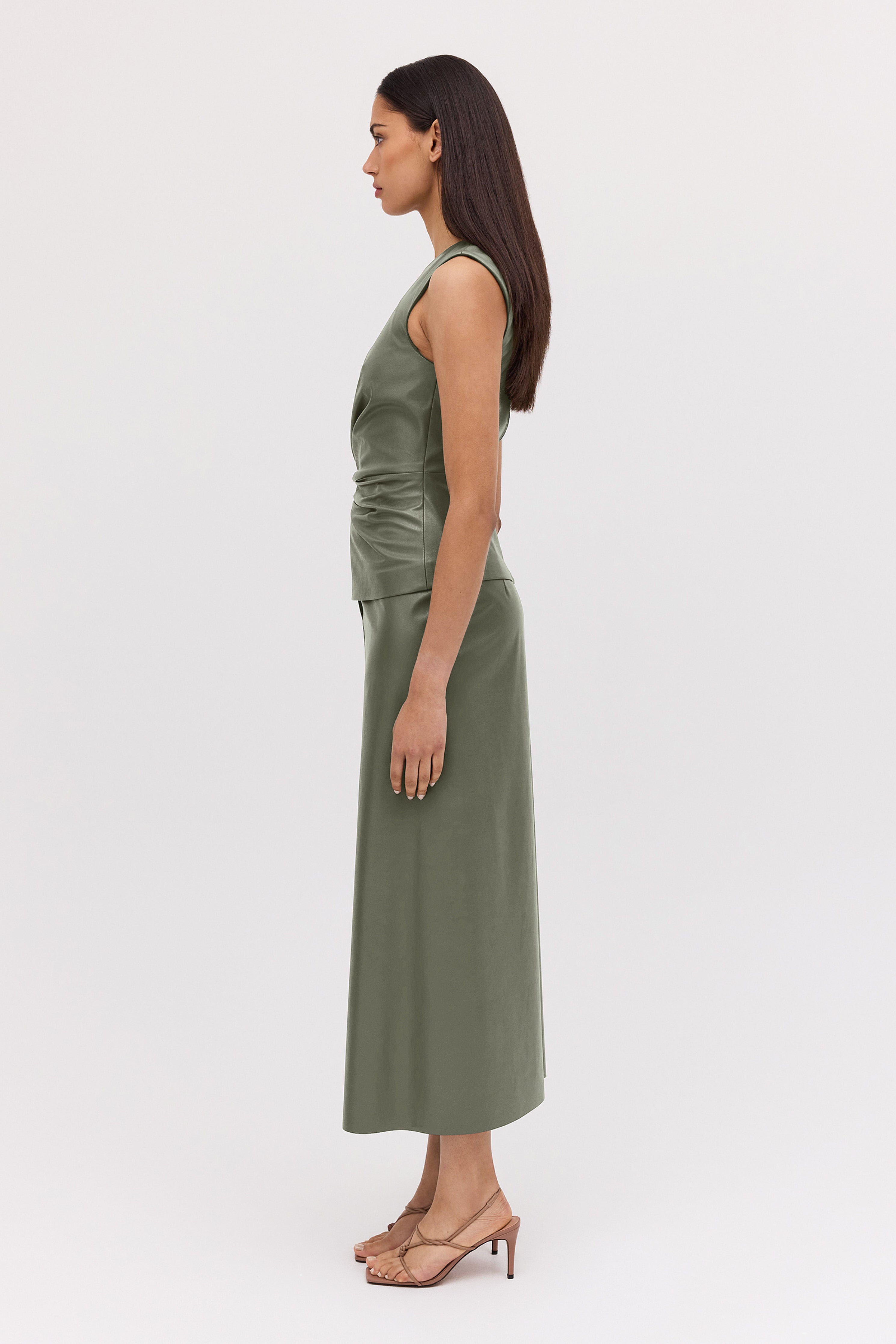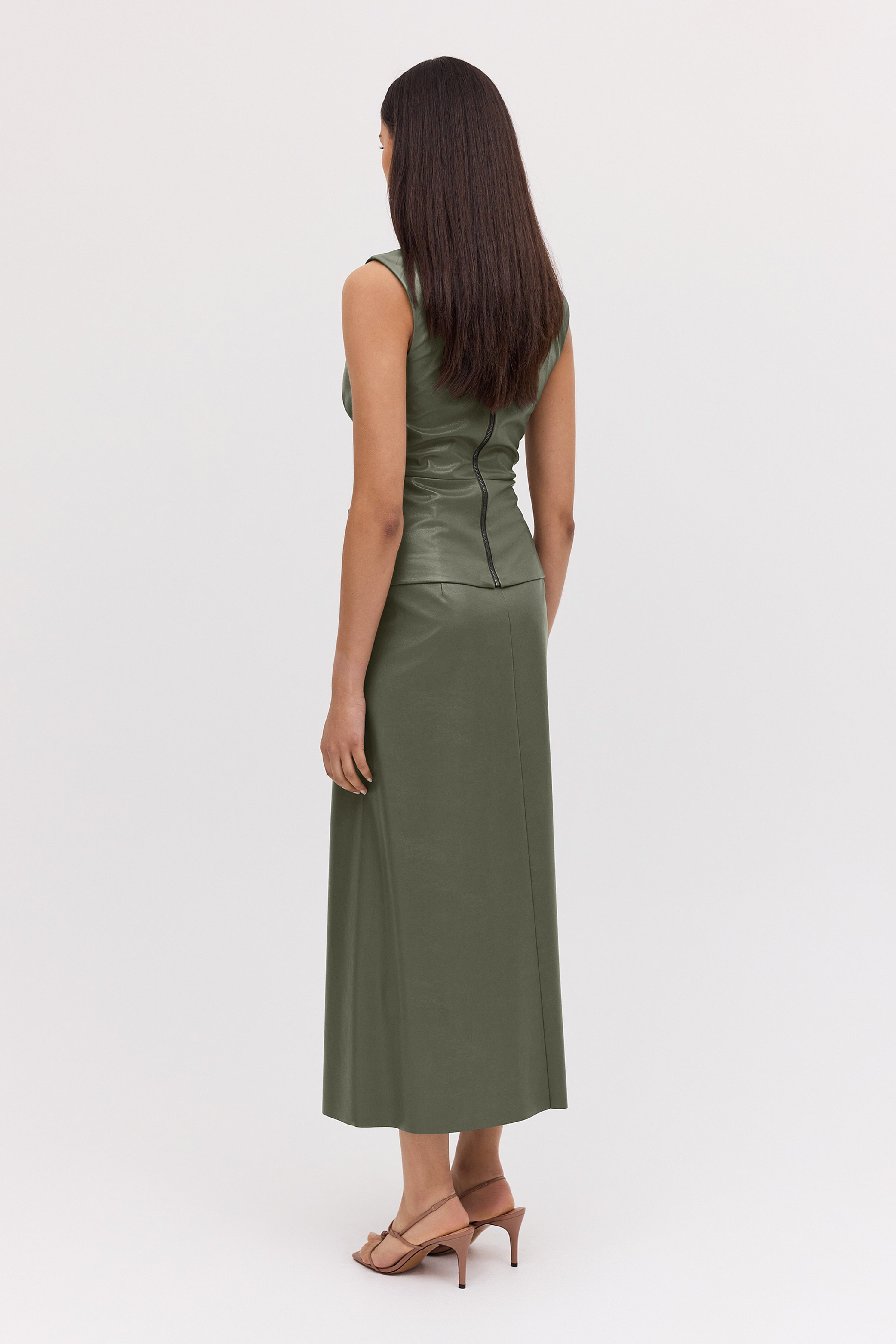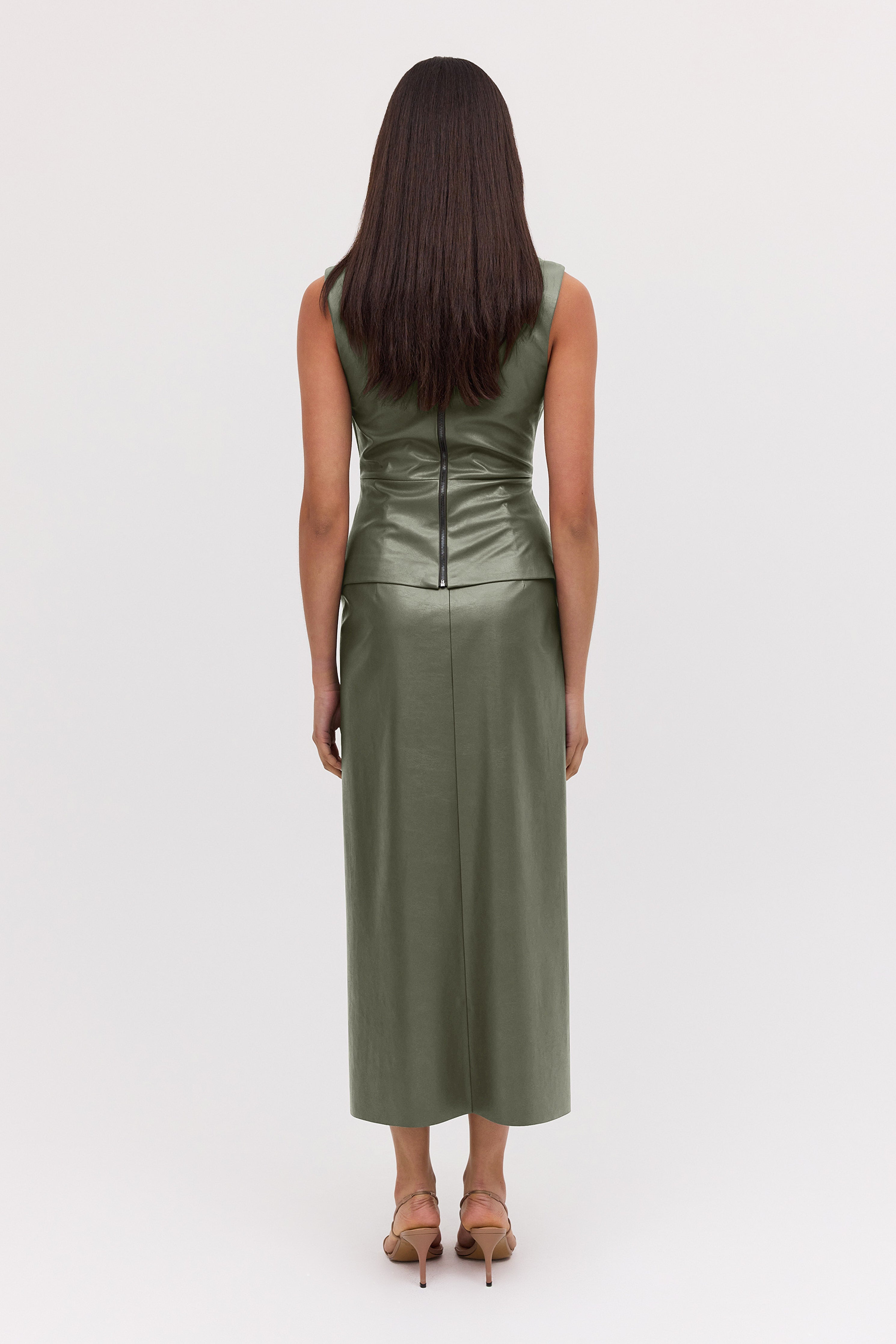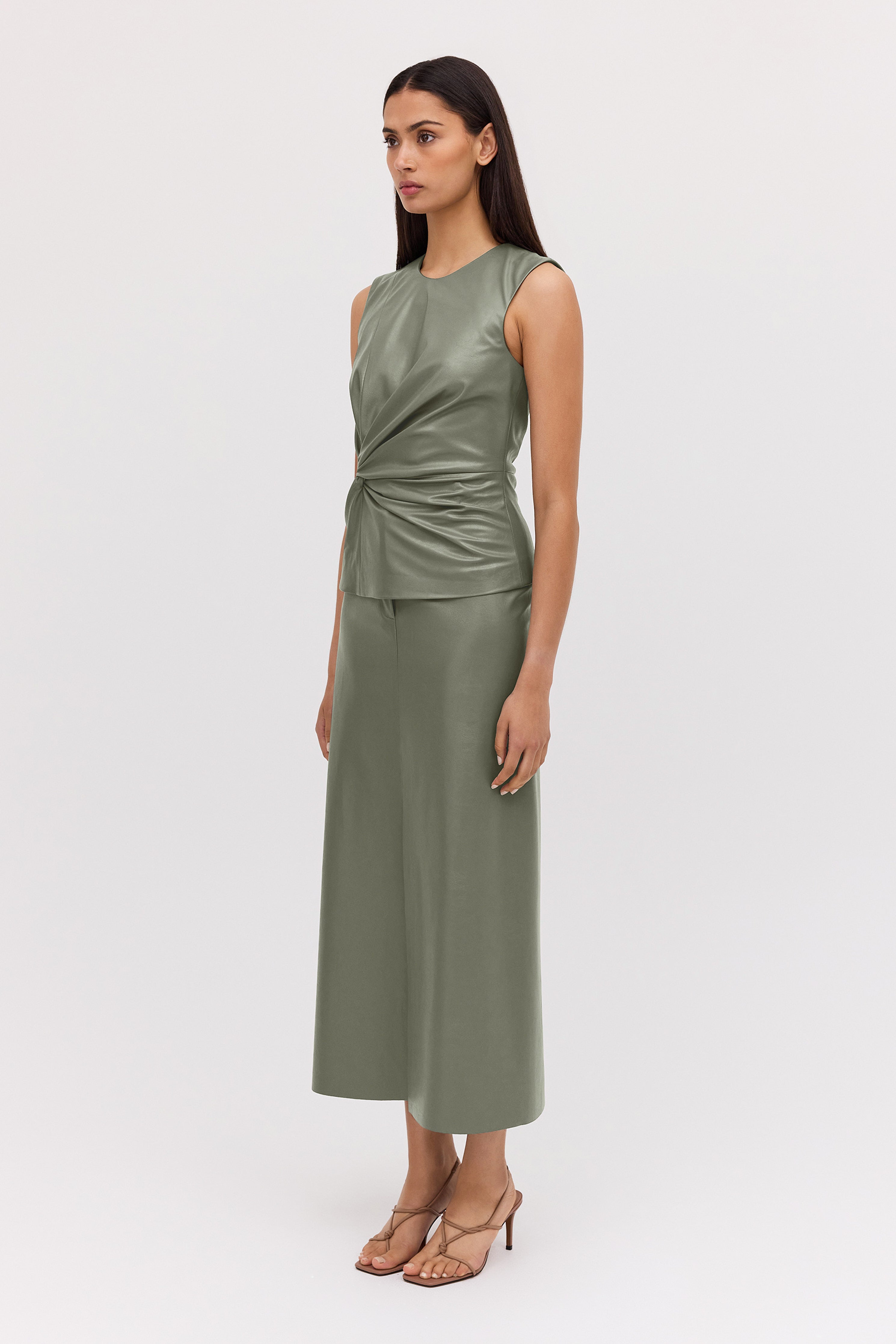 Introducing our Illusion Top. Featuring twist detailing, signature to Bianca Spender and constructed from cruelty-free, vegan leatherette. The intricate design follows the form of the body for a flattering, figure-defining fit.