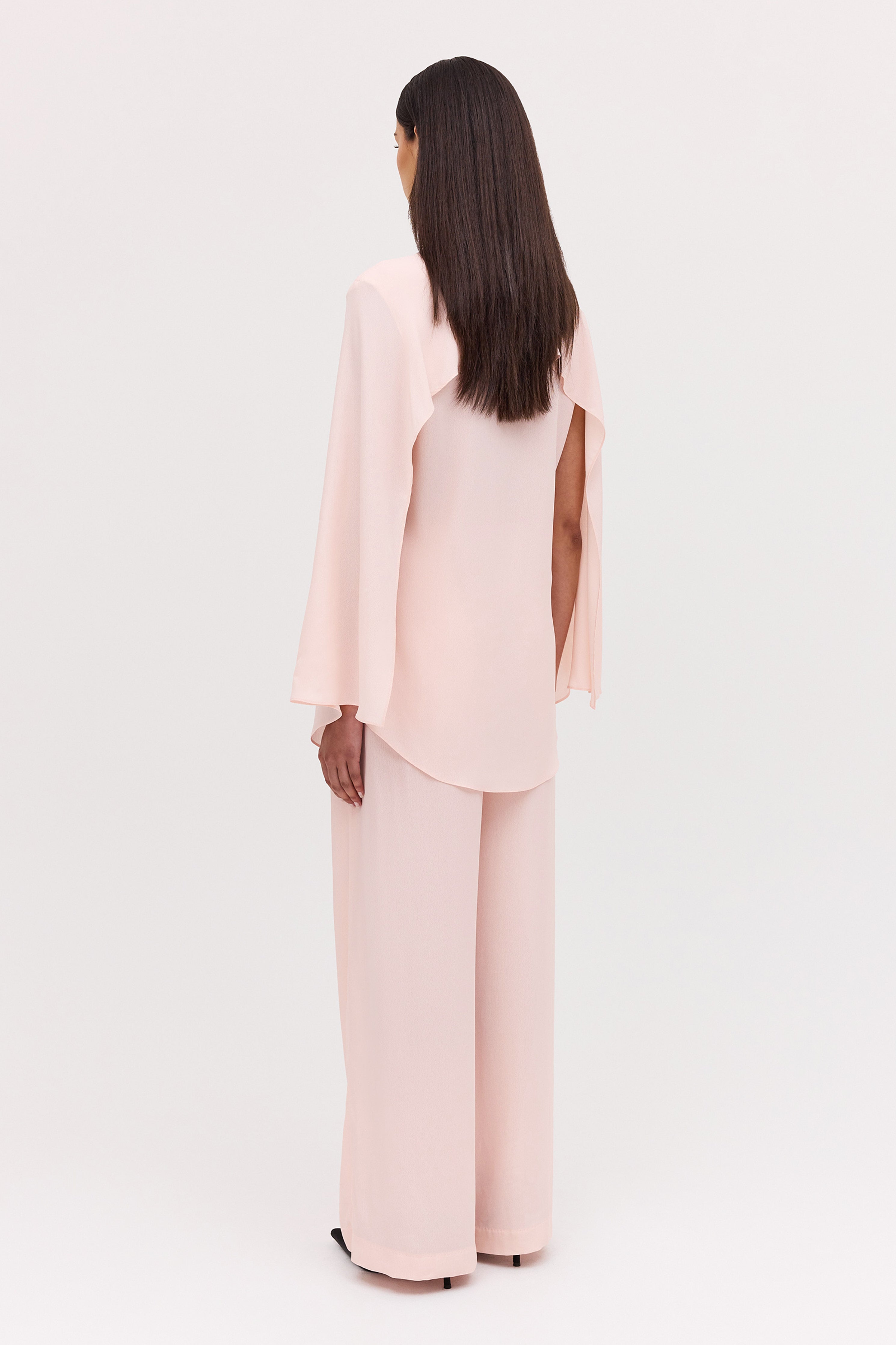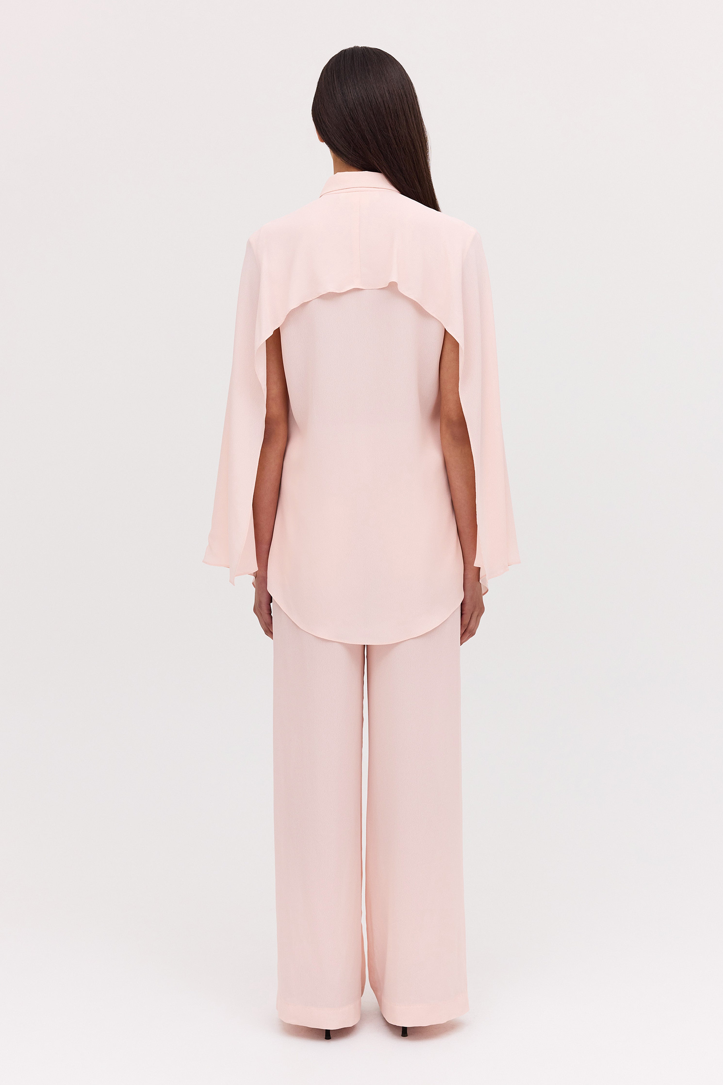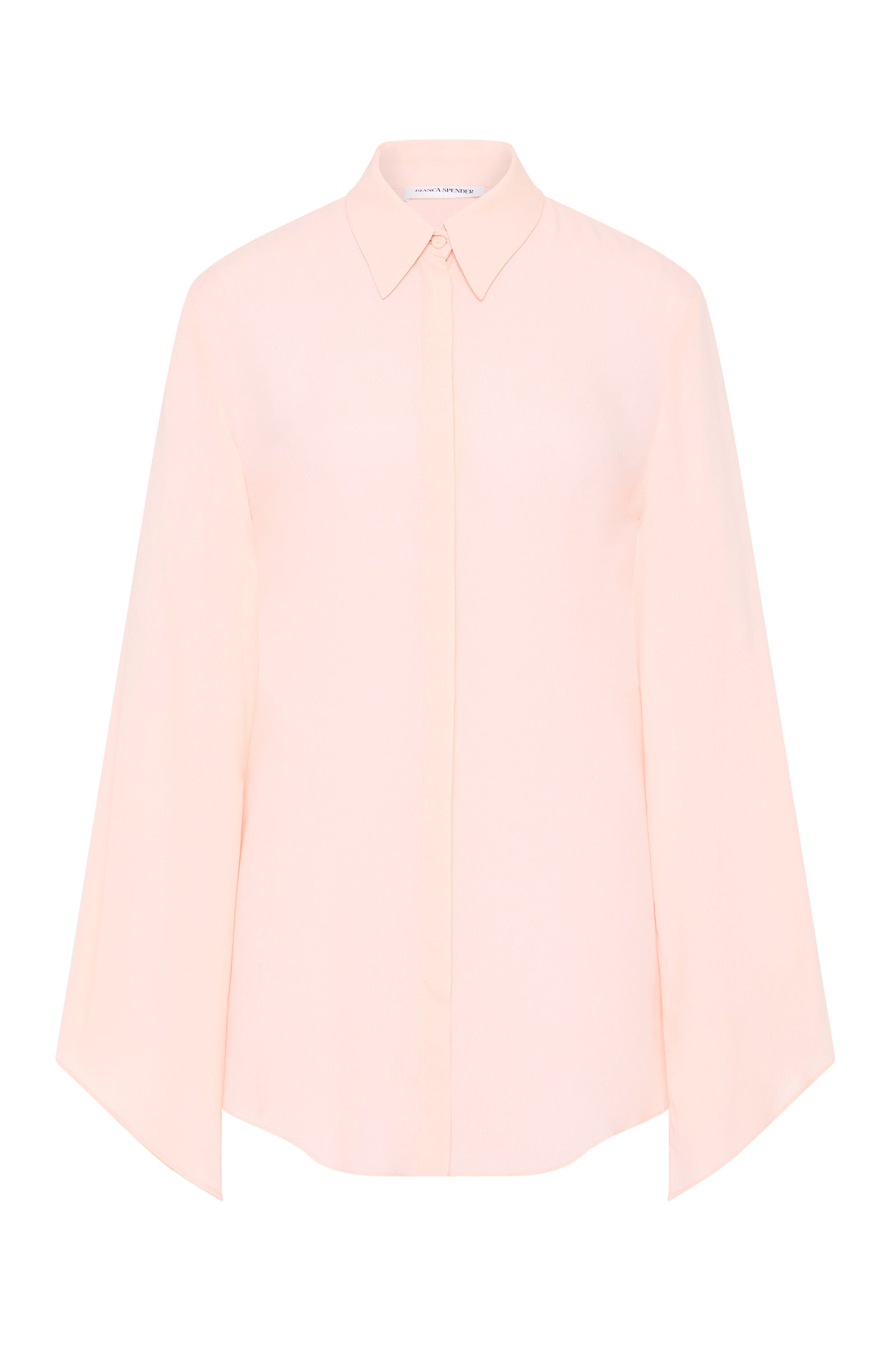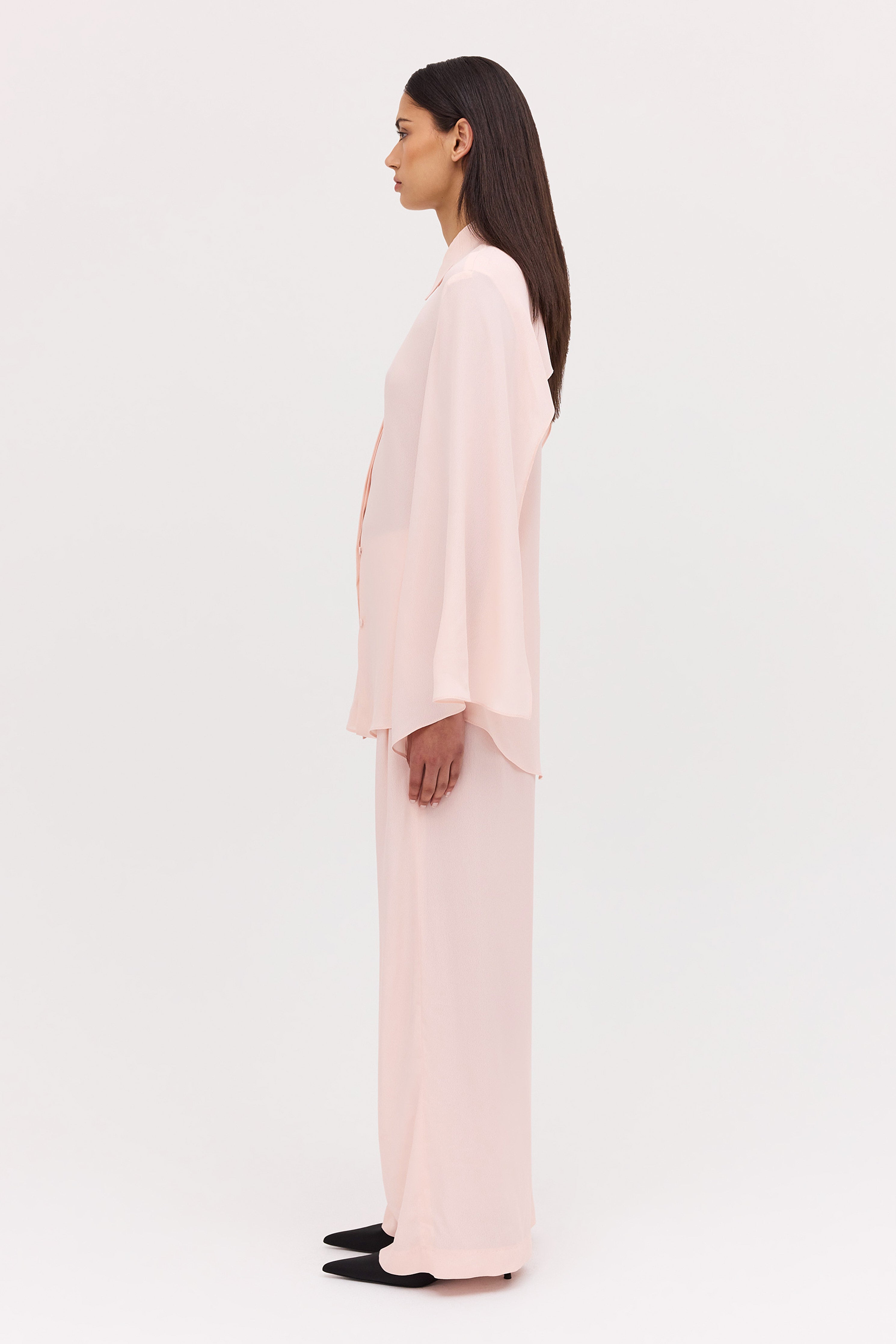 Elevate the everyday with the Pink Crinkle Crepe Absolute Shirt. A modern take on the classic white shirt, designed to take you through the changing seasons effortlessly. Crafted from a crisp, low-maintenance viscose, with soft gentle drape and splits through the sleeve, giving a cape-like feel and allowing a sense of air and movement around the body.
