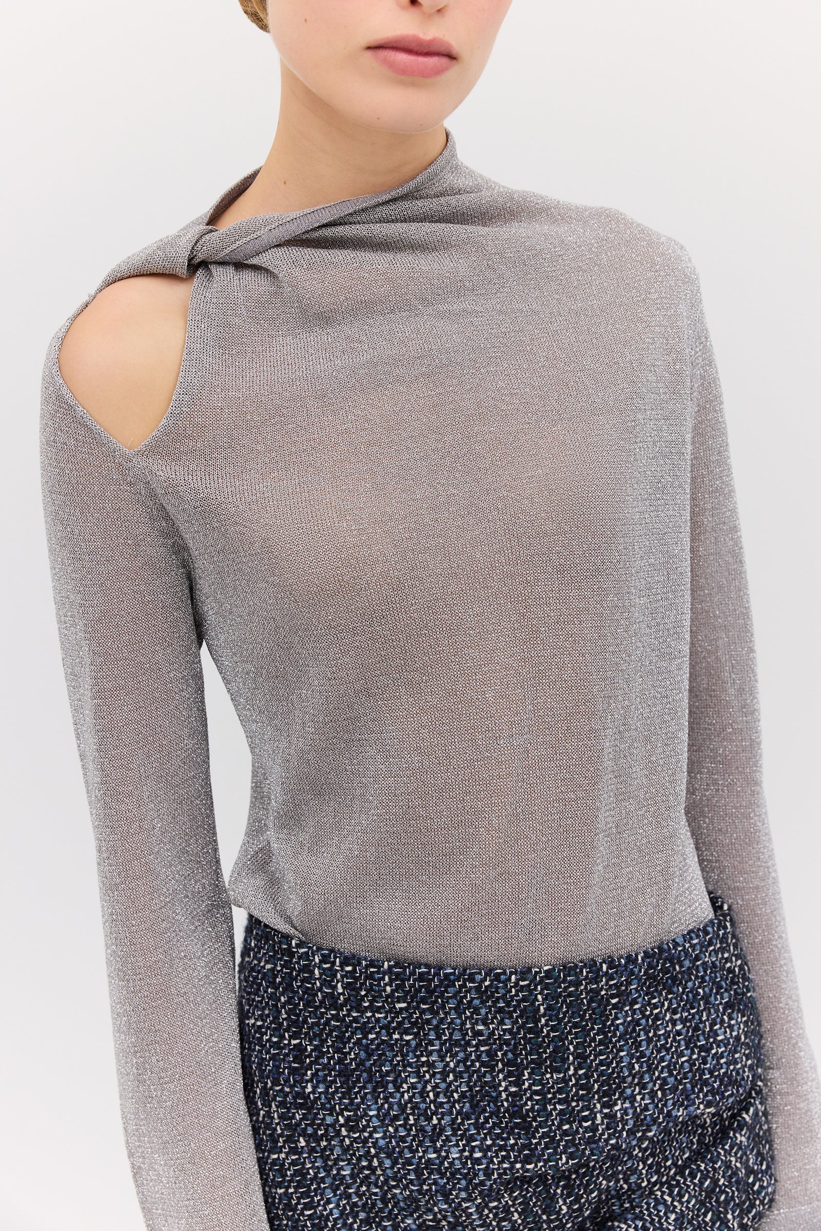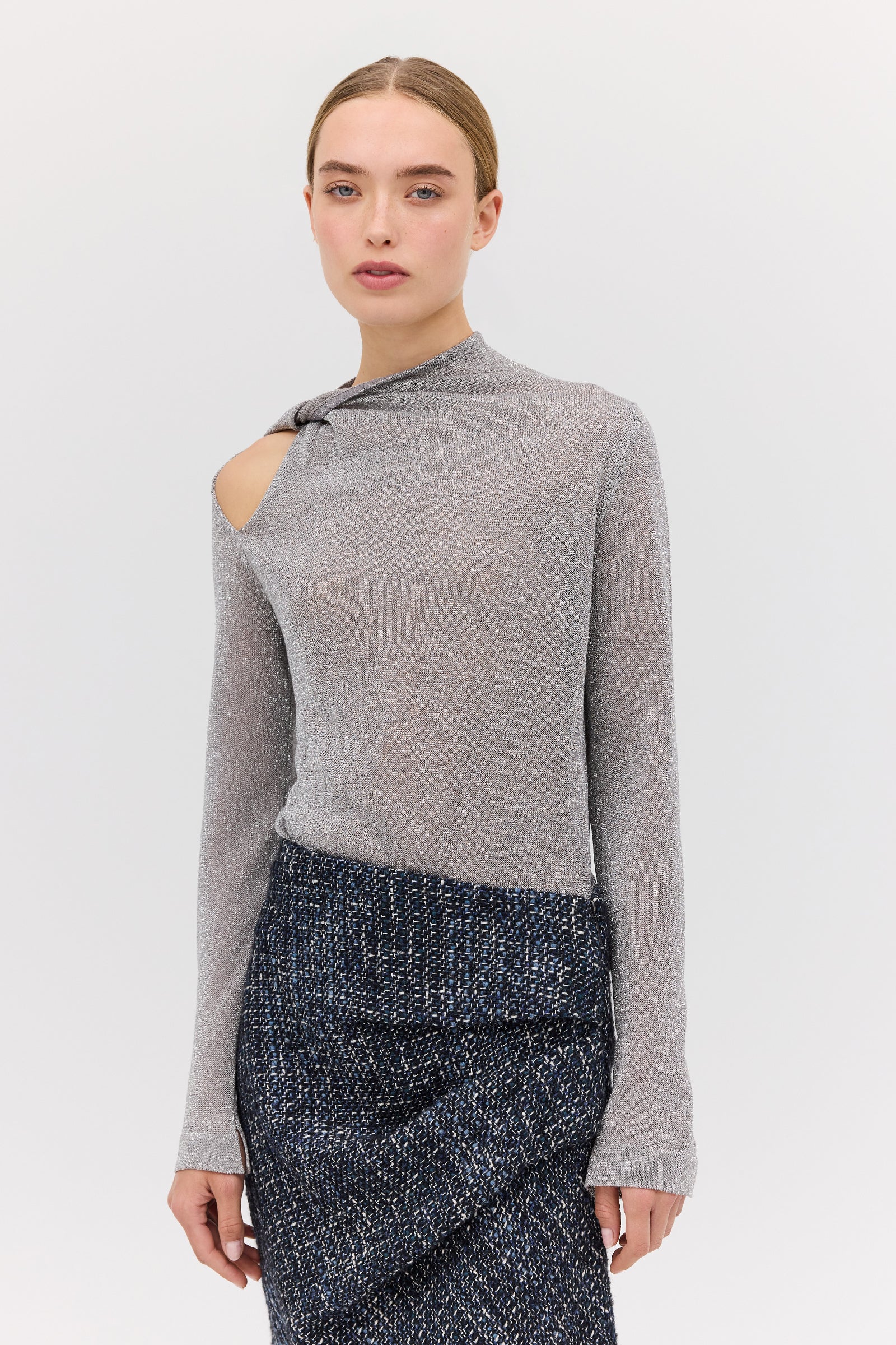 The Silver Metal Abbott Knit embodies signature design and our effortless yet refined handwriting. Featuring twist detailing at the shoulder, carefully considered and crafted in textural, metallic lurex knit. A relaxed fit through the body, the Abbott Knit feels soft and lightweight against the body, adding warmth while allowing a sense of air.