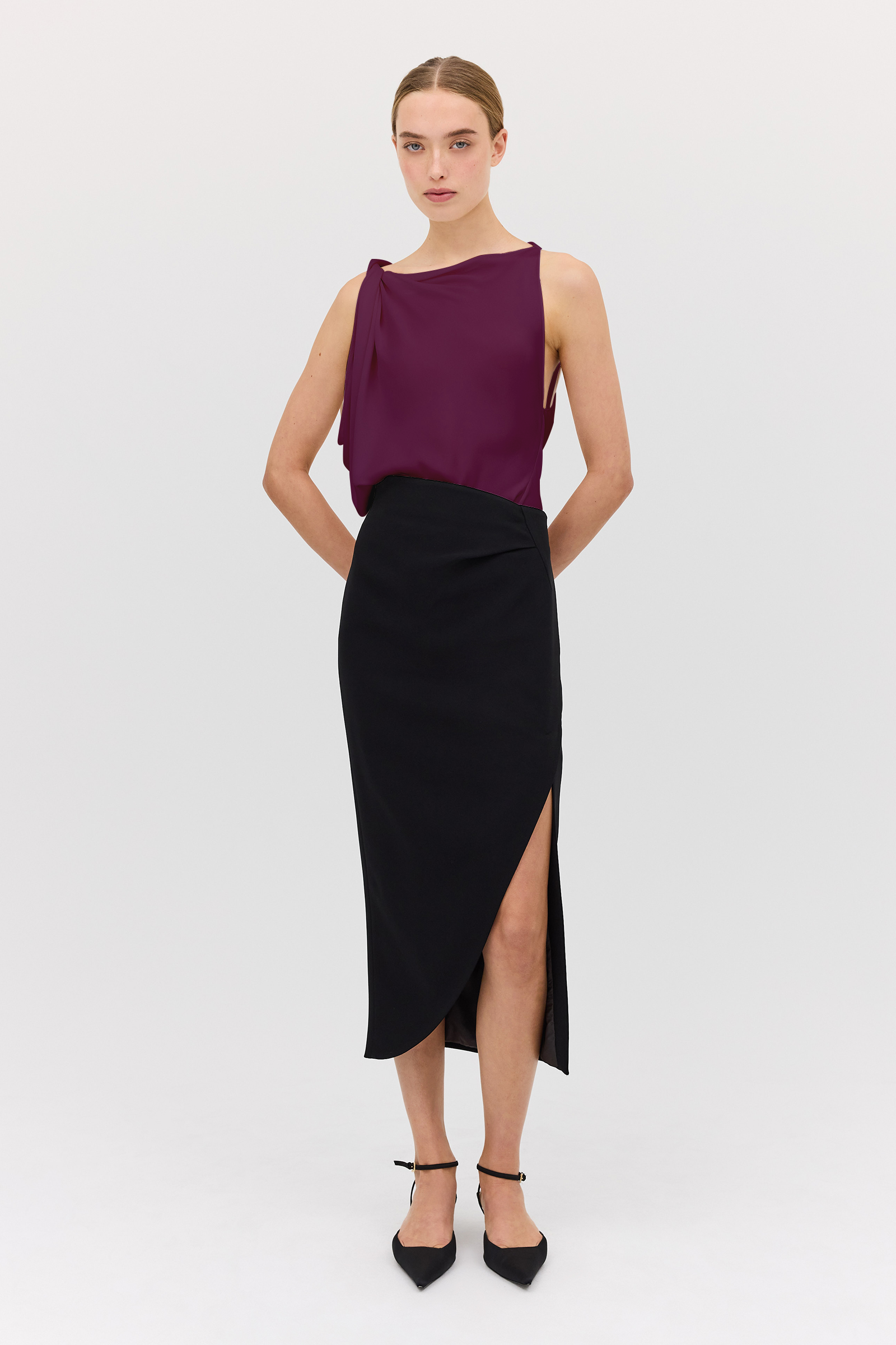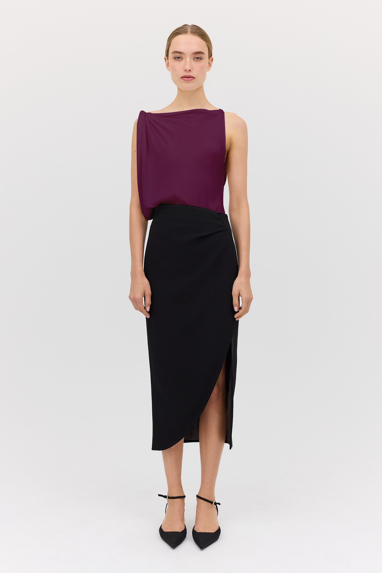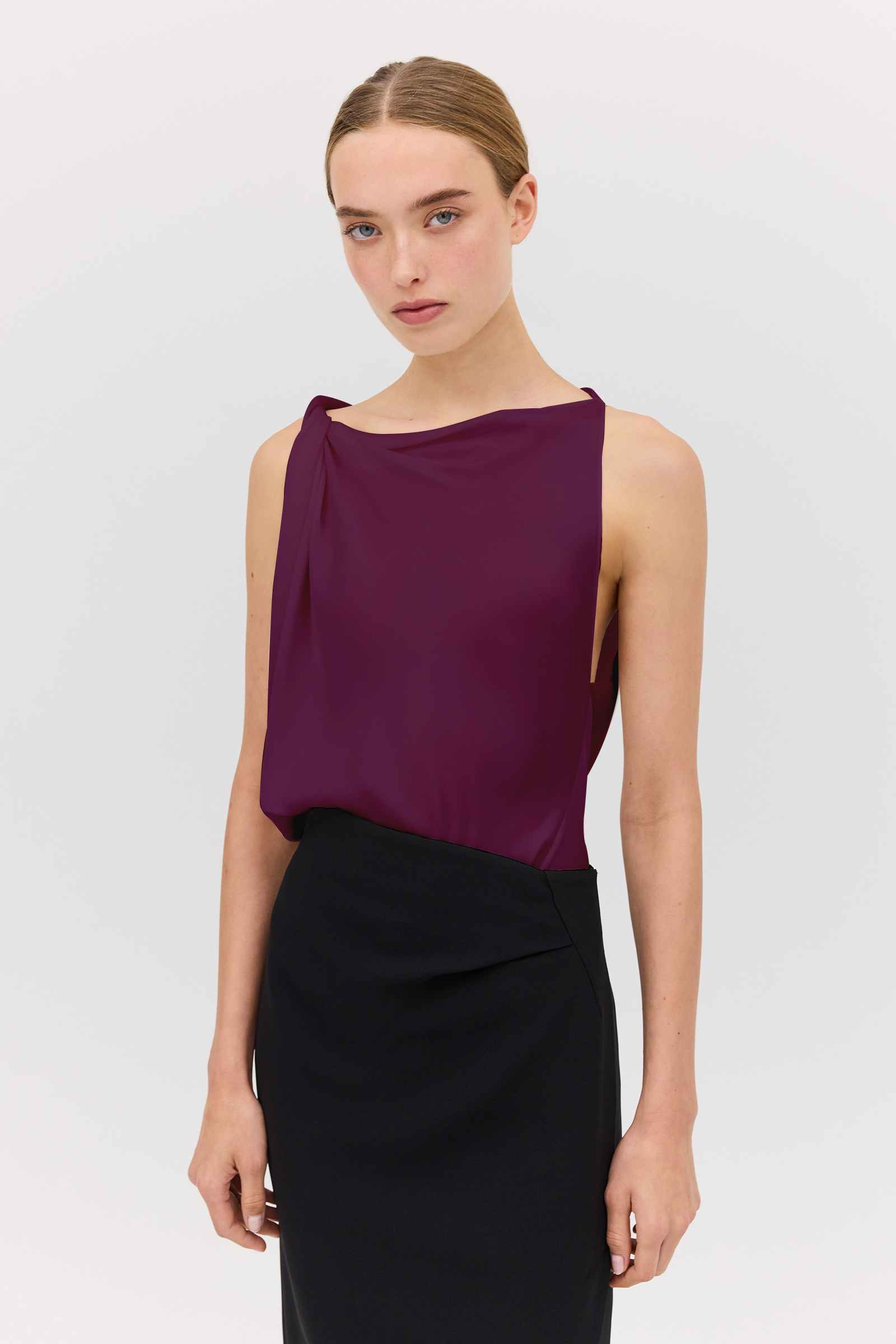 Introducing the Roma Top. Based on our best-selling Roma gown, this universally flattering shape allows Bianca's signature draping style to shine. Featuring a boat neckline, the liquid-like satin fabric falls and flows to allow ease of movement and a sense of air. A versatile piece, this top may also be worn pulled down off the shoulder.