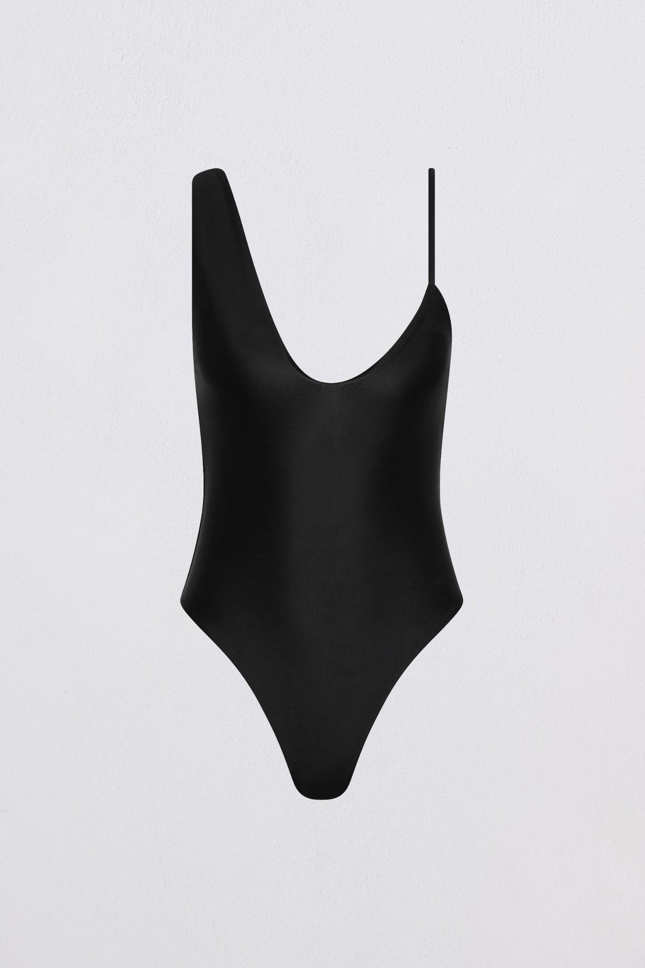 The Plunge One Piece is cut in stretch lycra with a deep V-neckline and asymmetrical fixed straps that sculpt the form. A high-cut leg elongates the silhouette, balanced by moderate back coverage for ease of wear. As seen on Jess Hart at Australian Fashion Week, this versatile style is designed to move seamlessly between swim and resort — worn as a swimsuit or styled as a bodysuit.