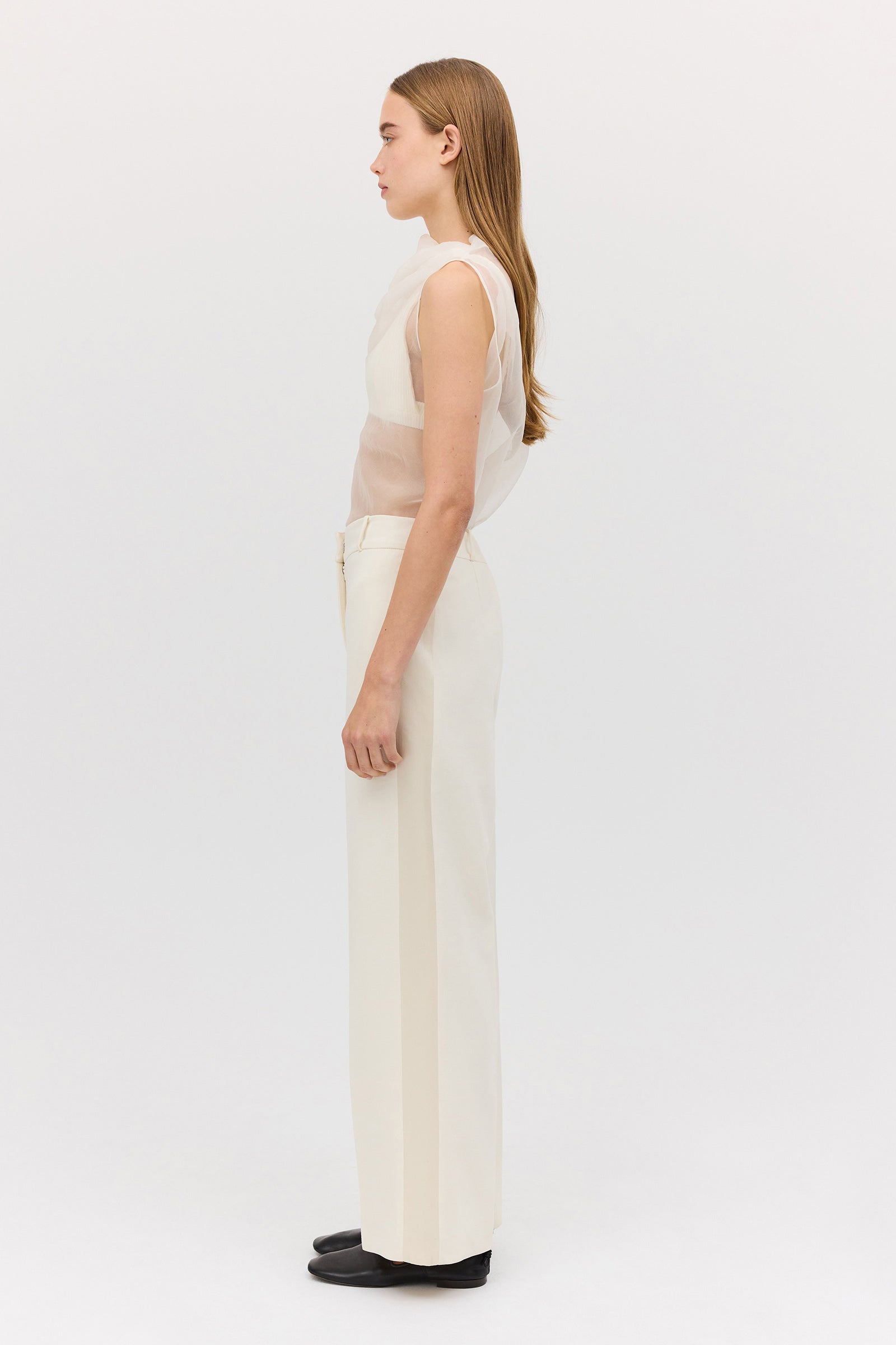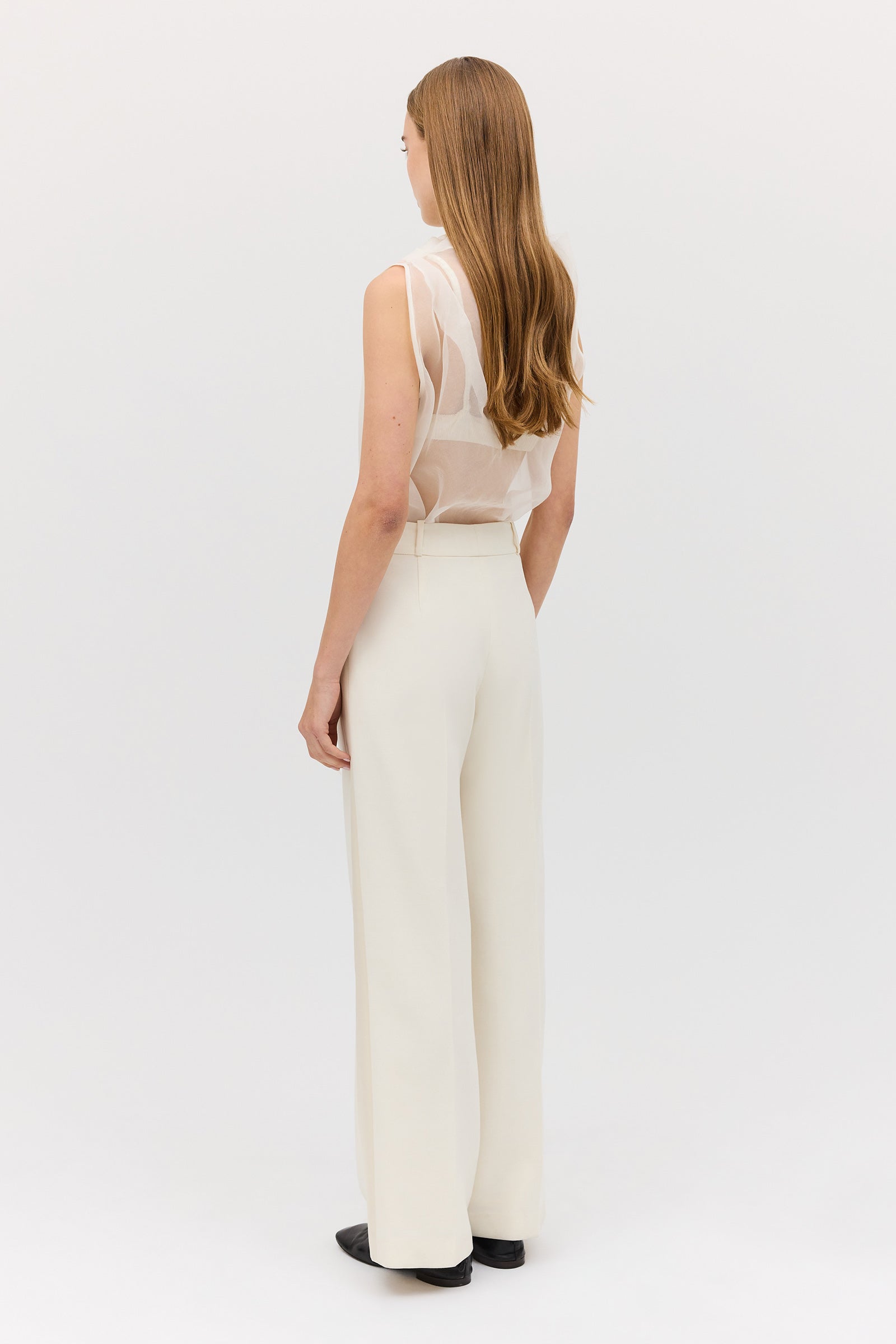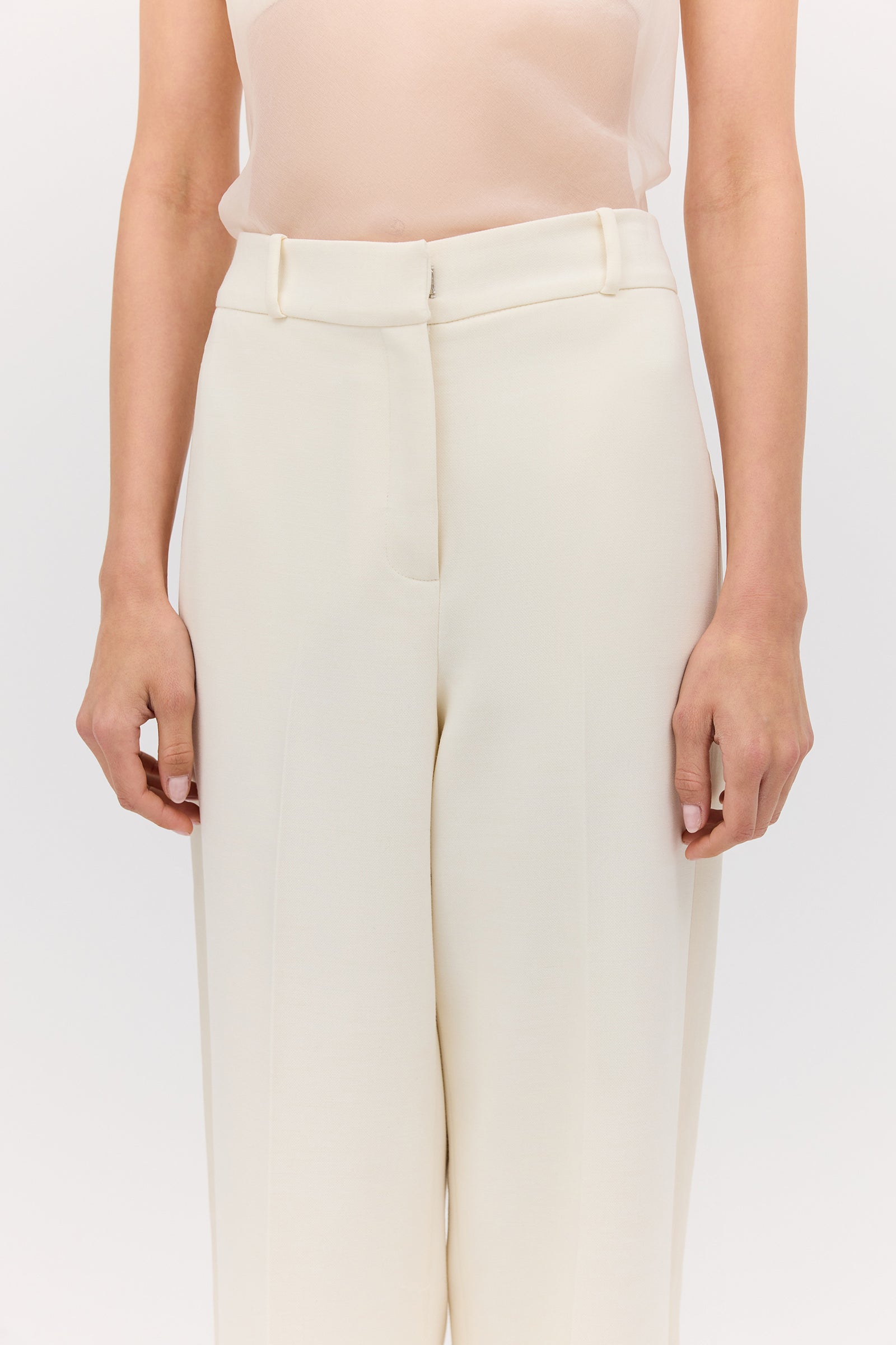 A fresh new season style inspired by the best-selling Kent Pant. Defined by comfort and a modern twist on power suiting, the Cream Wool Harmony Pant is a relaxed fit high-rise trouser, crafted from a lightweight wool blend, allowing breathability and ease of movement.