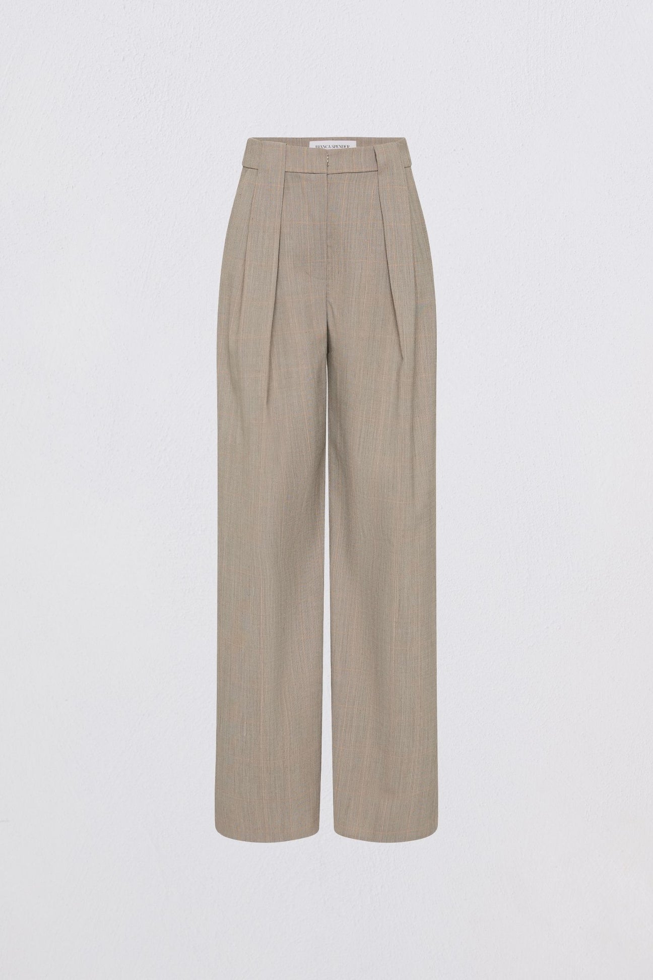 Precision in proportion, ease in movement. The Affinity Pant in Stone Check is designed with a flat front and gently tailored through the hip before falling into a fluid, wide-leg silhouette. A subtle mid-rise waist anchors the relaxed fit, complemented by side pockets and a discreet hook-and-zip closure. Rendered in a softly textured check, the Affinity Pant is a considered approach to everyday structure. Ideal for pairing back with the matching cropped blazer or grounding softer separates.