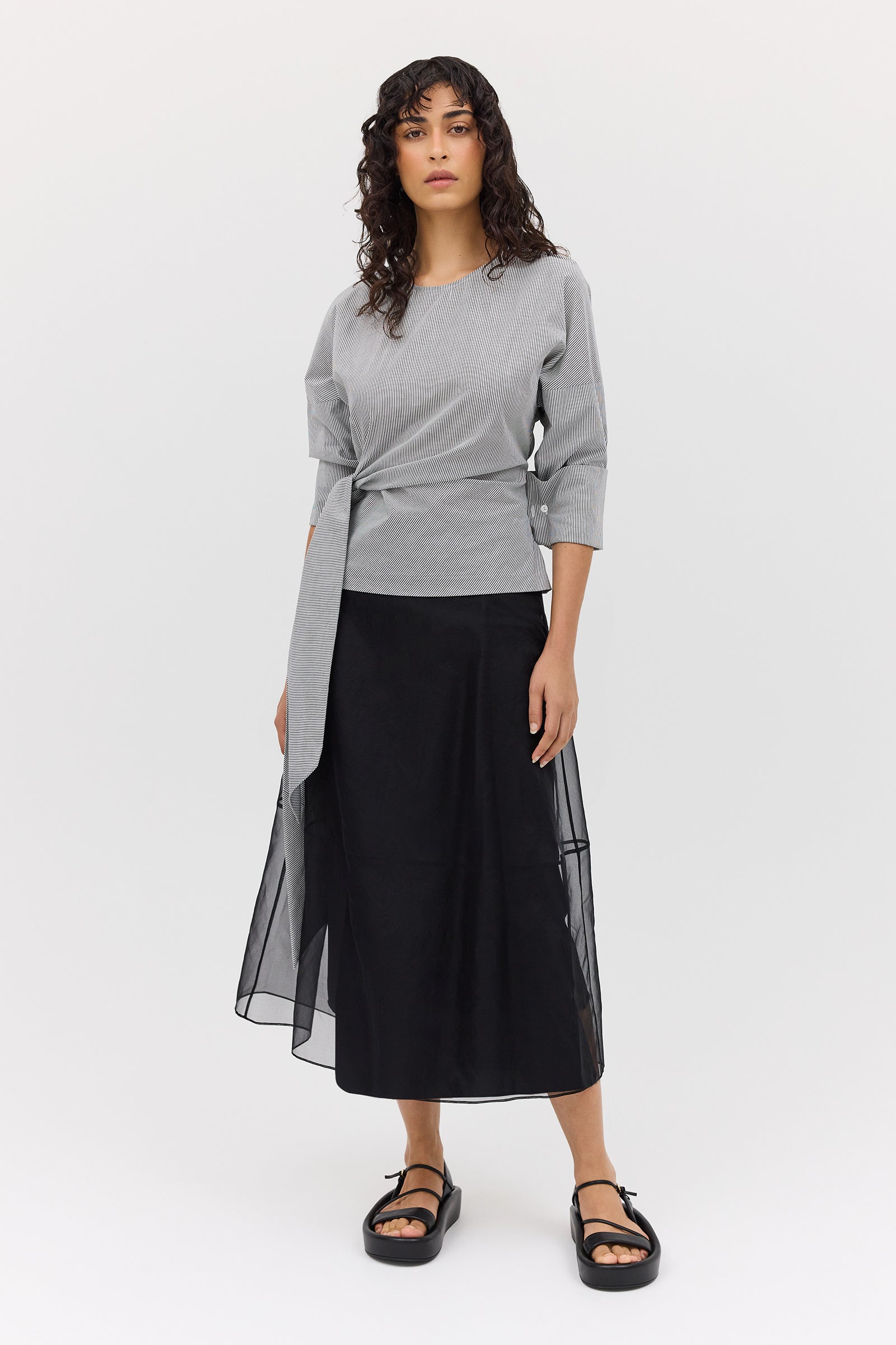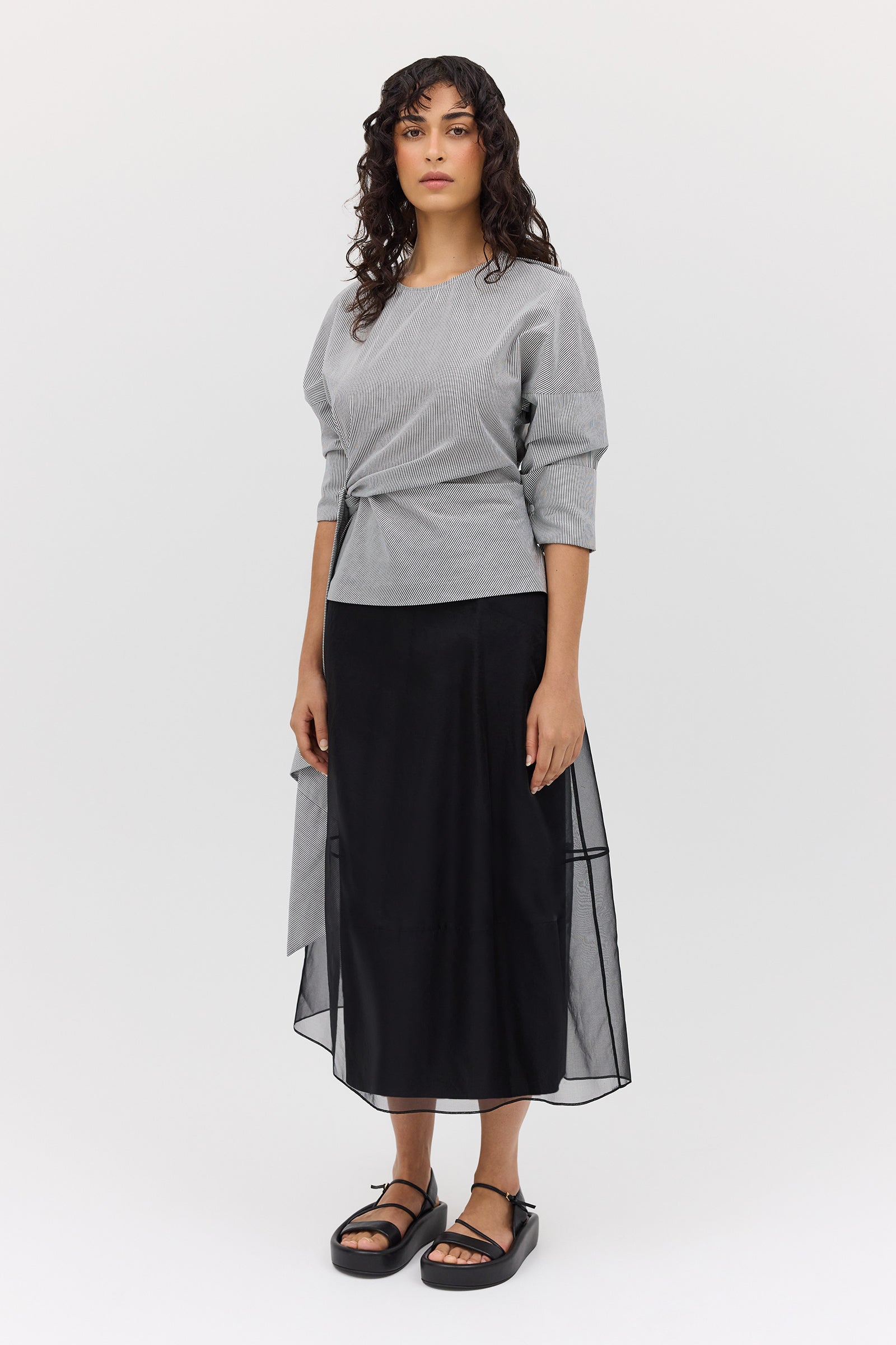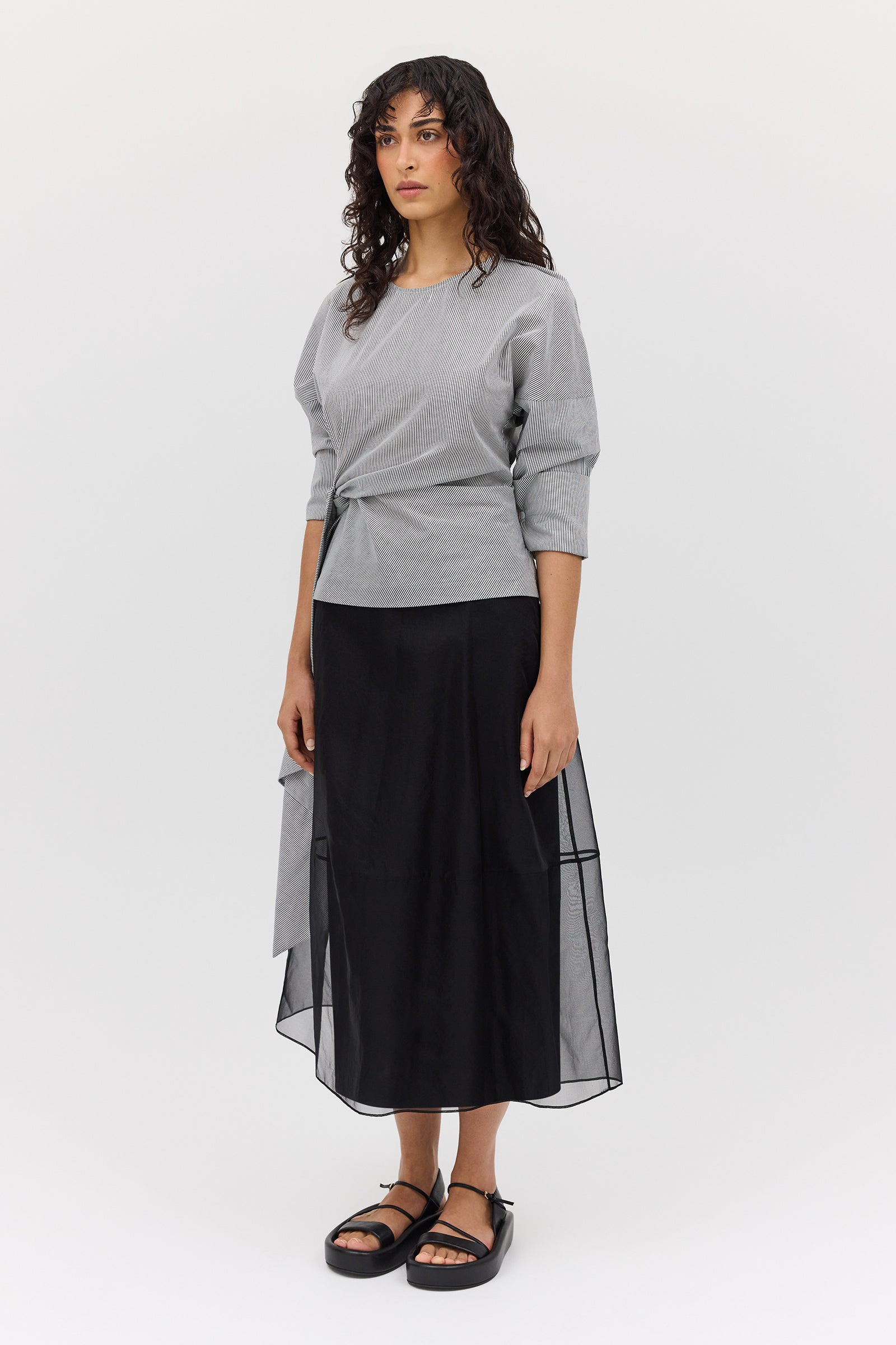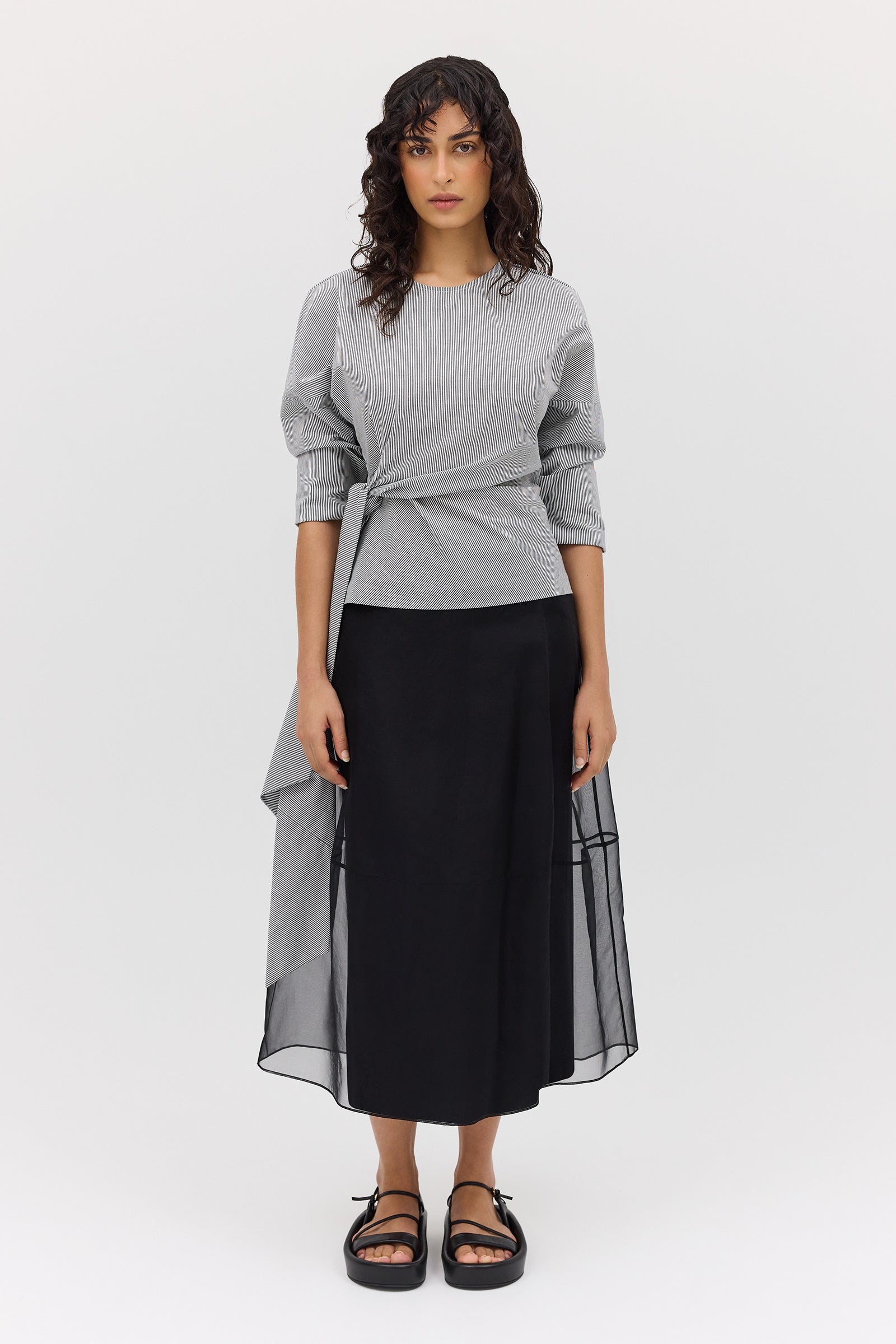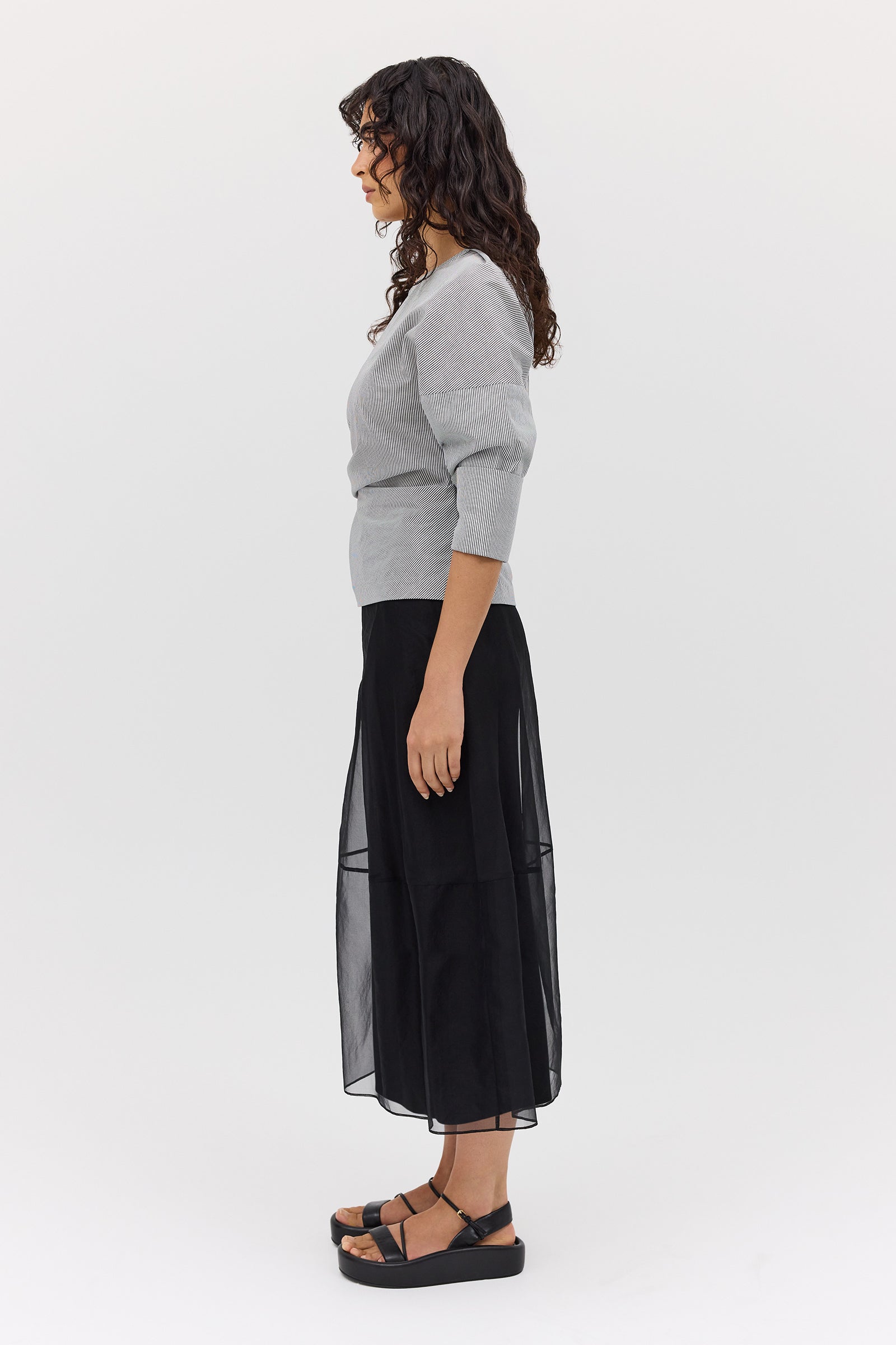 We love the Enthral Top worn with the Black Organza Curvature Skirt for an elevated, chic look that plays on proportion, or alternatively pair with the Black Suiting Affinity Pant for an effortlessly easy, office look.
