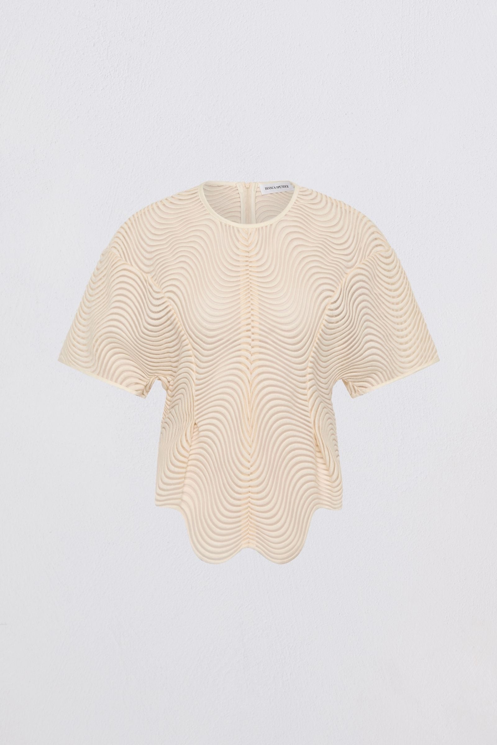 The Ivory Scalloped Lace Shift Top brings Bianca Spender’s signature lace into an effortless, everyday silhouette. Crafted in sheer scalloped lace, the fluid line work creates subtle texture and depth, while the relaxed T-shirt shape keeps the piece grounded and wearable. The softened proportions allow the lace to feel considered rather than overt, balancing delicacy with ease.