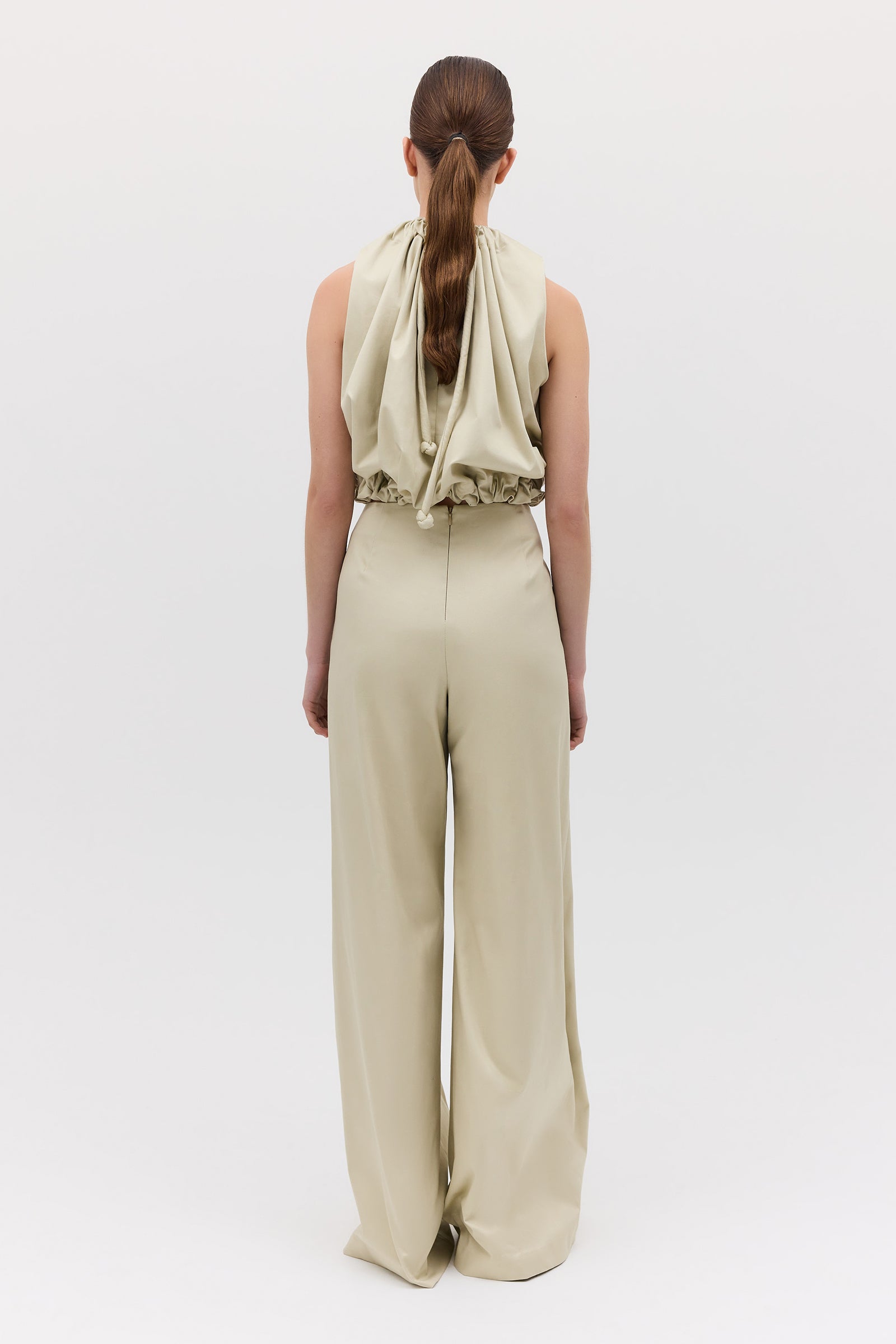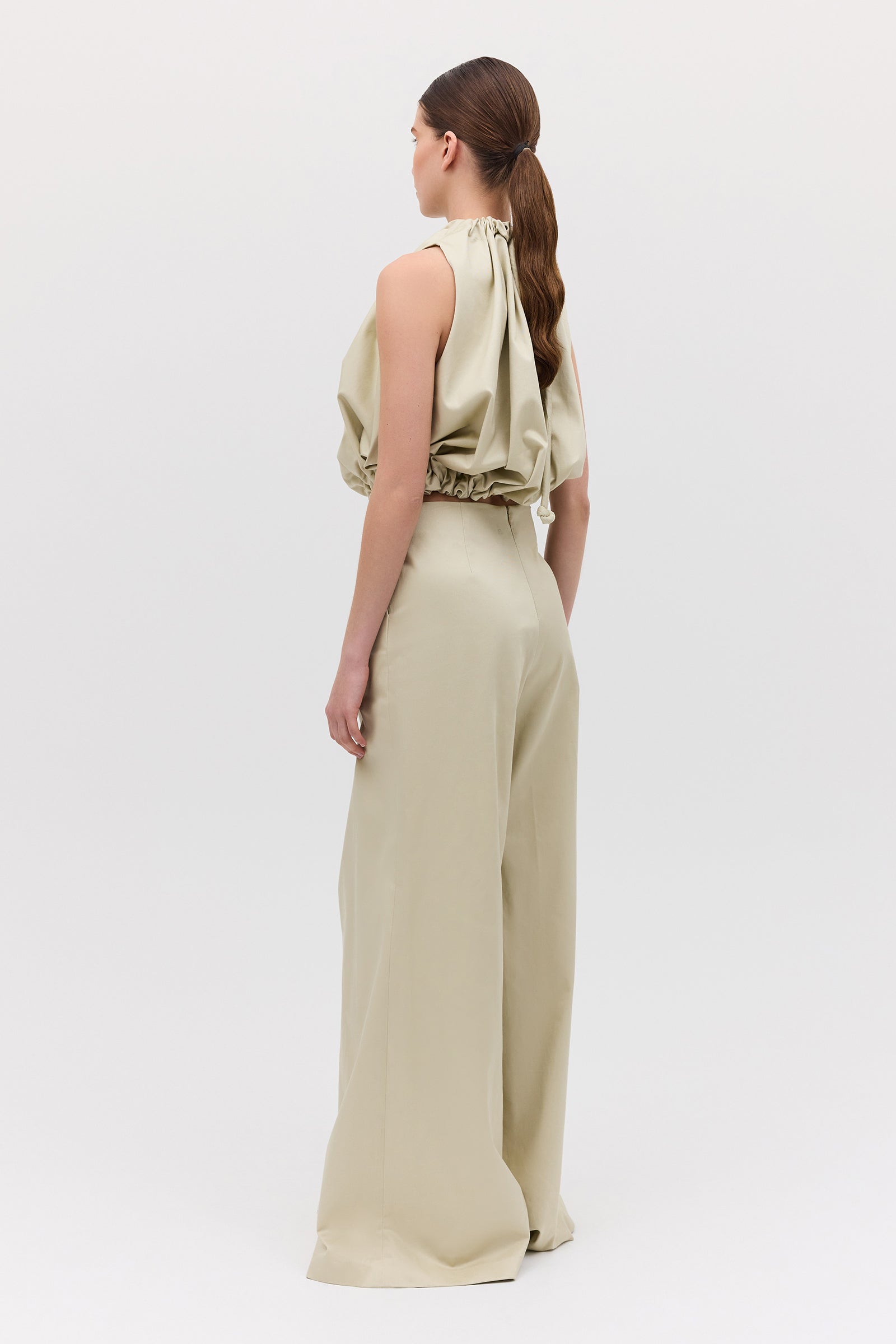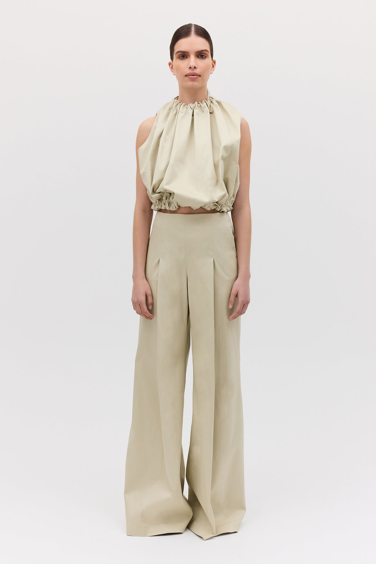 A reimagining of a Bianca Spender signature, the Hepburn Pant returns in crisp stone cotton for a fresh take on modern tailoring. Sharply cut through the waist with deep front tucks and a wide leg, the silhouette moves between strength and softness - embodying effortless sophistication.