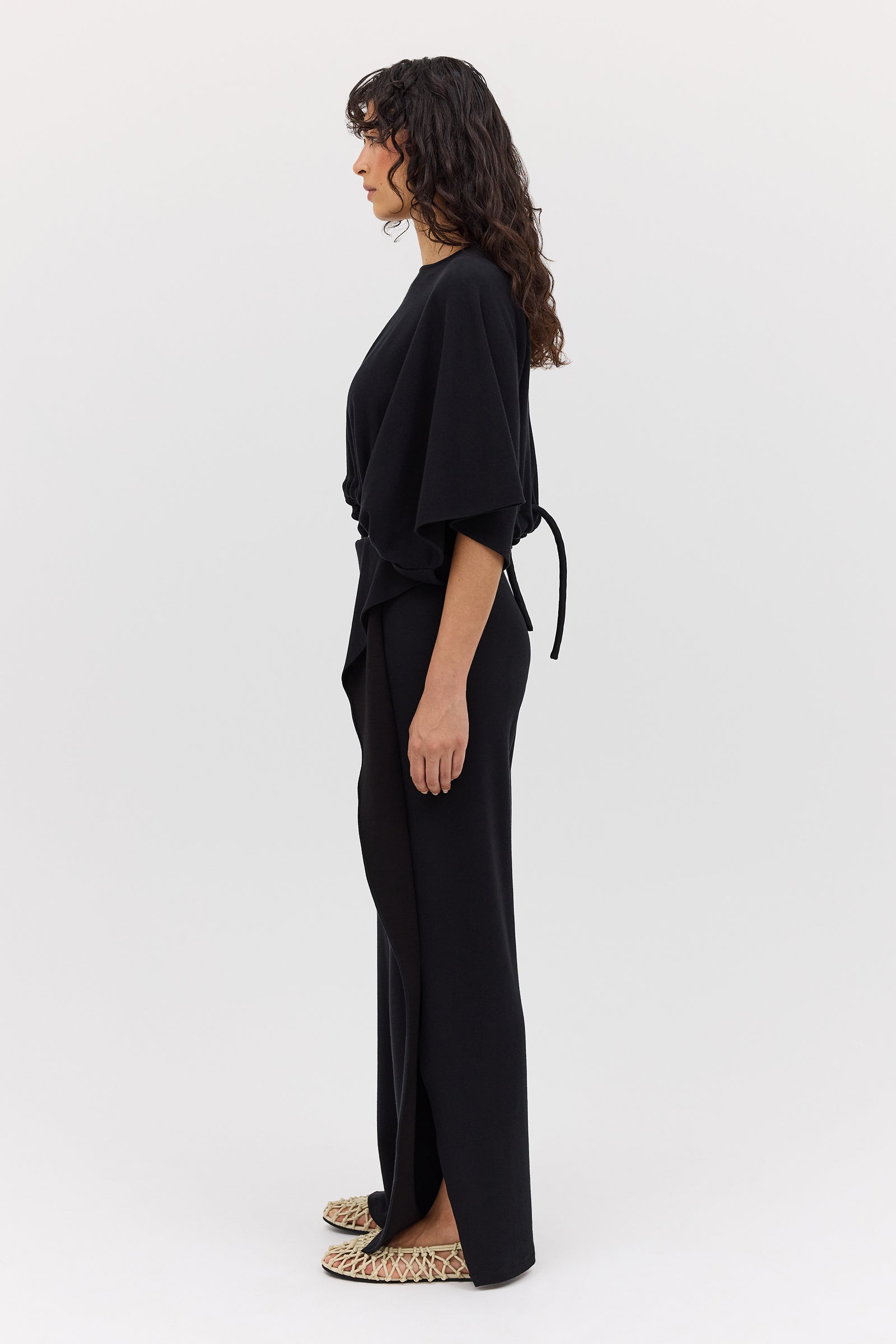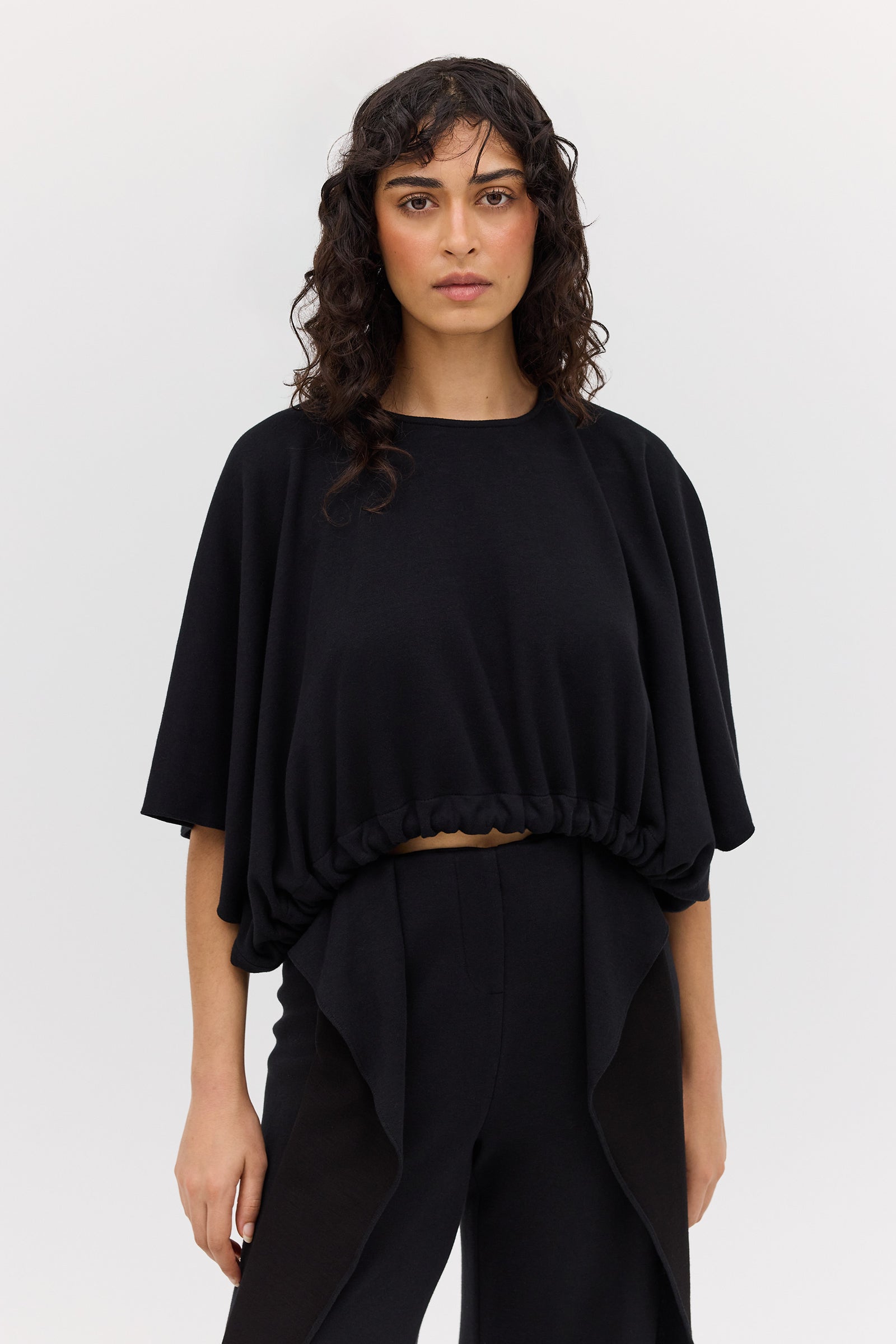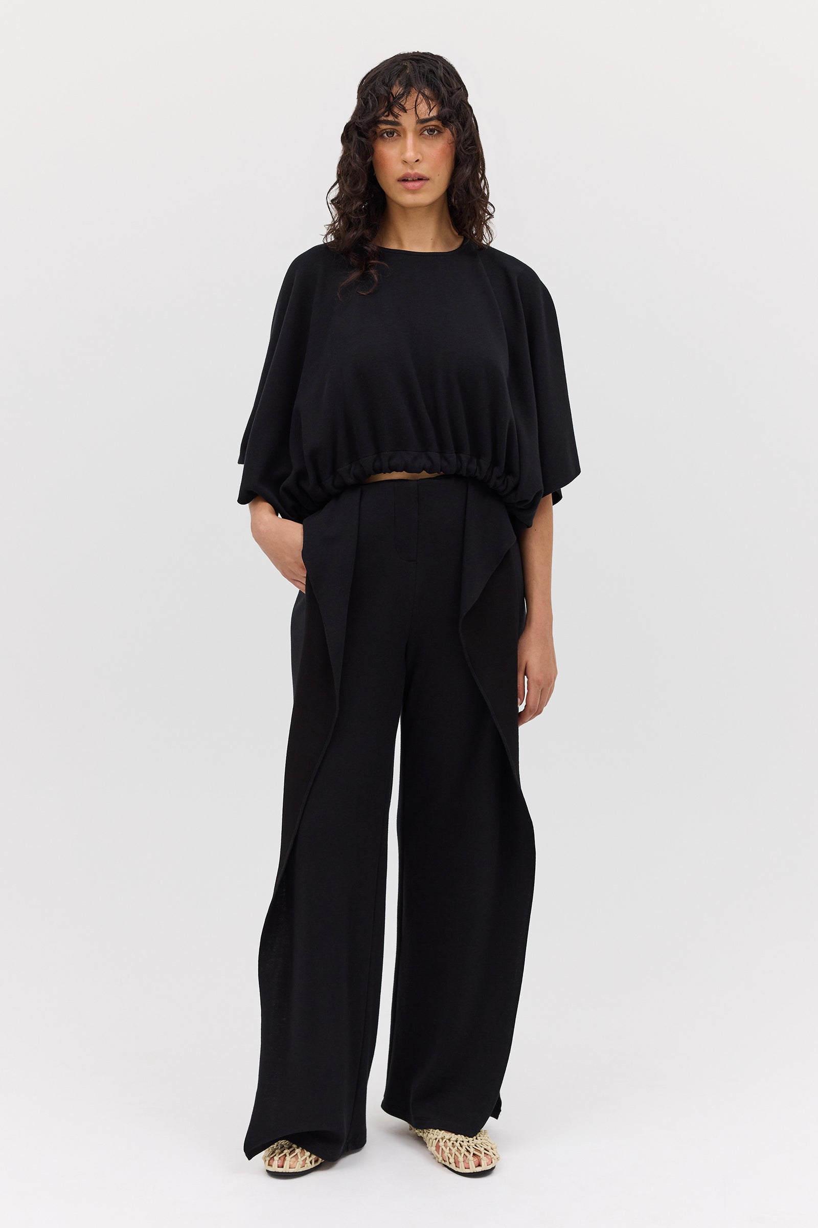 Introducing the Envelop Top, an elegant expression of drape and form. This Bianca Spender design is a fresh take on the classic t-shirt, featuring a straight neckline and dropped sleeves. The adjustable drawstring waist allows the garment to be drawn in, offering a flattering silhouette and giving the design versatility for longevity within your wardrobe.