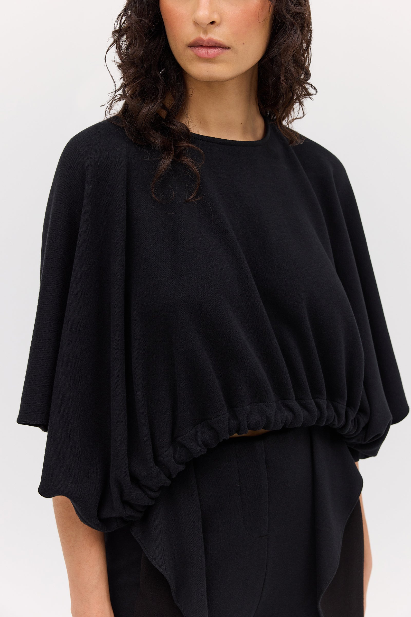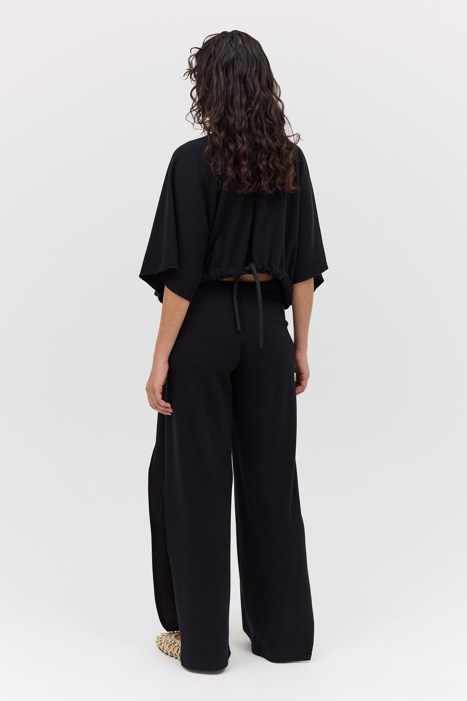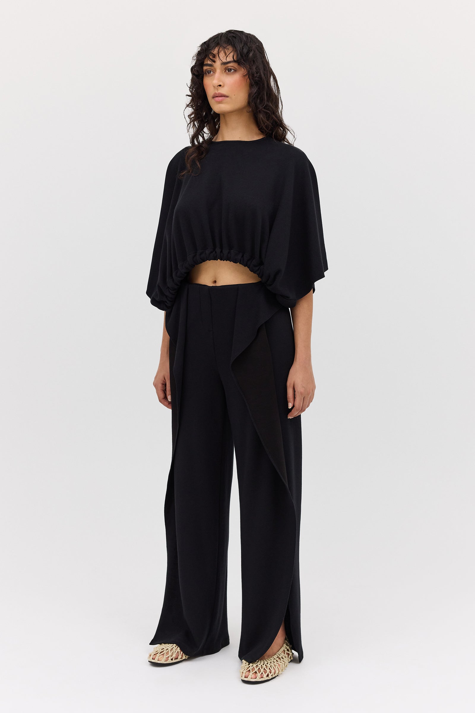 Introducing the Envelop Top, an elegant expression of drape and form. This Bianca Spender design is a fresh take on the classic t-shirt, featuring a straight neckline and dropped sleeves. The adjustable drawstring waist allows the garment to be drawn in, offering a flattering silhouette and giving the design versatility for longevity within your wardrobe.