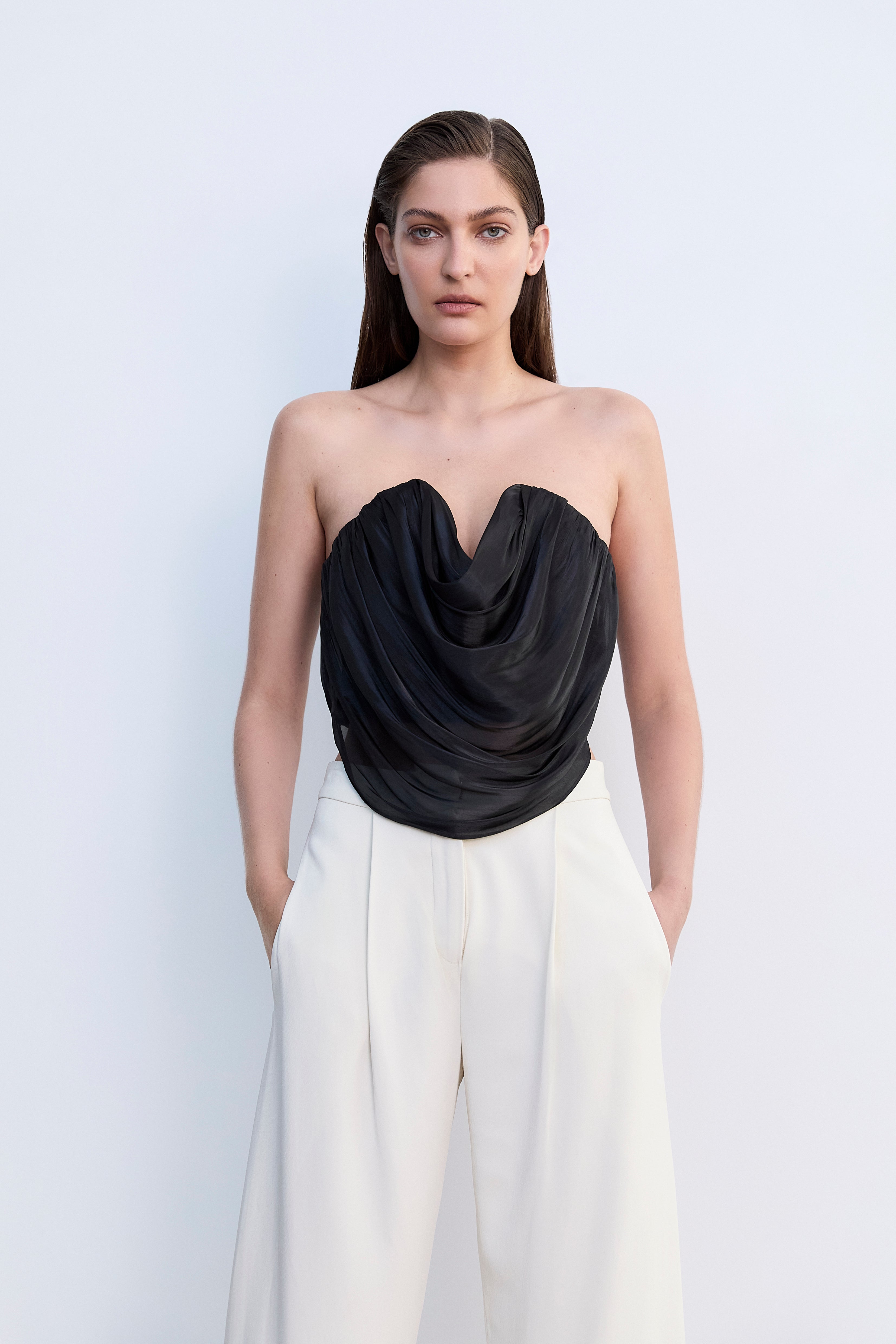 BLACK LIQUID ORGANZA TIDAL BUSTIER TOP