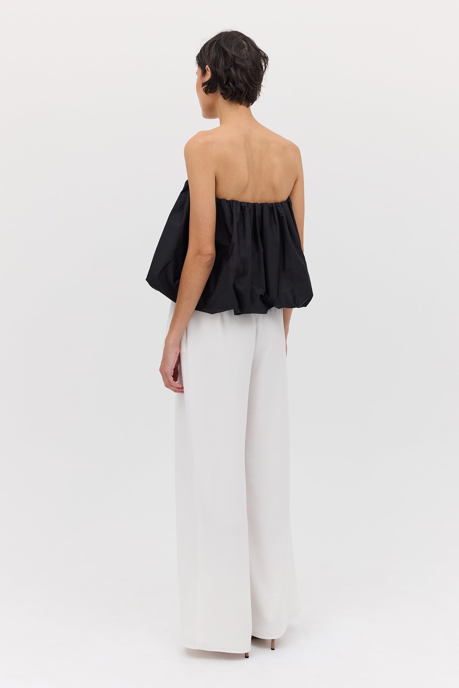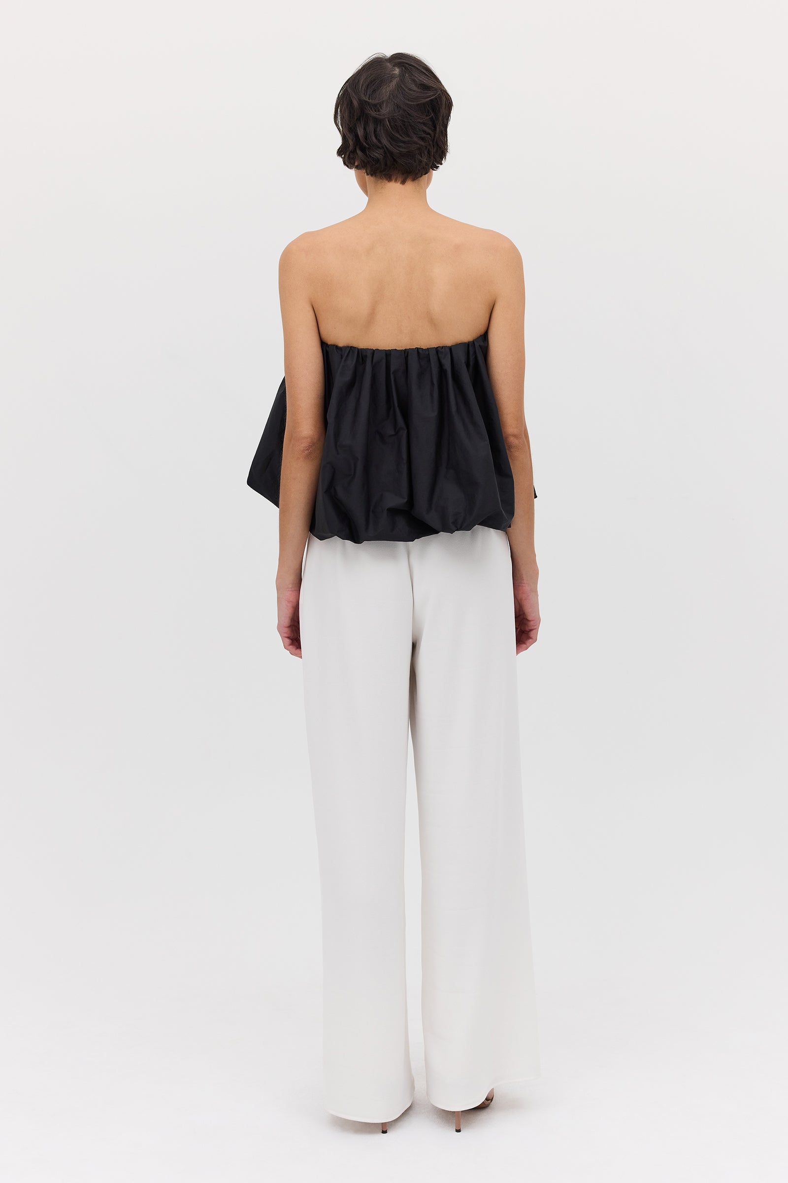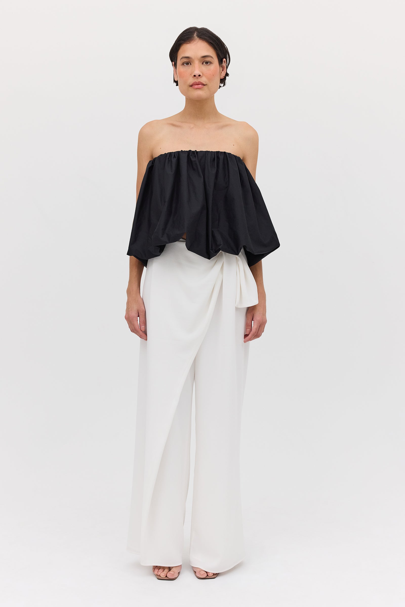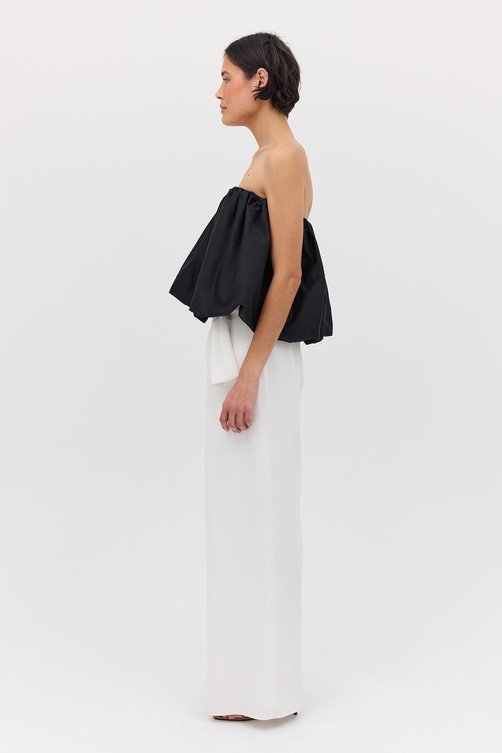 We love the Hazel Top worn as a strapless bandeau, off-the-shoulder, or alternatively as an asymmetrical one shouldered style. This style may also be worn as a mini skirt. For a chic yet fun evening look, pair the Hazel Top with relaxed leg pants and heels.