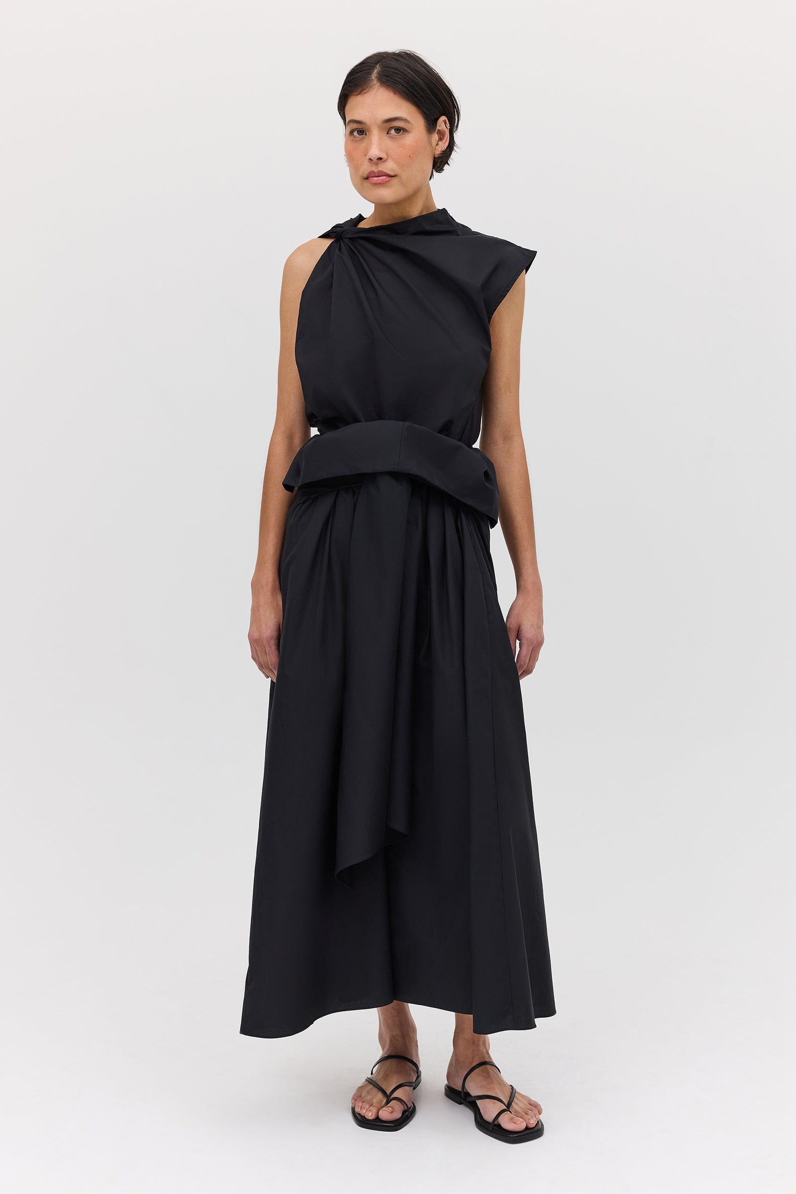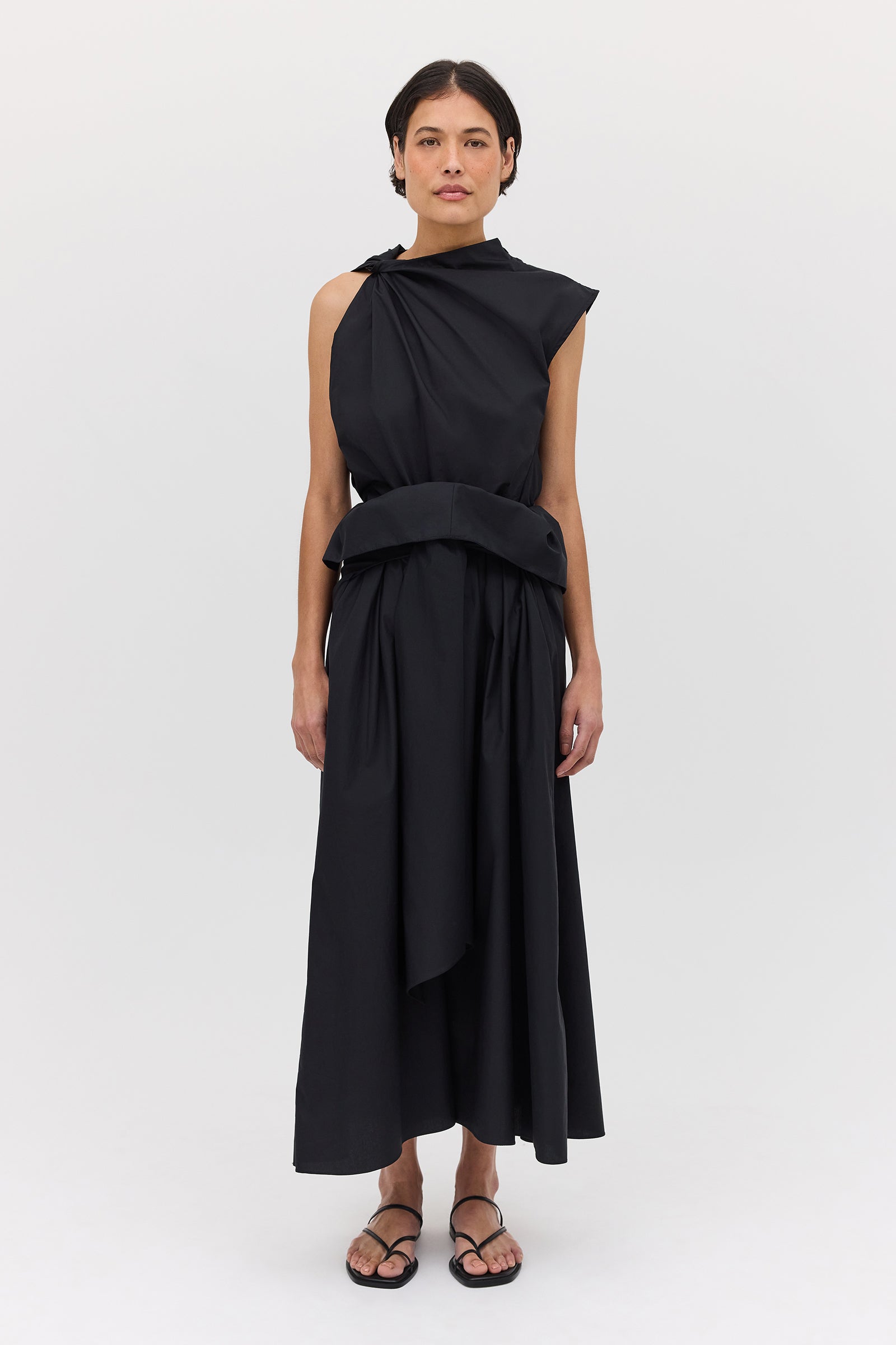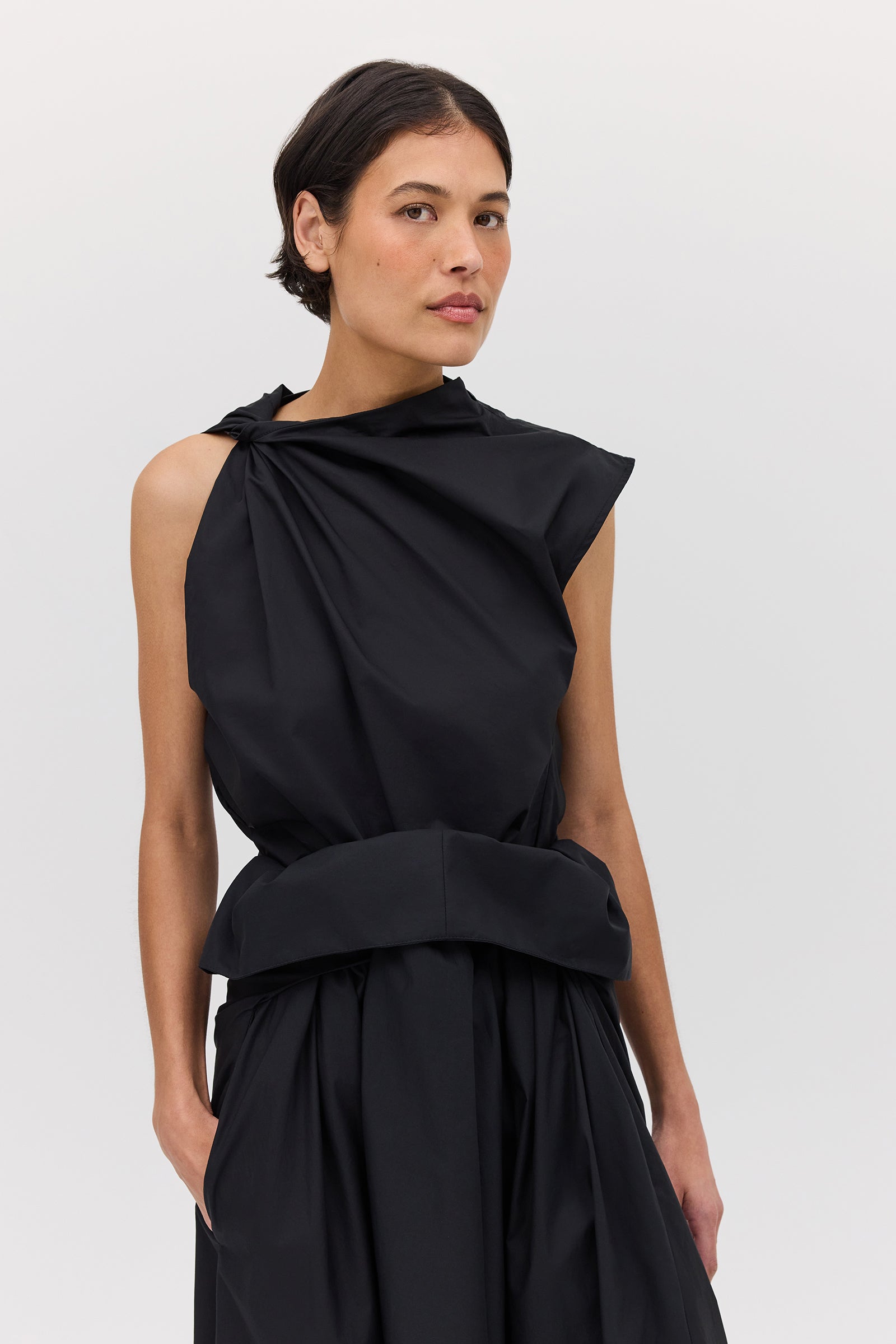 The Black Cotton Yang Top is a classic with a twist, quite literally. Crafted from expertly draped cotton, with an asymmetrical boat neckline that features signature Bianca Spender twist detailing at the shoulder, allowing the fabric to follow the form of the body.