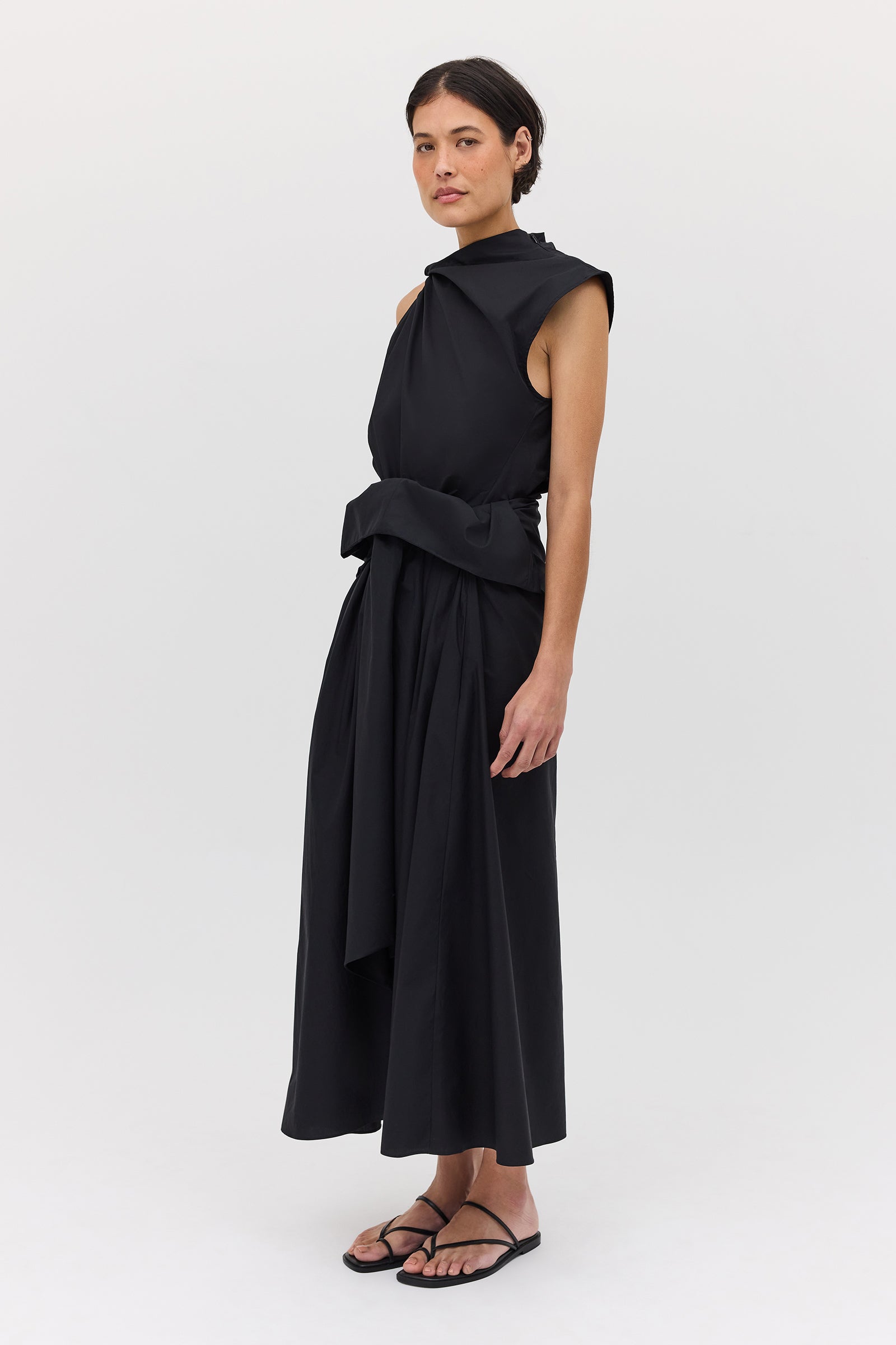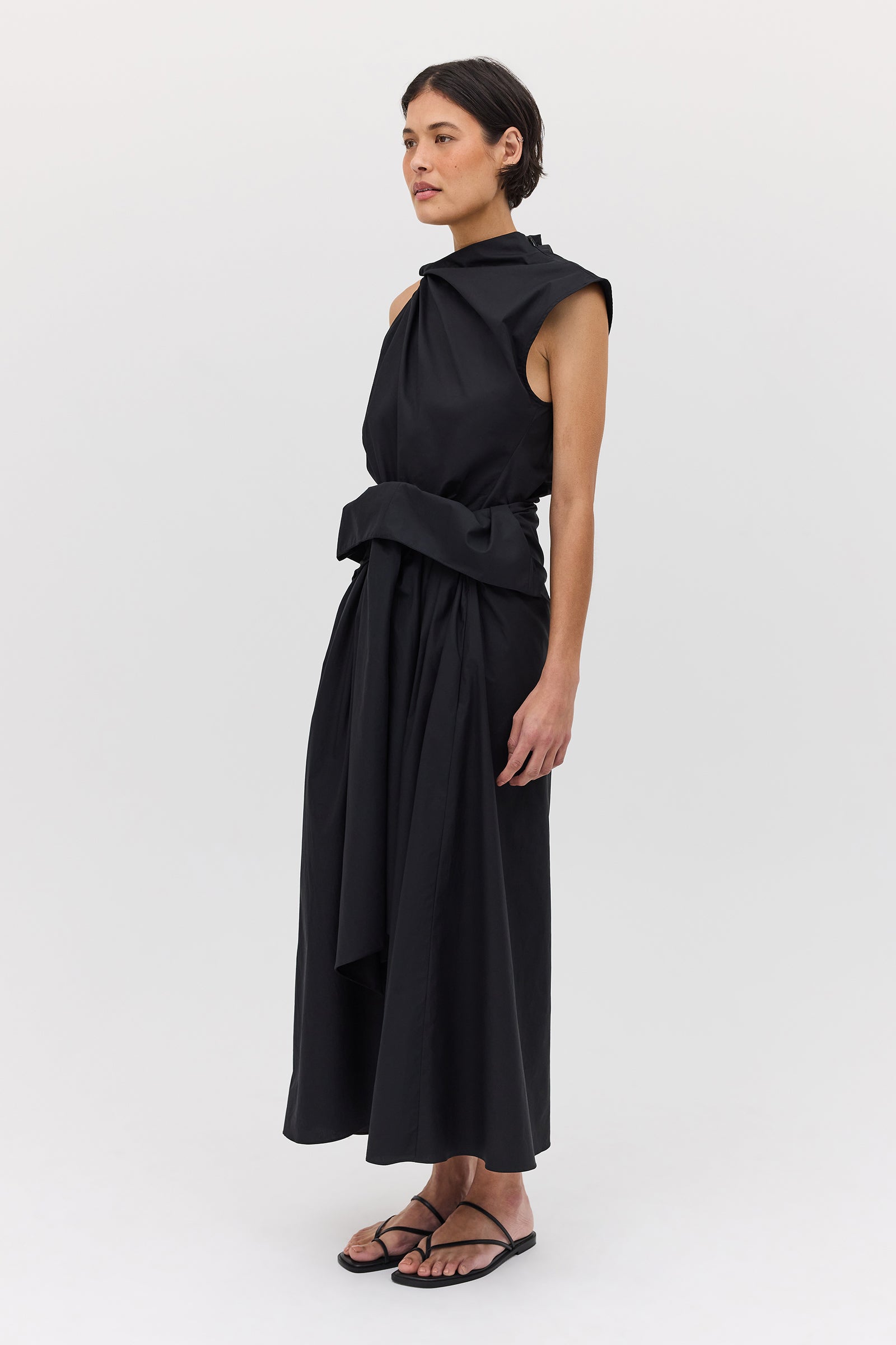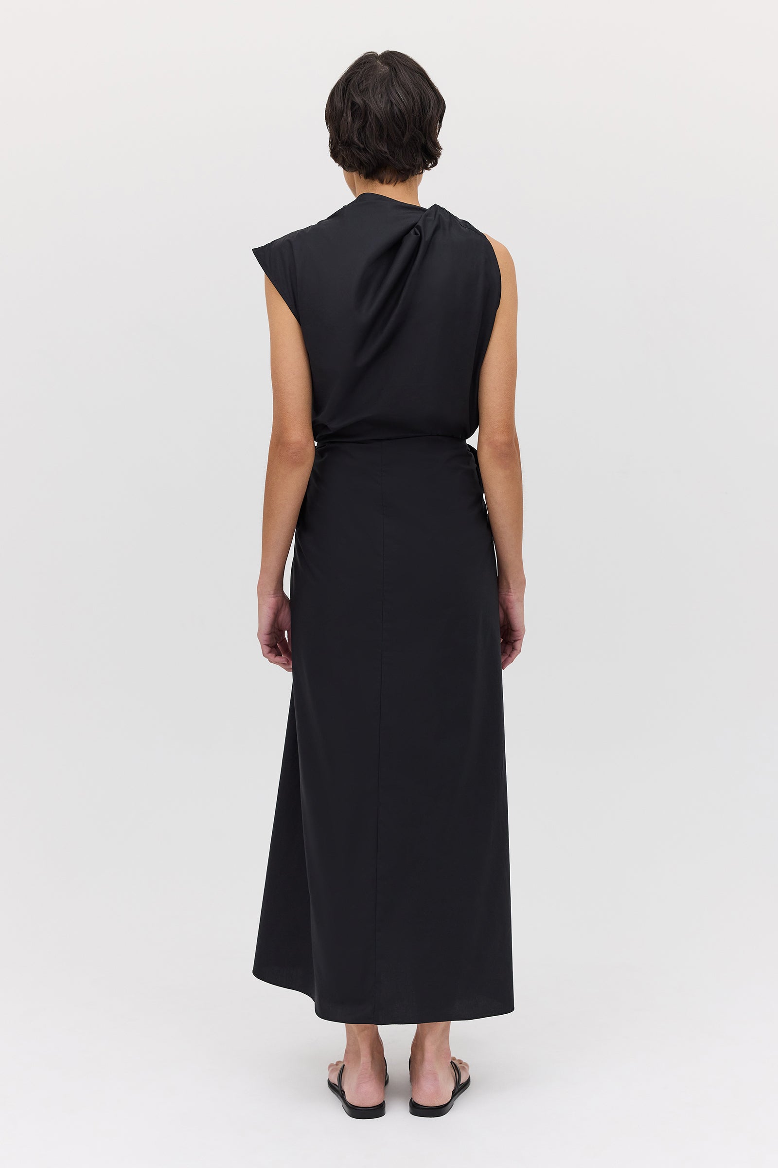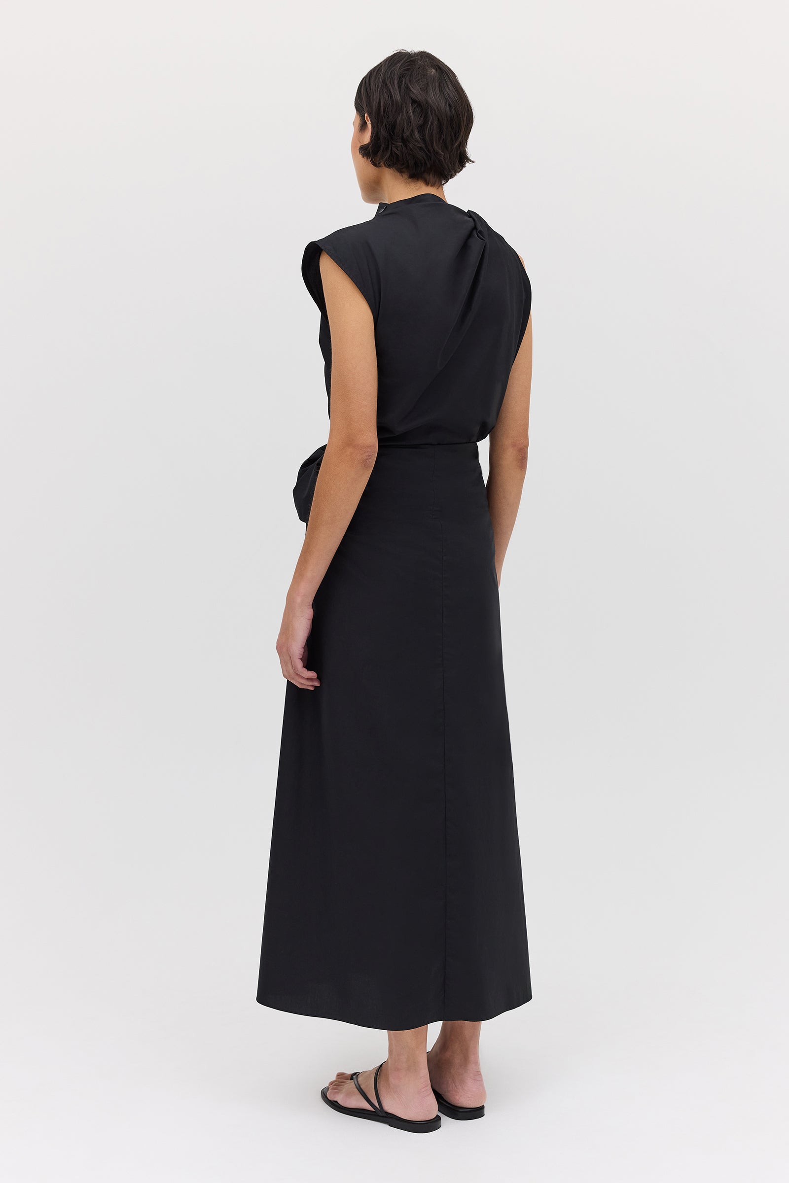 The Black Cotton Yang Top is a classic with a twist, quite literally. Crafted from expertly draped cotton, with an asymmetrical boat neckline that features signature Bianca Spender twist detailing at the shoulder, allowing the fabric to follow the form of the body.