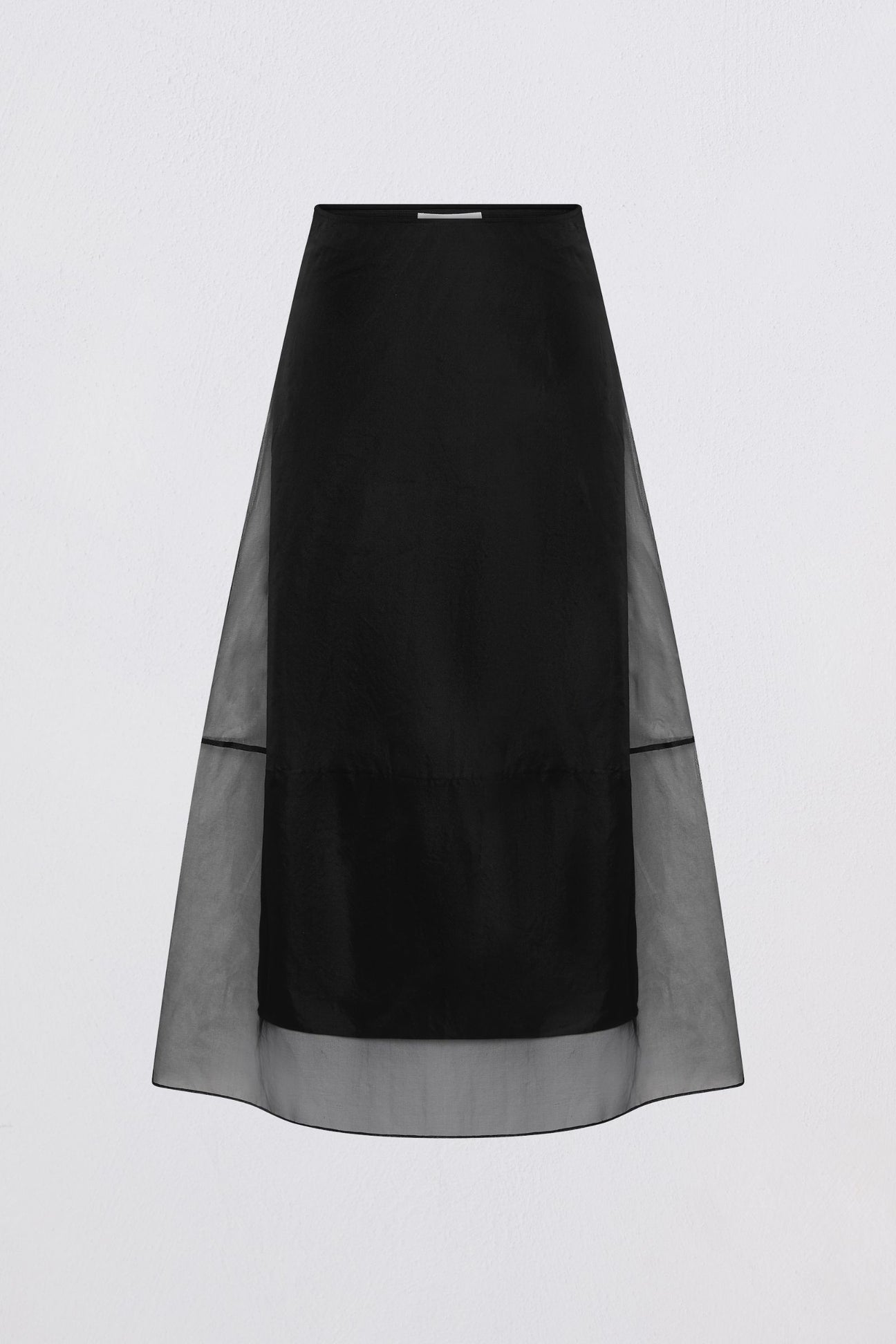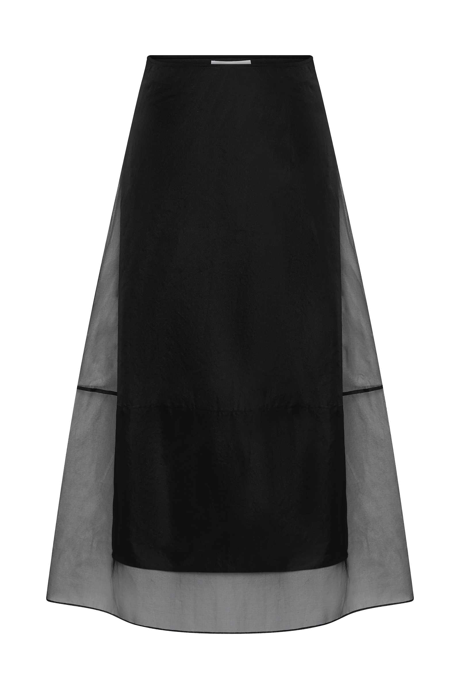 The Curvature skirt has been reimagined this season for a more occasional look. This impressive and effortless cocoon skirt is fitted at the waist and cut to the ankle and features a lined, silk organza skirt from the waist to mid-calf. Style with our Black Organza Cezanne Top for an evening look, without the restriction of a full gown. We love this skirt paired with the Black Wool Jersey Decode Top and your favourite heels for a sculptural inspired silhouette.