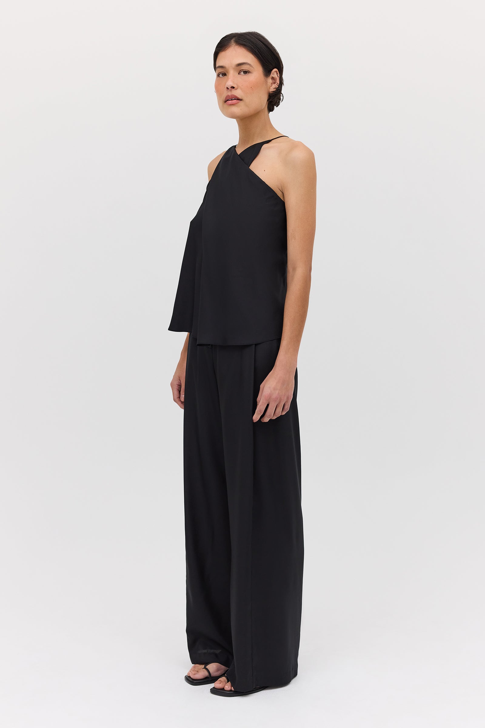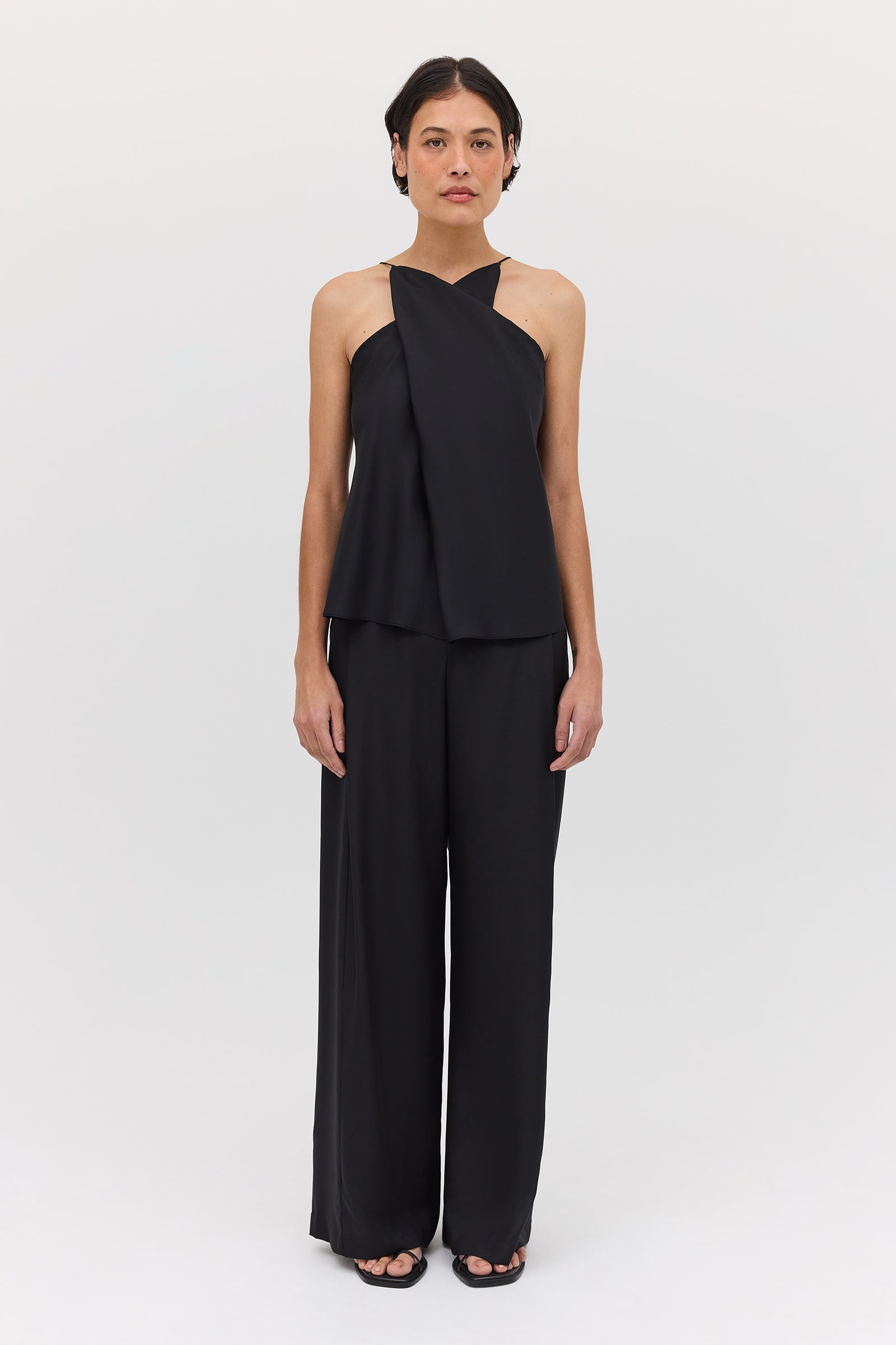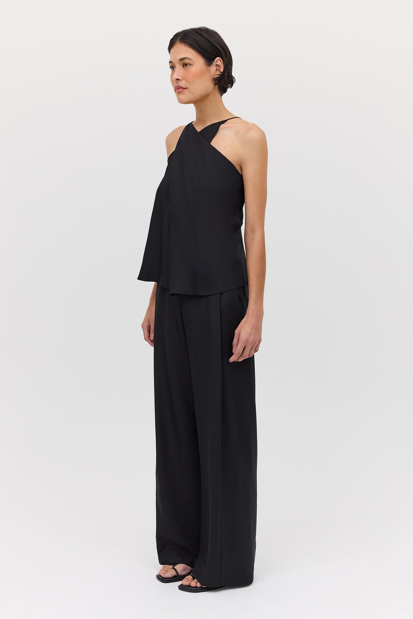 The Looking Glass top features delicate twists and folds of our stunning black silk with a cross-over neckline, creating a universally flattering figure that instantly adds glamour to any outfit. Wear it tucked into Black Silk Ray Pant or Cotton Nostalgia Skirt for a stunning outfit that can be dressed up and down.