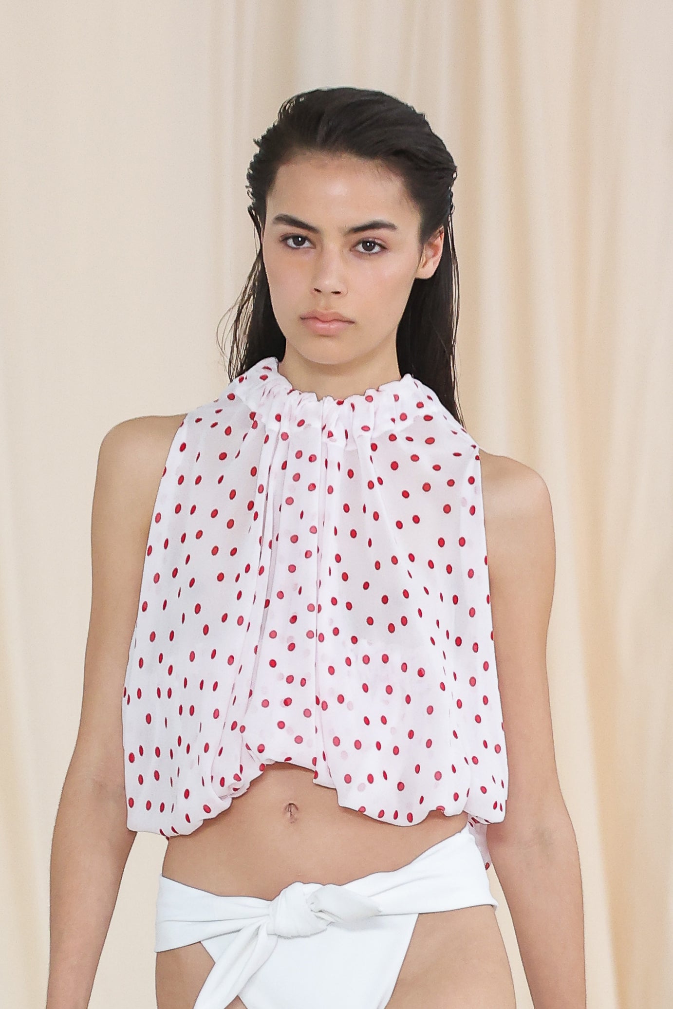 Unveiled on the AFW runway, the cult-favourite Emerge Top returns in a bold new red polka dot print.
