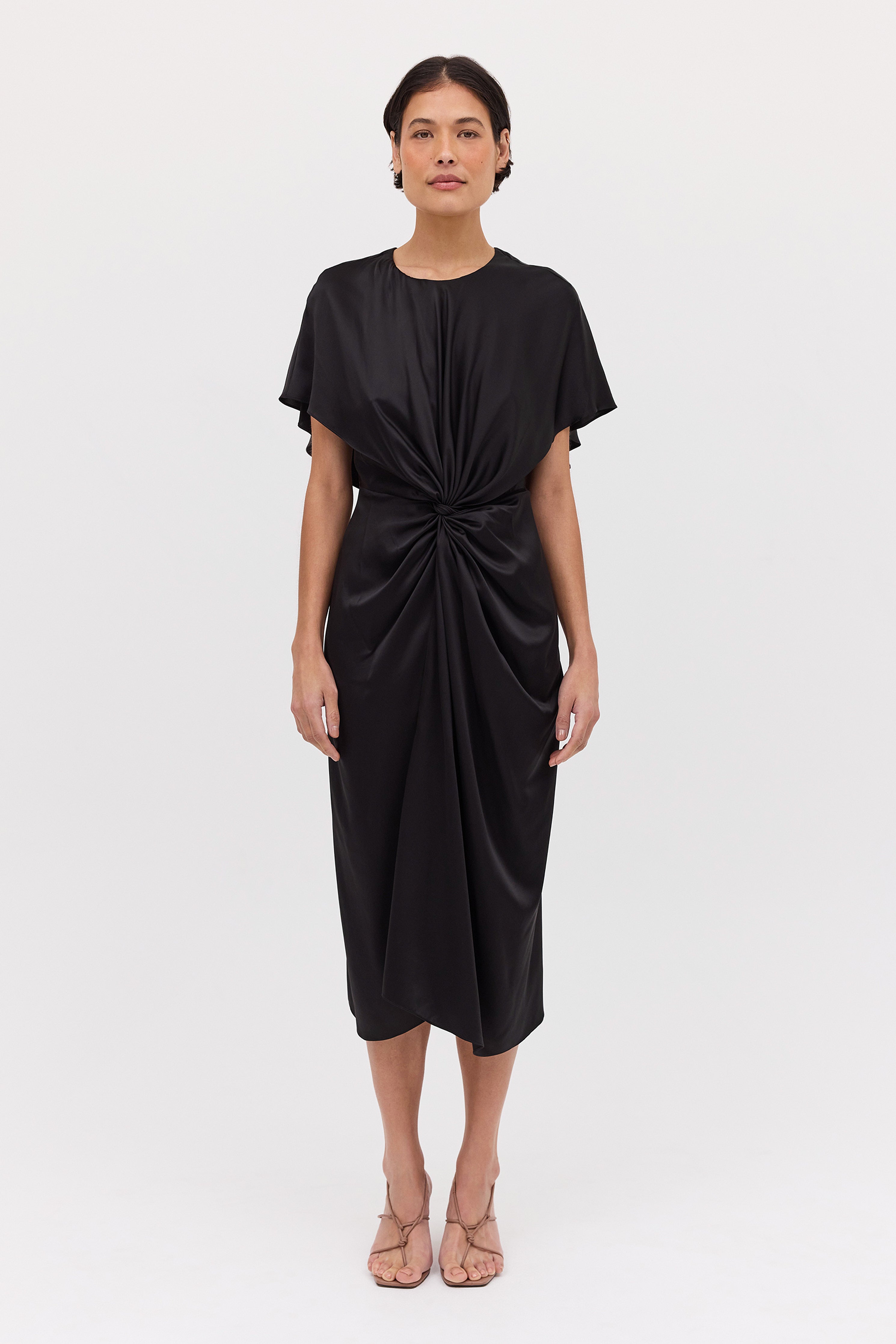 NAVY SATIN CREPE MORI MIDI DRESS
