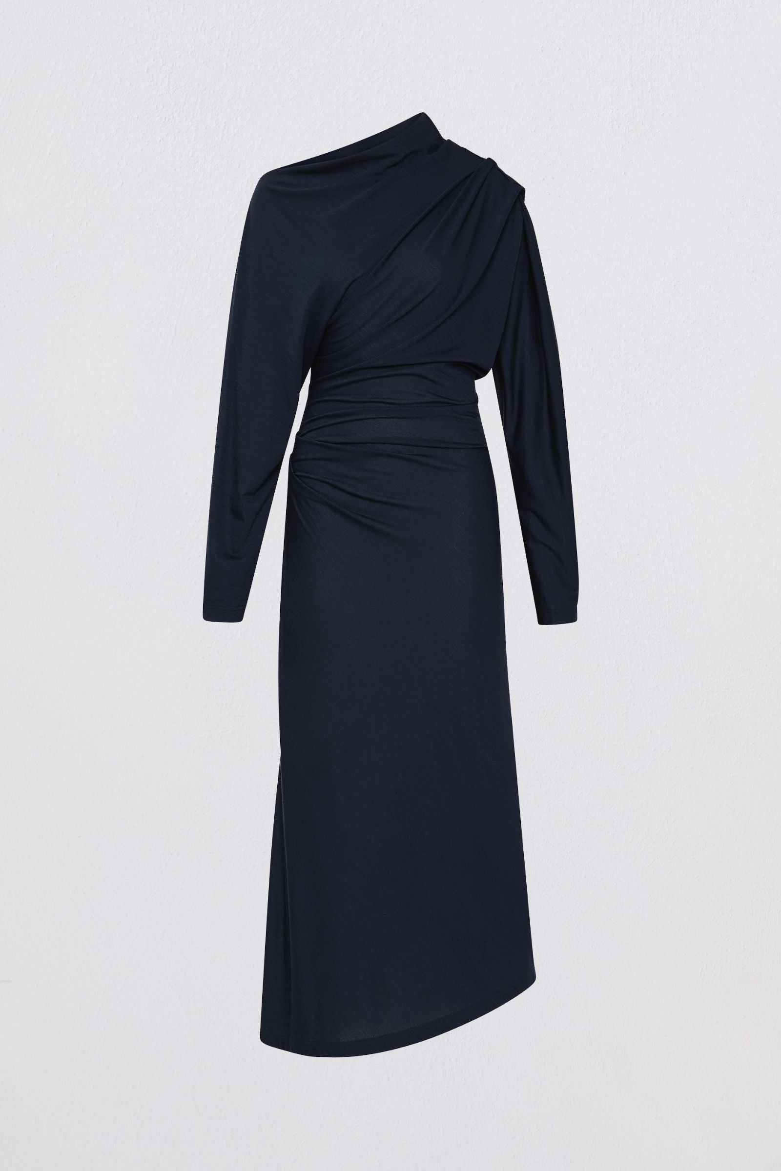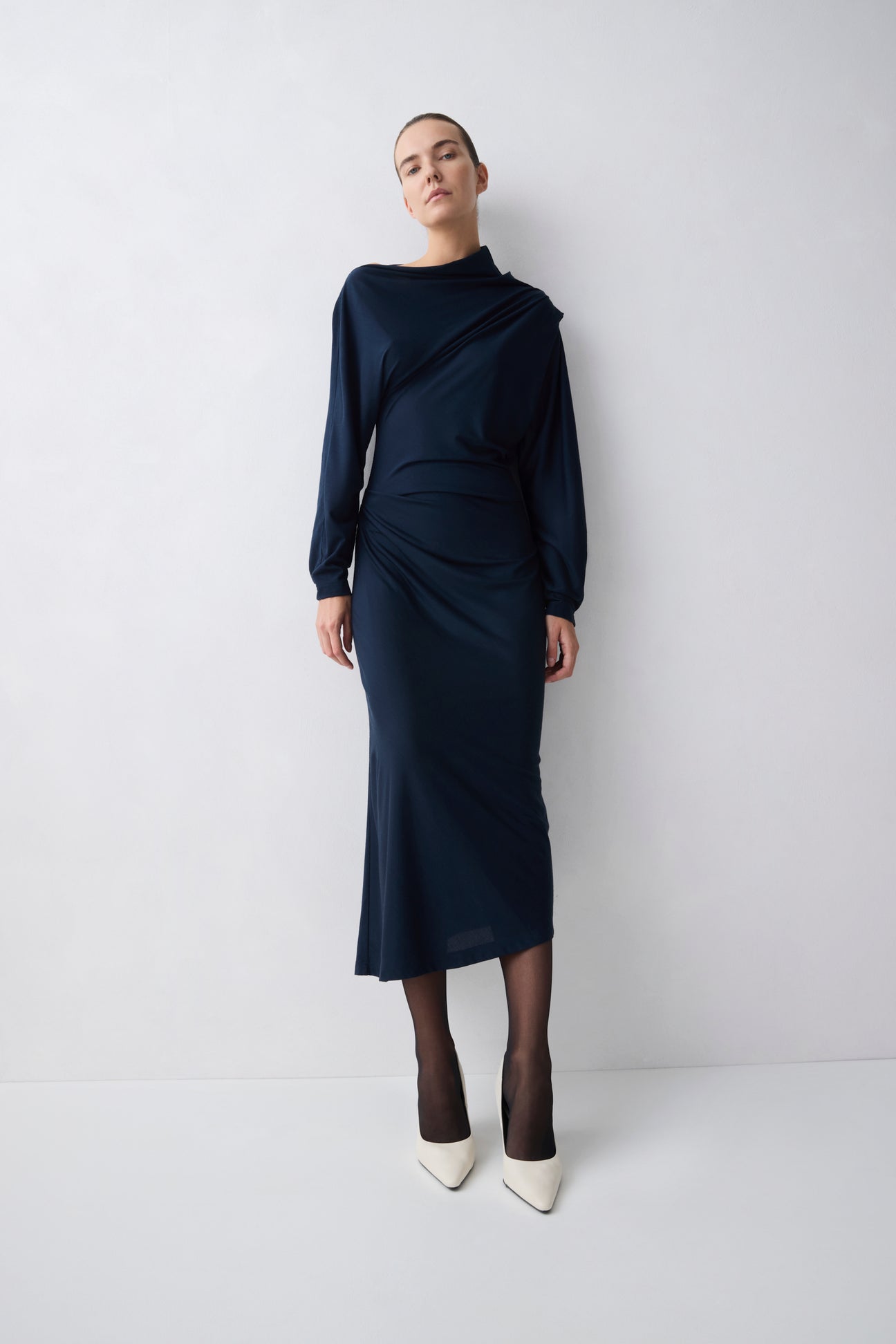 NAVY MERINO DECODE LONG SLEEVE DRESS