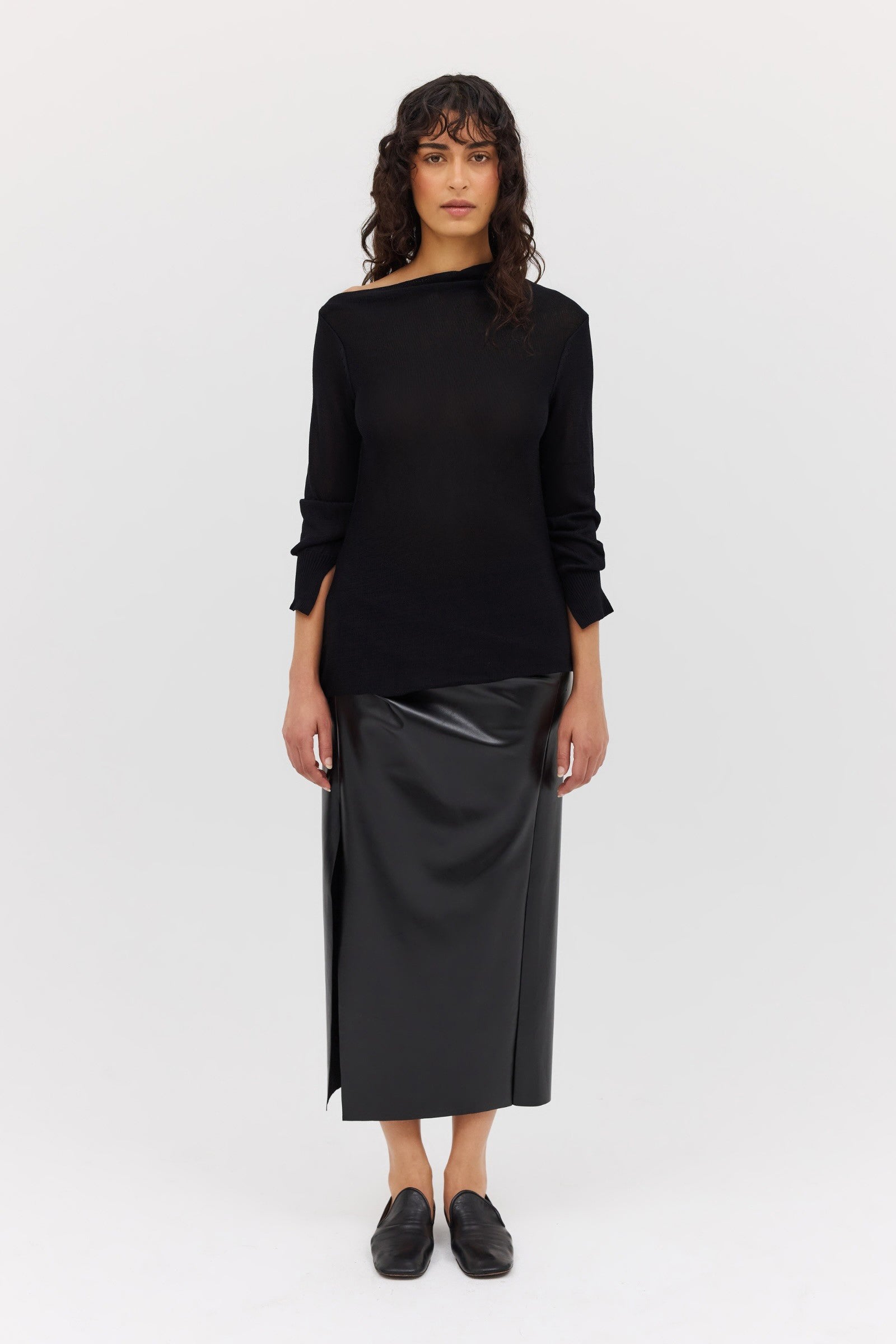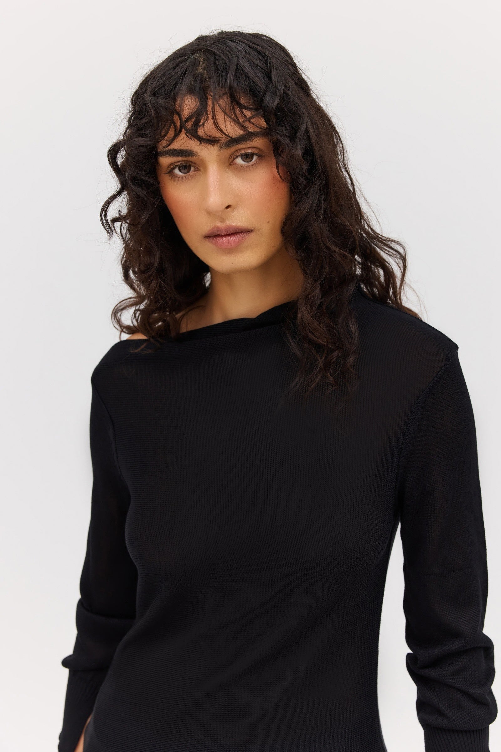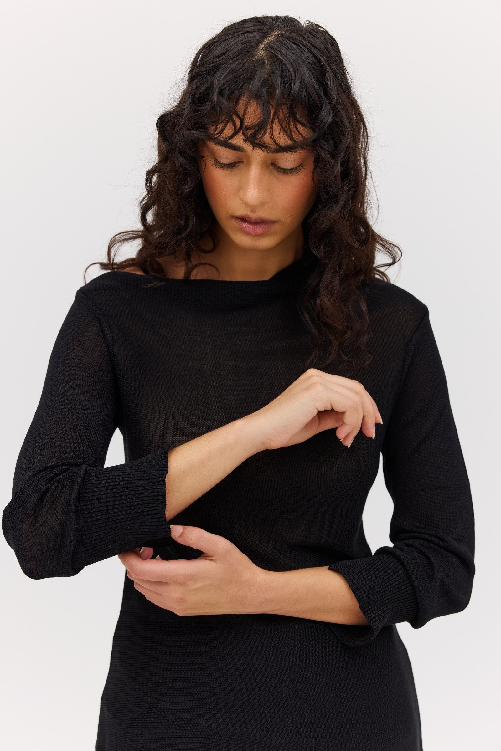 A masterclass in elevating the everyday. Introducing the Black Bernice Knit. Carefully handcrafted from a slinky, fine knit in Brazil. A relaxed-fit, long sleeve knit that will surpass the seasons and become a forever piece in your wardrobe. The Bernice Knit pairs easily with a tailored trouser, silk skirt or your favourite denim.