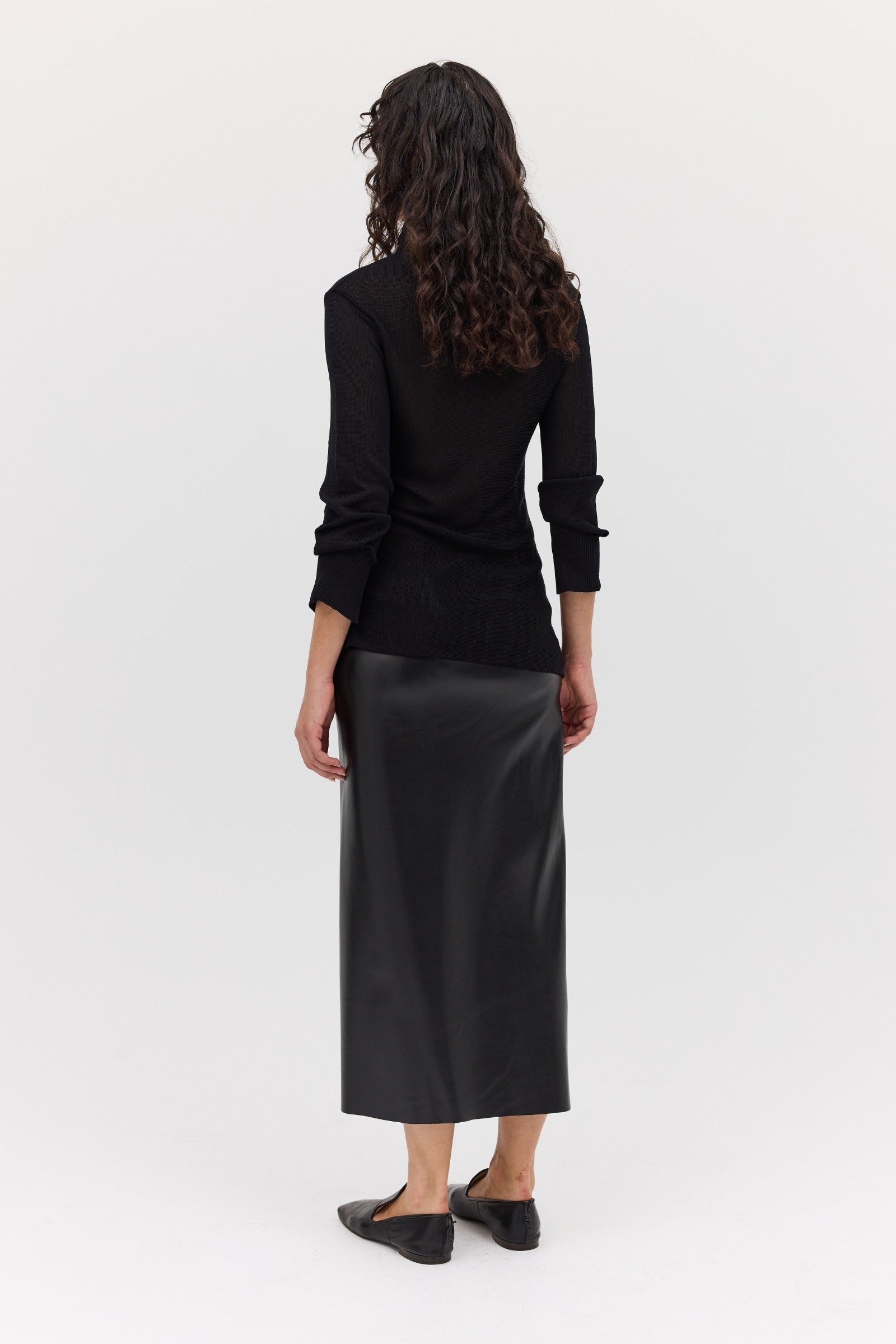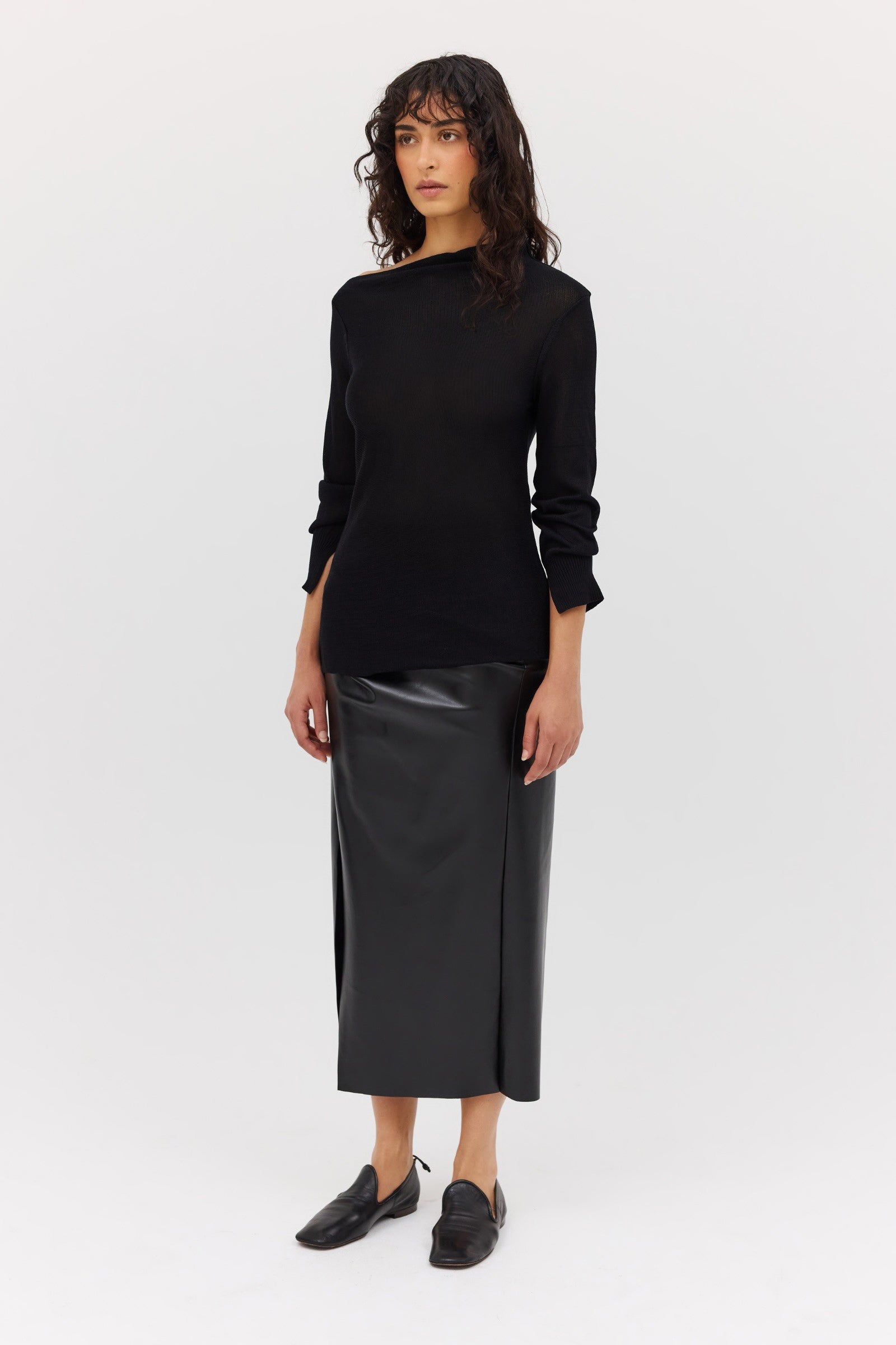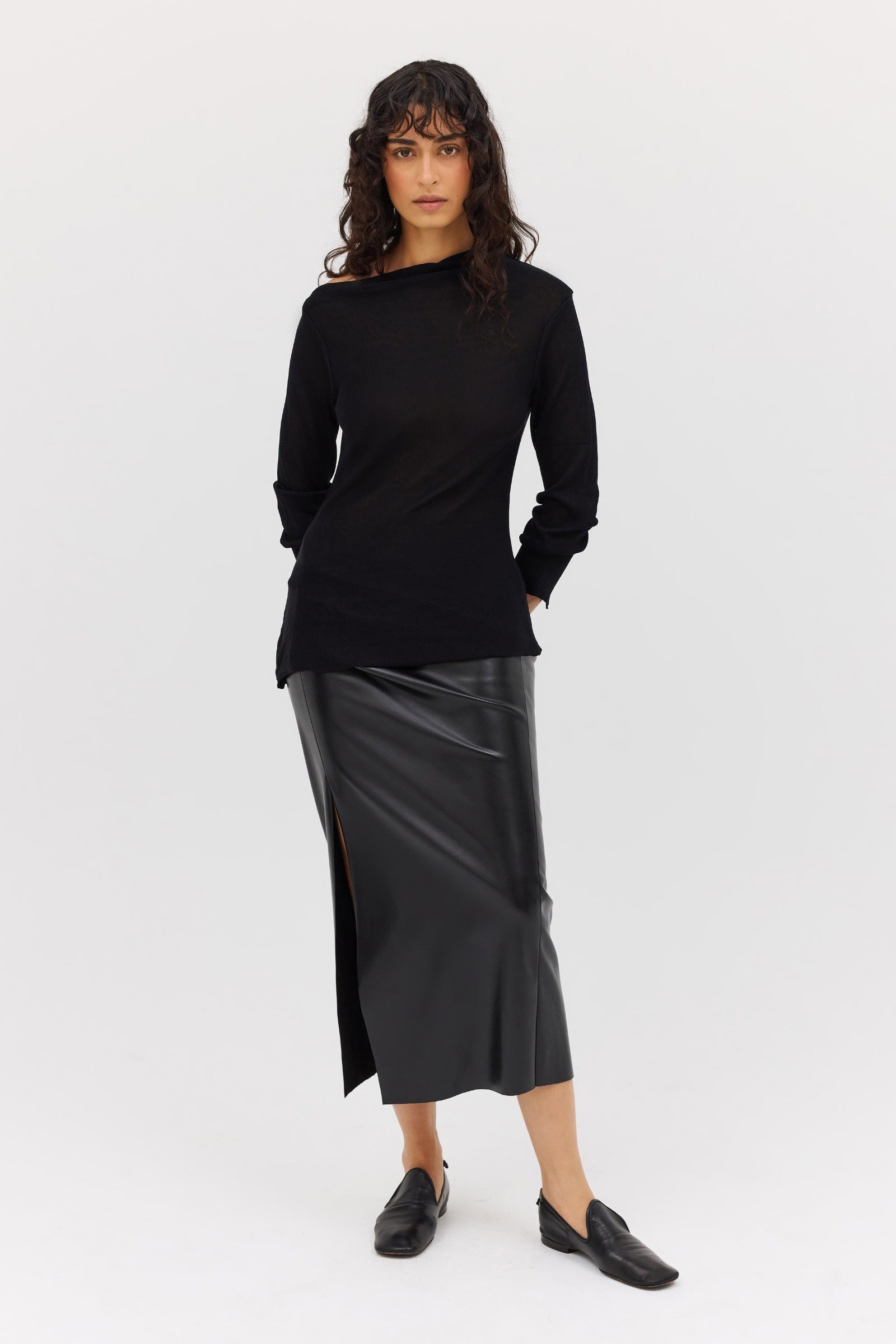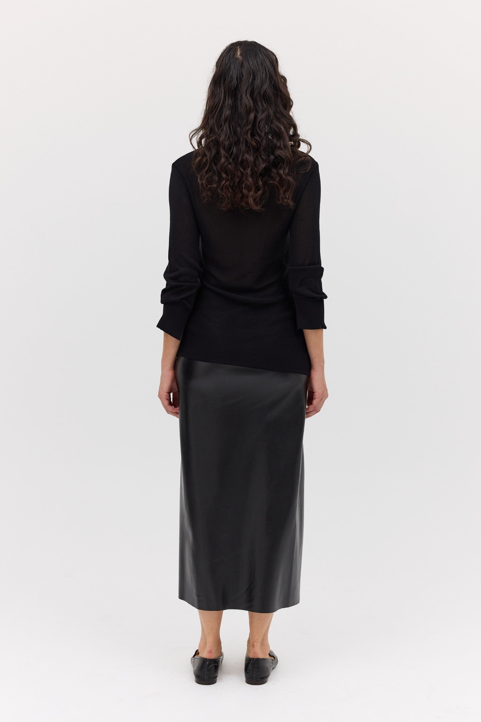 A masterclass in elevating the everyday. Introducing the Black Bernice Knit. Carefully handcrafted from a slinky, fine knit in Brazil. A relaxed-fit, long sleeve knit that will surpass the seasons and become a forever piece in your wardrobe. The Bernice Knit pairs easily with a tailored trouser, silk skirt or your favourite denim.