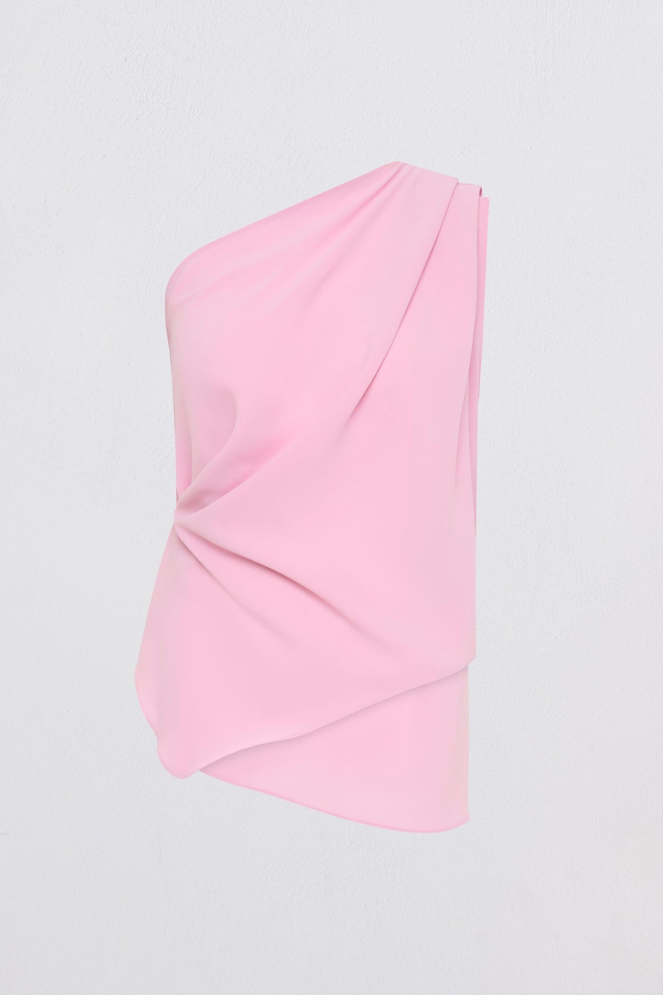 Introducing our Antonia Top. A one-piece drape, signature to Bianca Spender constructed from vibrant Rose Pink Georgette. The one-shoulder design drapes down the body creating an asymmetrical design that explores softness.
