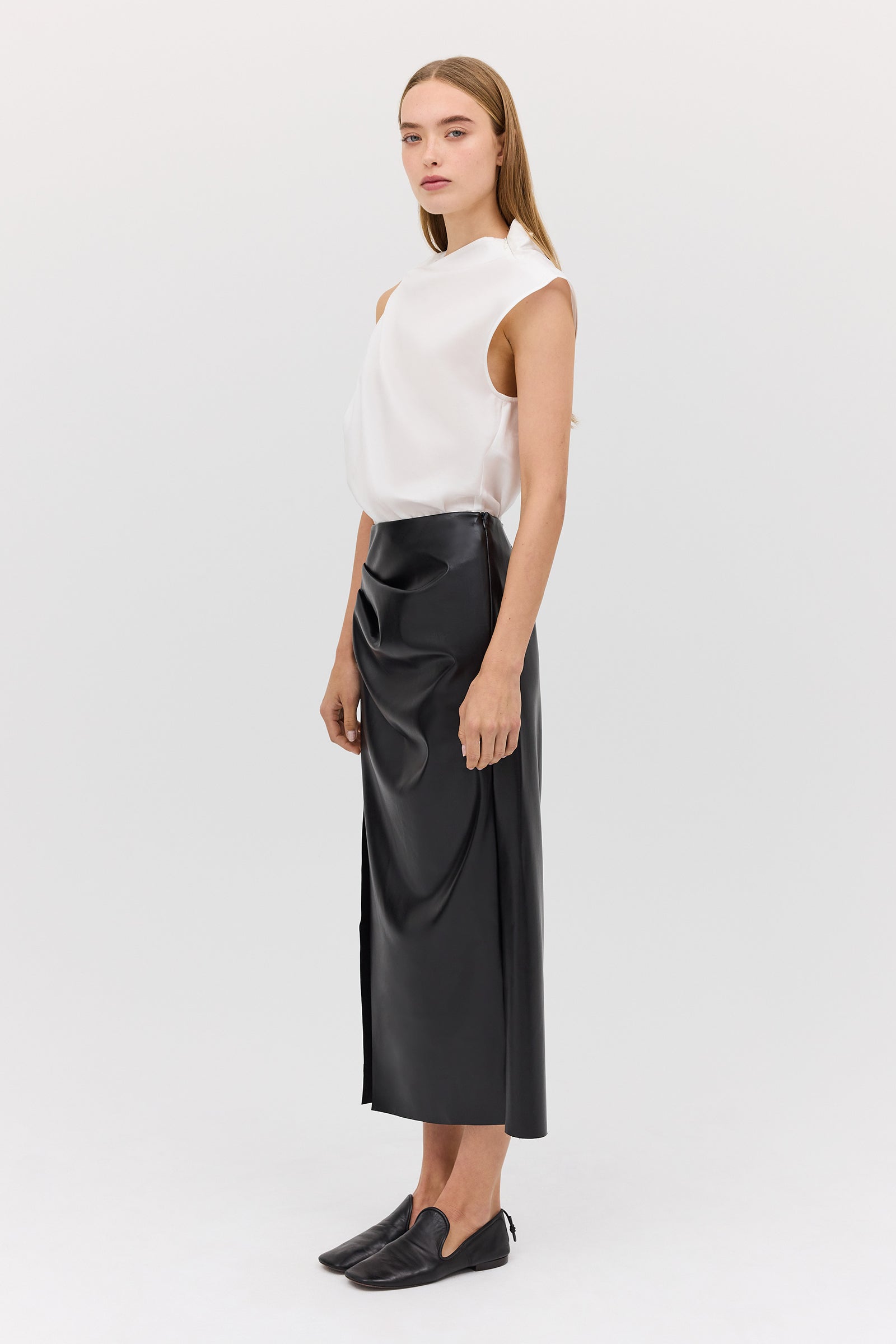 The perfect wardrobe staple, this piece pair back easily with your existing wardrobe. We love this top worn with a leatherette midi skirt and leather loafers for a chic yet unexpected workwear look.