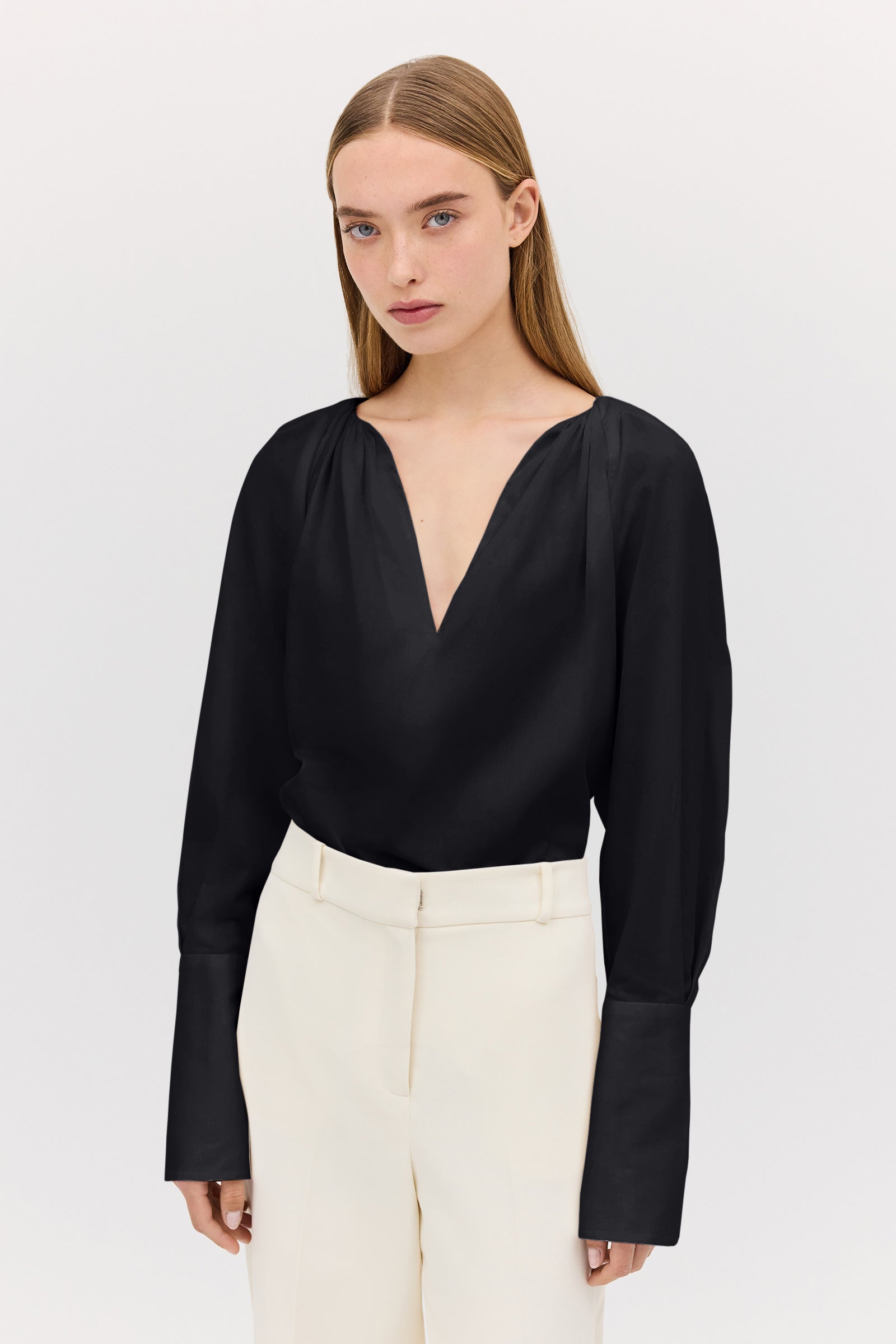 The most-loved Circa Shirt is back, re-imagined for a new season. An adaptation of our original Circa Top, Bianca Spender takes on cotton shirting. This new Circa Shirt features a deep slit in the front neck, a cuff and placket, and a slightly more voluminous billowing sleeve.