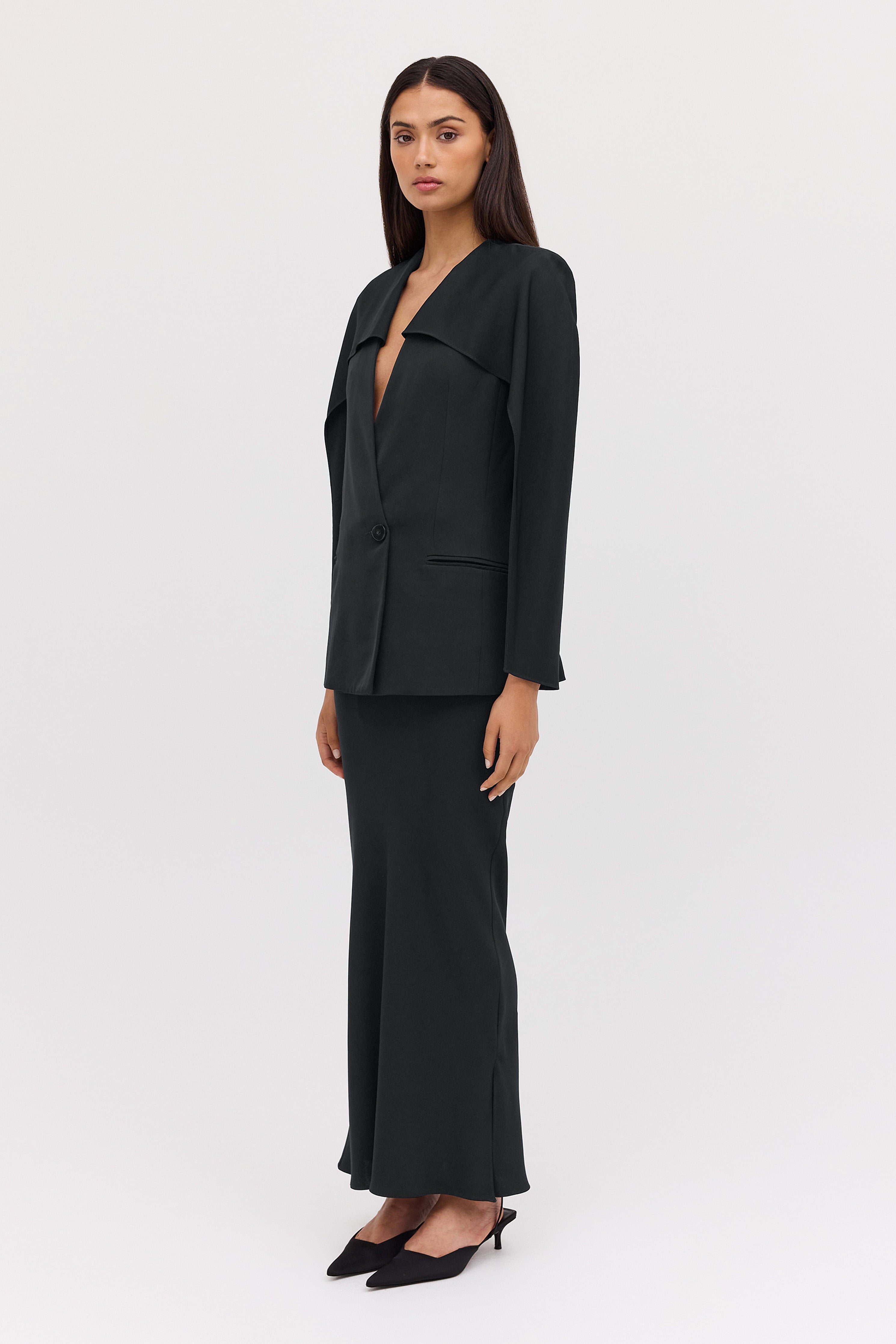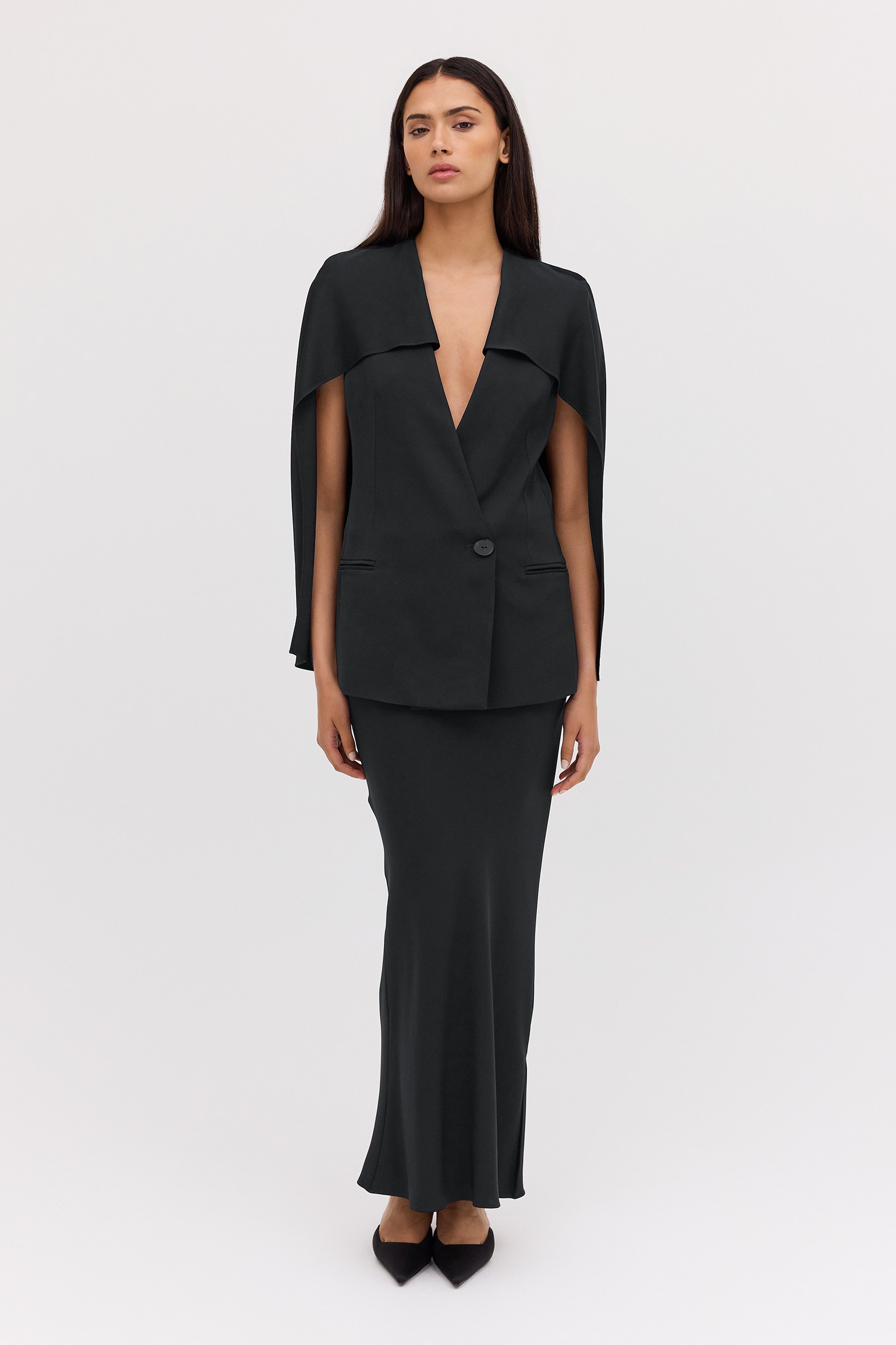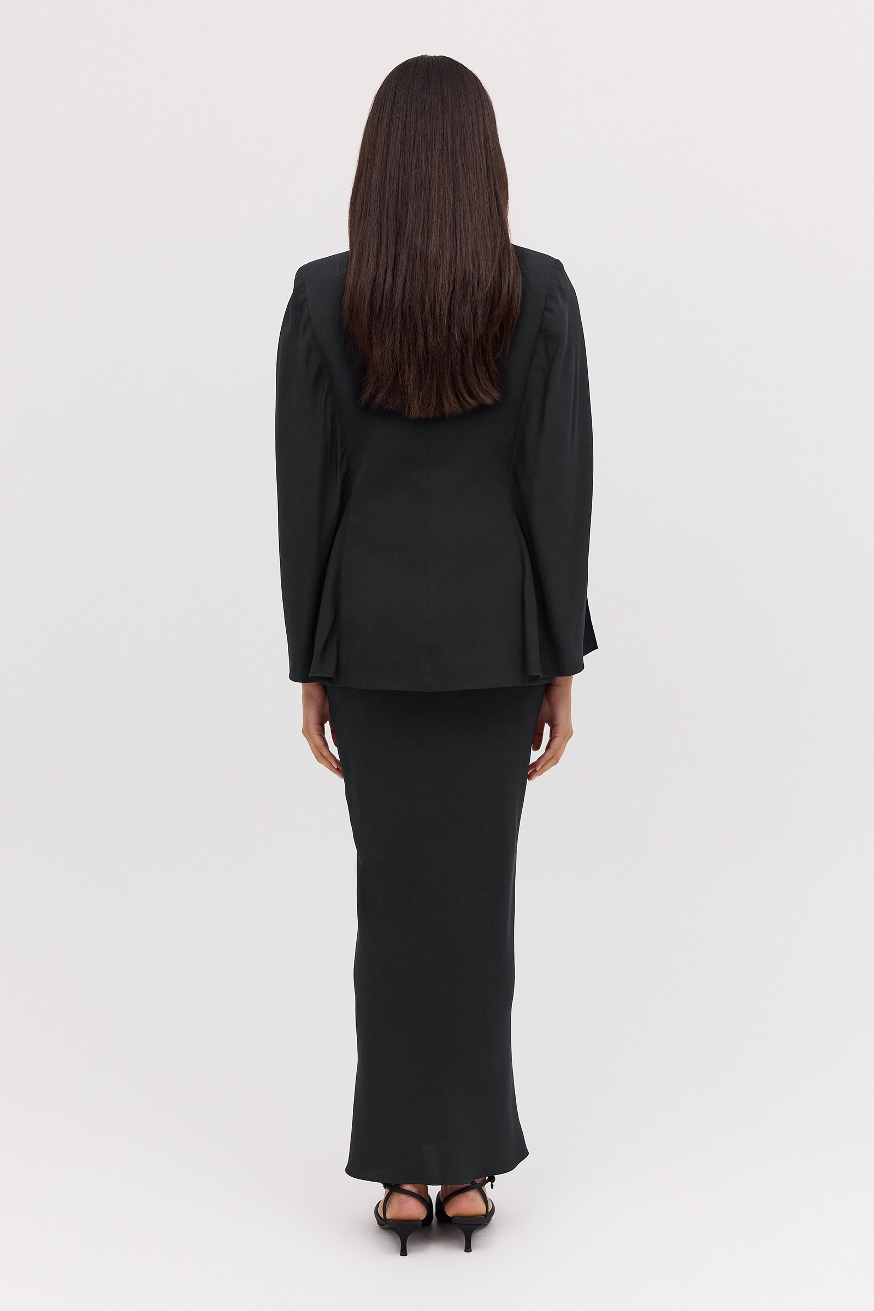 Meet the Rafael Skirt. The full-length skirt in Black Crepe is designed with refreshing symmetry accentuated through the use of eyelets and drawstrings designed for adjustability and versatility adding longevity.