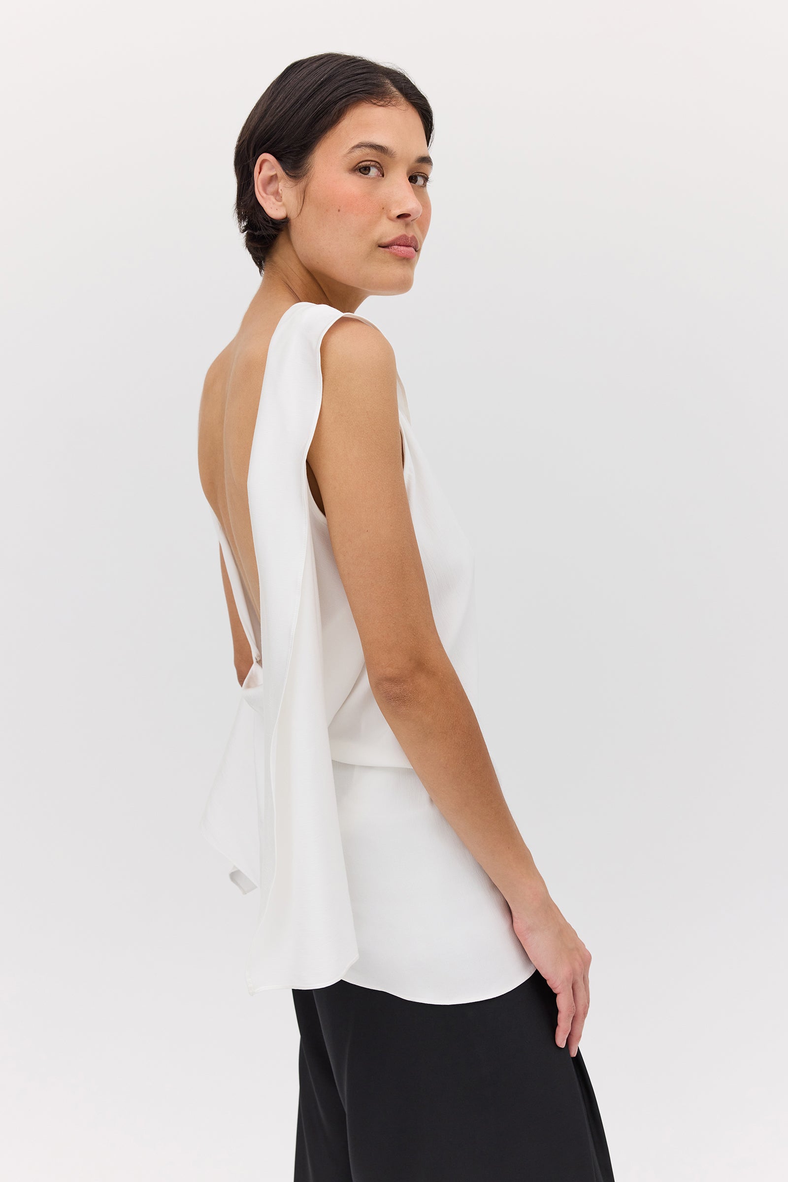 Introducing the Rhythm Top, a masterclass in effortless draping. Designed with ease in mind, the Rhythm Top is crafted from a lightweight crepe fabric, and features a relaxed fit, designed to float and move with you. The expertly draped open back evokes a sense of air.