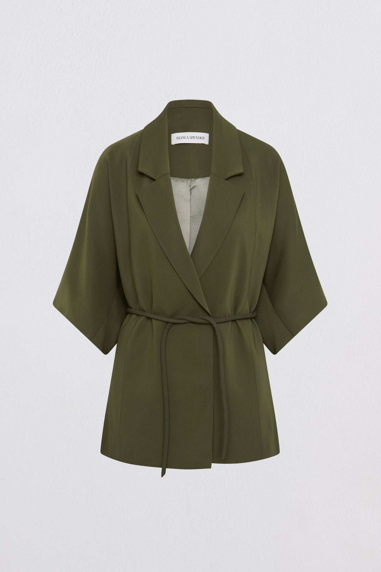 The Arbus Coat returns in a refined new-season tone - olive, the modern neutral. A signature Bianca Spender silhouette, it balances structure and ease through softly tailored lines that drape effortlessly across the body. Crafted in lightweight crepe suiting, the shape is relaxed yet refined, designed to be worn open over separates or cinched at the waist as a standalone top. Its versatility makes it a perennial wardrobe piece, offering quiet confidence and contemporary polish.
