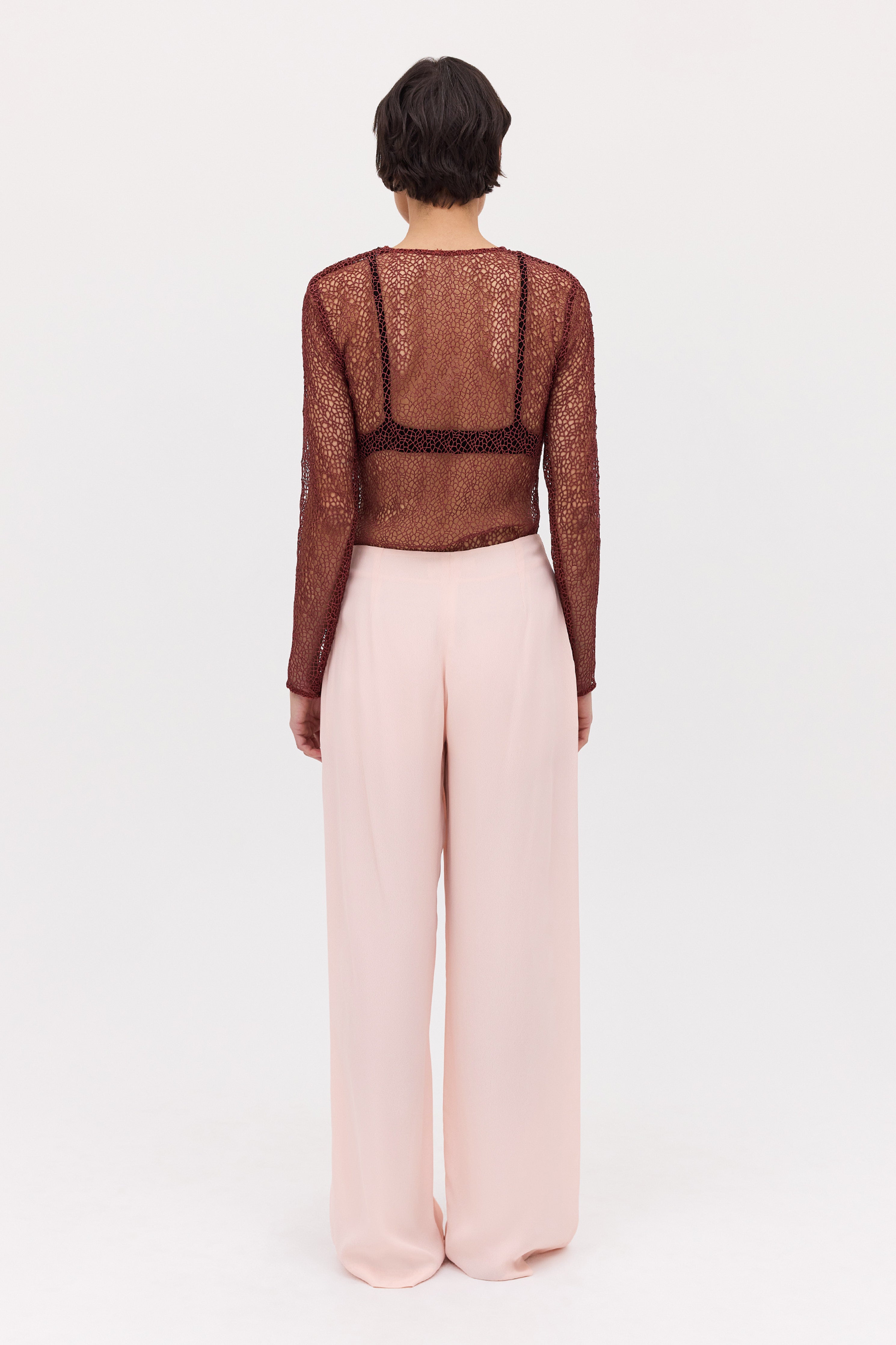 Make a statement with the matching Pink Crepe Absolute Shirt, or Pink Crepe Yang Top. For a fashion forward look, pair with the Jersey Roma Top in burgundy- the colour combination of the season.
